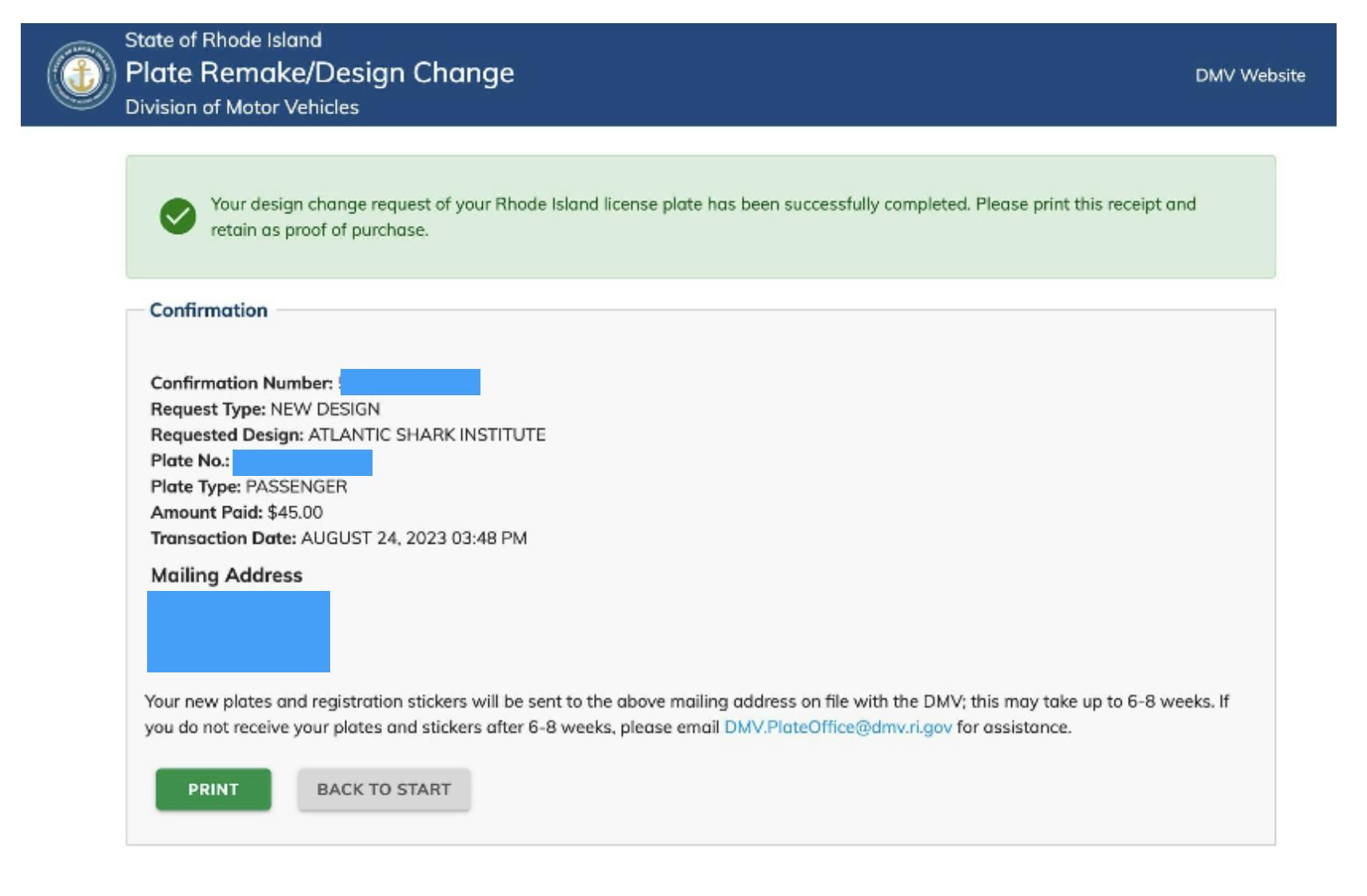“People who ordered by Sept. 3 should pick them up this weekend, if they can. If they cannot come to the DMV this weekend on their designated pickup day, they can came to the DMV in Cranston after Oct. 10 to pick up the plates. No reservation needed,” said DMV spokesperson Paul Grimaldi. “Plates ordered after Sept. 4 will be mailed to vehicle owners.”