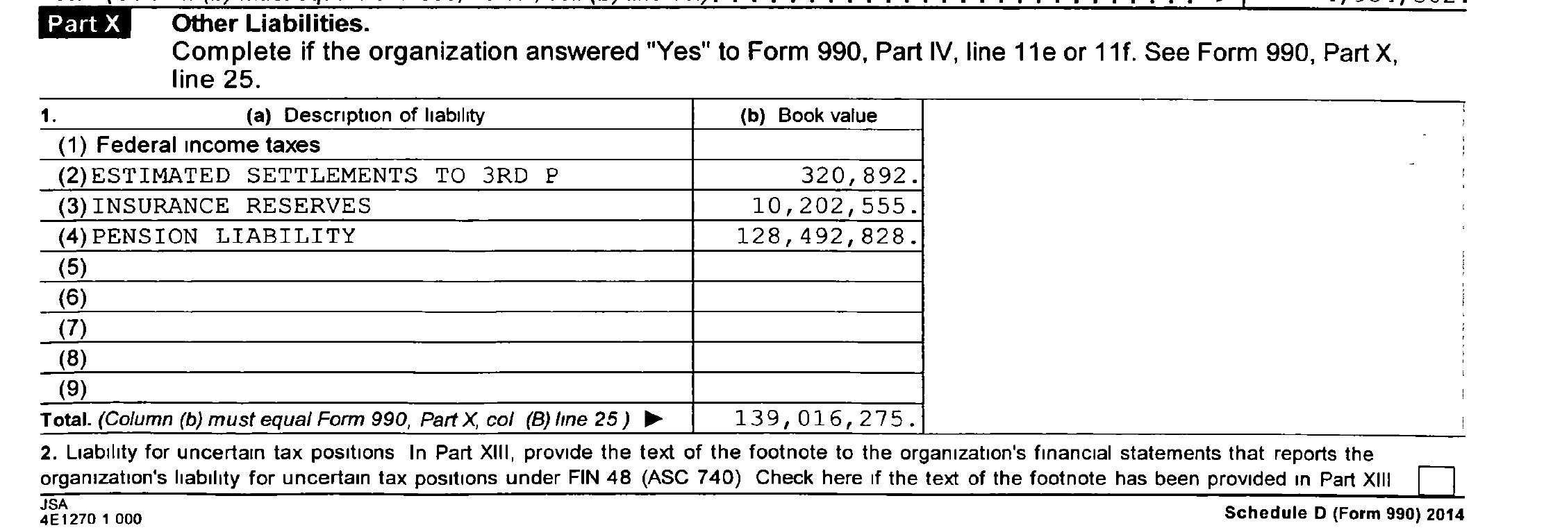 That same document reported that the “orphaned” entity had total liabilities of $139,016,275 or which $128,492,828 were the pension liability.