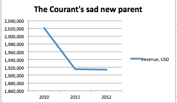 Since the company went private and then into bankruptcy, the Courant’s financial information has been lumped in with the rest of the company. But even so it’s clear the paper has been suffering, and by some measures performing even worse than others in the Tribune Company portfolio, which also includes such still-viable stalwarts as The Baltimore Sun and the Sun Sentinel in southeast Florida.