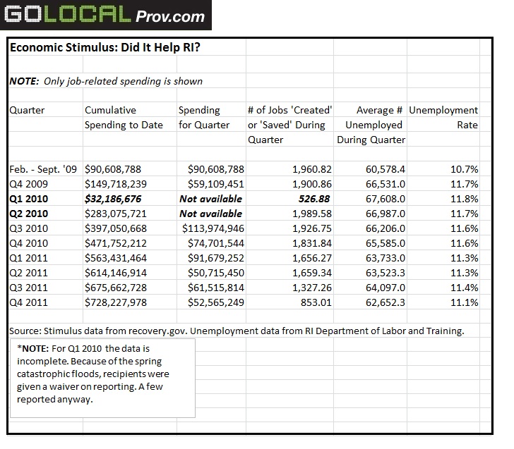 A spokeswoman for the Department of Labor and Training agreed. “We may never be able to measure how well the American Recovery and Reinvestment Act moderated the recent economic downturn,” said Laura Hart.