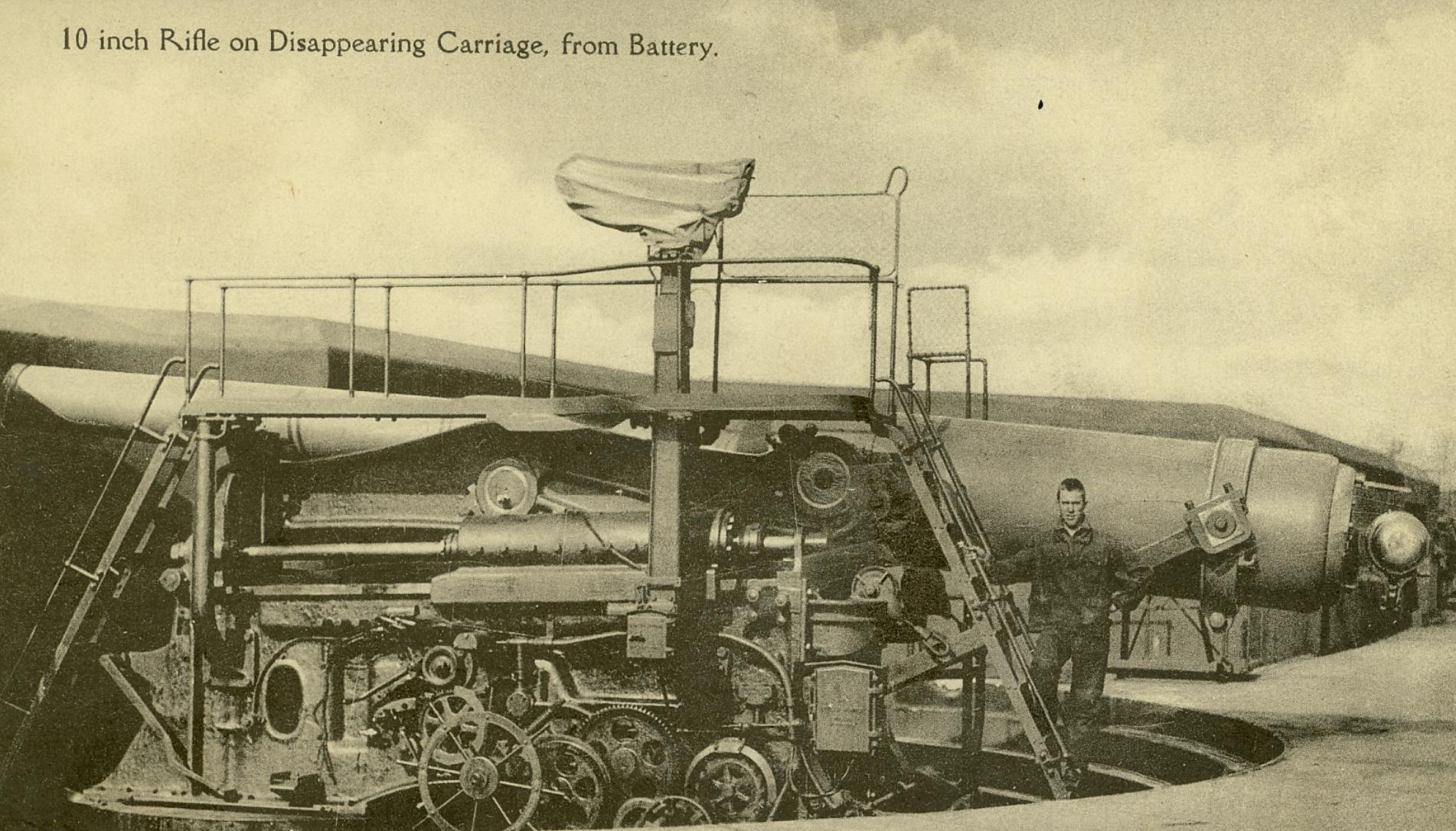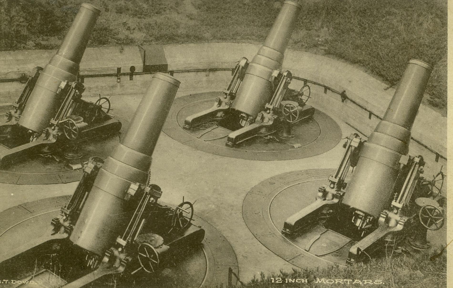 For many years it was fortified to protect the West Passage from sea invasion. It is not known whether this included the Revolutionary war era when the Conanicut Battery was activated further south on the western shore of Conanicut (Jamestown) Island. Dutch Island was later heavily fortified with massive concrete gun emplacements. These were started with large granite stone structures near the southern end of the island during the Civil War. The greatest building was during the Spanish American war and World War I. At one time there was a battery of 25-ton cannon which used a 50-pound charge of black powder to fire a 300-pound cannonball as far as 3 miles.