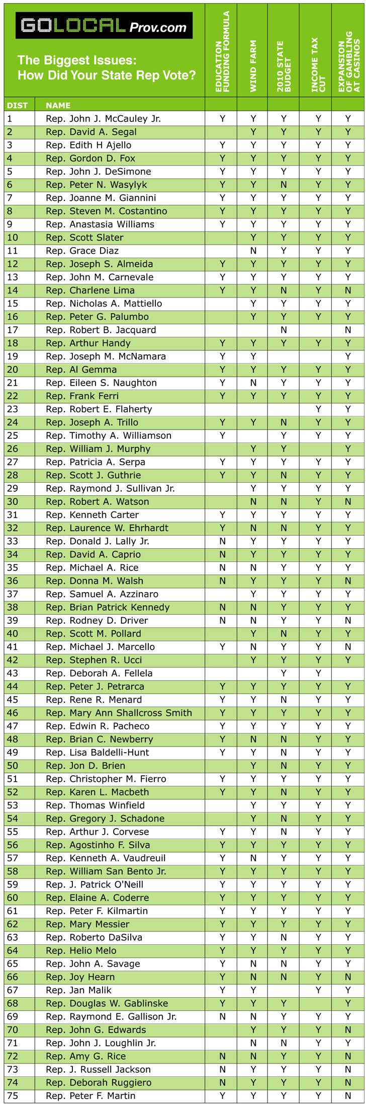 Below, find how your local state rep voted on these issues. Click here to see how your state senator voted.