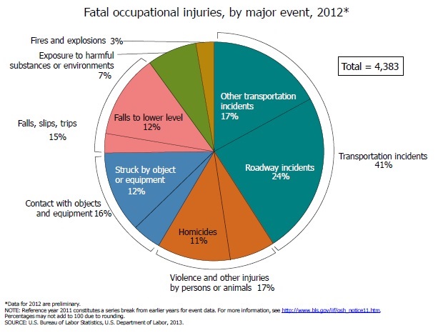 The most common injuries leading to workplace fatalities are falls and strikes by vehicles or equipment, according to James Celenza, the executive director of the Rhode Island Committee on Occupational Safety and Health, which provides workplace training throughout New England. Nationally, transportation-related accidents accounted for 40 percent of all workplace fatalities, Consedine said.