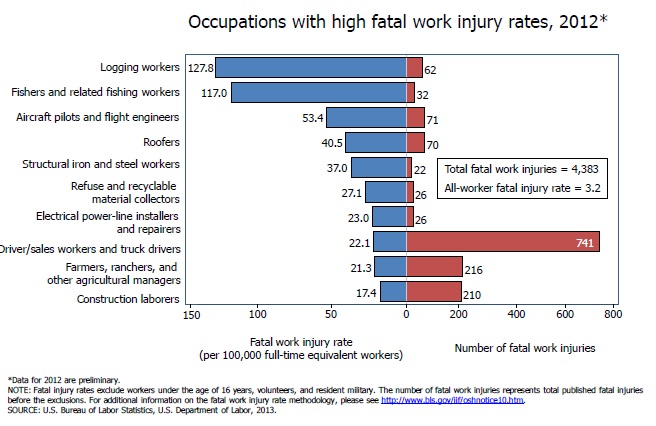 The deadliest jobs included heavy and tractor-trailer driving, commercial fishing, construction labor, law enforcement, firefighting, and logging, the data shows. While circumstances vary widely across those occupations, all tend to be high-risk jobs, according to Tim Consedine, a regional economist at the New England office for the Bureau of Labor Statistics. (See below slides for the top 25.)
