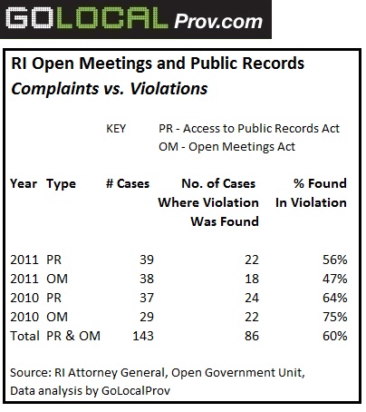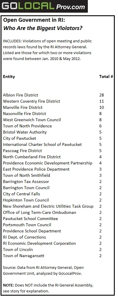 But some may be less surprising than others. The Town of North Providence, which had six violations over the two and a half year period, also has been the subject of a number of well-known public corruption cases.