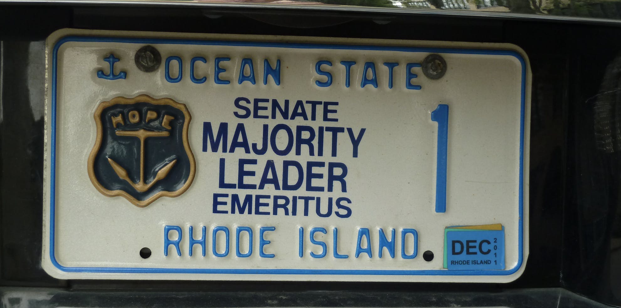 License Plates are to Rhode Islanders what football is to Texans or what basketball is to Hoosiers. Watching, obtaining, and showing off the perquisites of auto tag privilege is a sport in the Ocean State. Where else do divorcing couples engage in court fights over an inherited low number plate? What other state has a license plate for a former Senate Majority Leader?