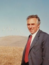 During the 1970s energy crisis, Stanley became interested in wind energy and played a key role in the development of the modern wind power industry. In 1974, Stanley and partner, Russell Wolfe, started U.S. Windpower, which became the first major U.S. wind turbine manufacturer, and the largest wind energy firm in the world. U.S. Windpower’s innovation was to build groups of intermediate-sized windmills and link them into a single power plant tied to the grid. U.S. Windpower built the world’s first ‘wind farm,’ a term Stanley coined, in 1978.