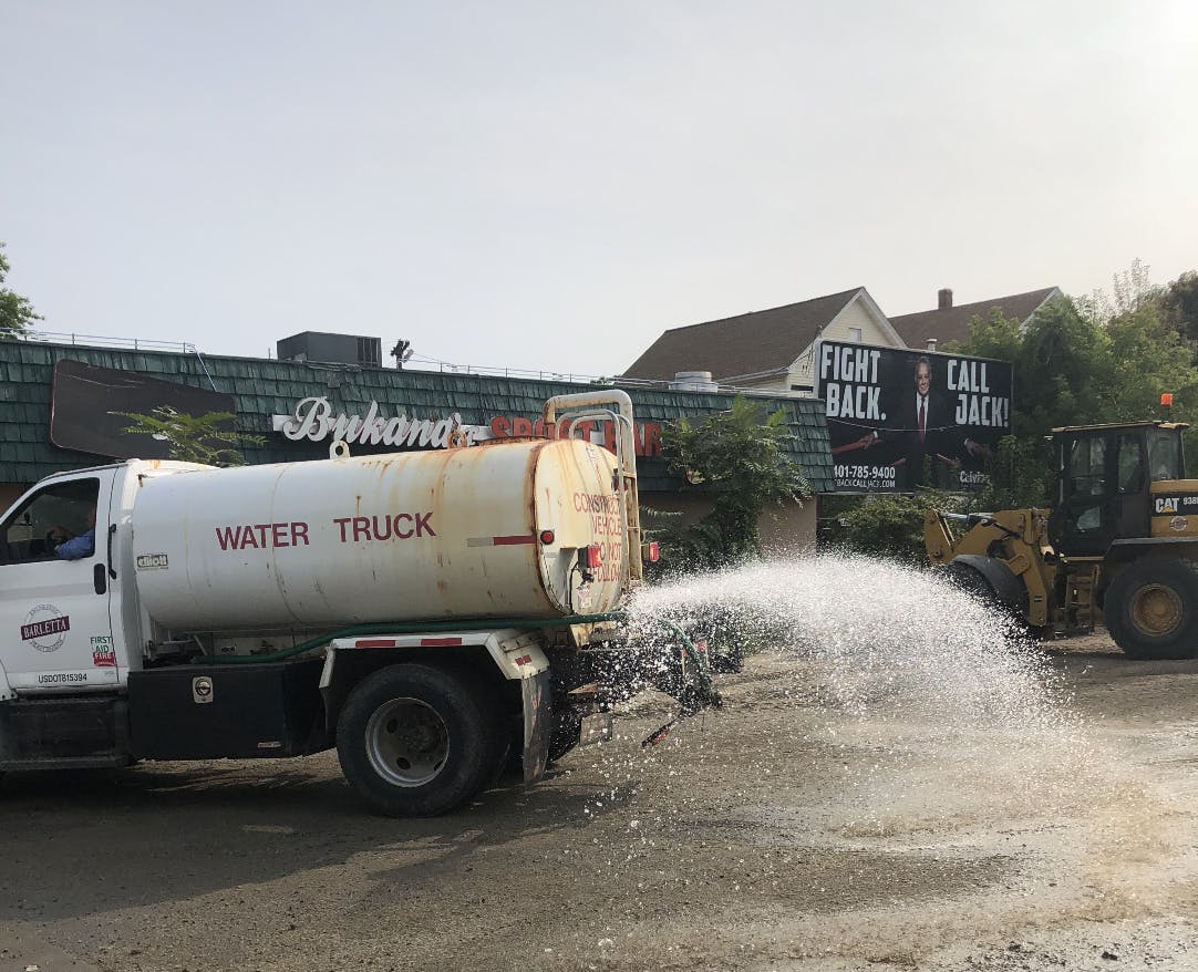 How far the contaminated soil can be blown to other sections of the neighborhood is unknown — the concern must be growing because GoLocal, on one site visit to the contaminated area, saw a rusted Barletta Engineering water truck spraying water on some of the material on site.