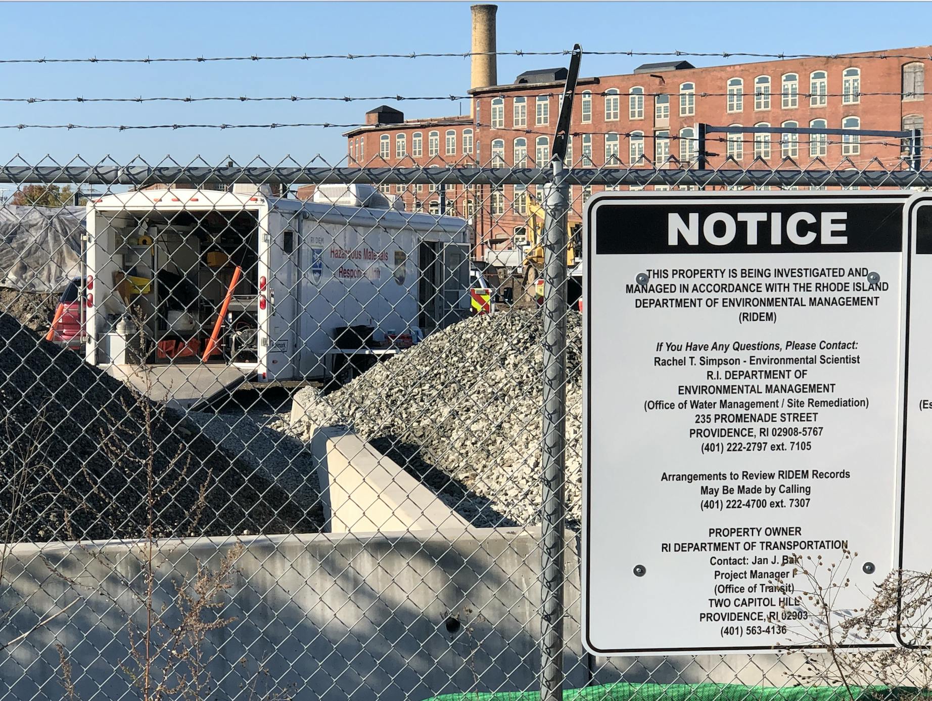 On Tuesday morning, a swarm of Rhode Island Department of Environmental Management hazardous waste investigators and enforcement officers were deployed to the Rhode Island Department of Transportation’s site where hazardous waste has been discovered.
