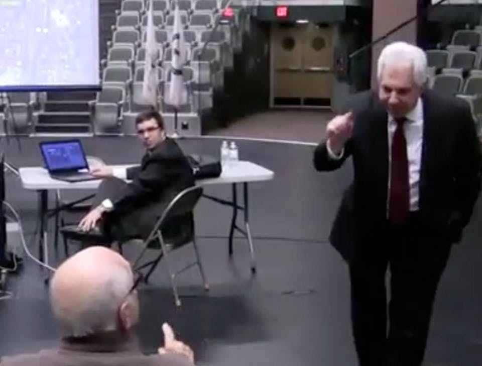 At a public hearing on April 11, 2016, at the beginning of the planning of the 6/10 Connector project, Rhode Island Department of Transportation (RIDOT) Director Peter Alviti screamed at an elderly man.