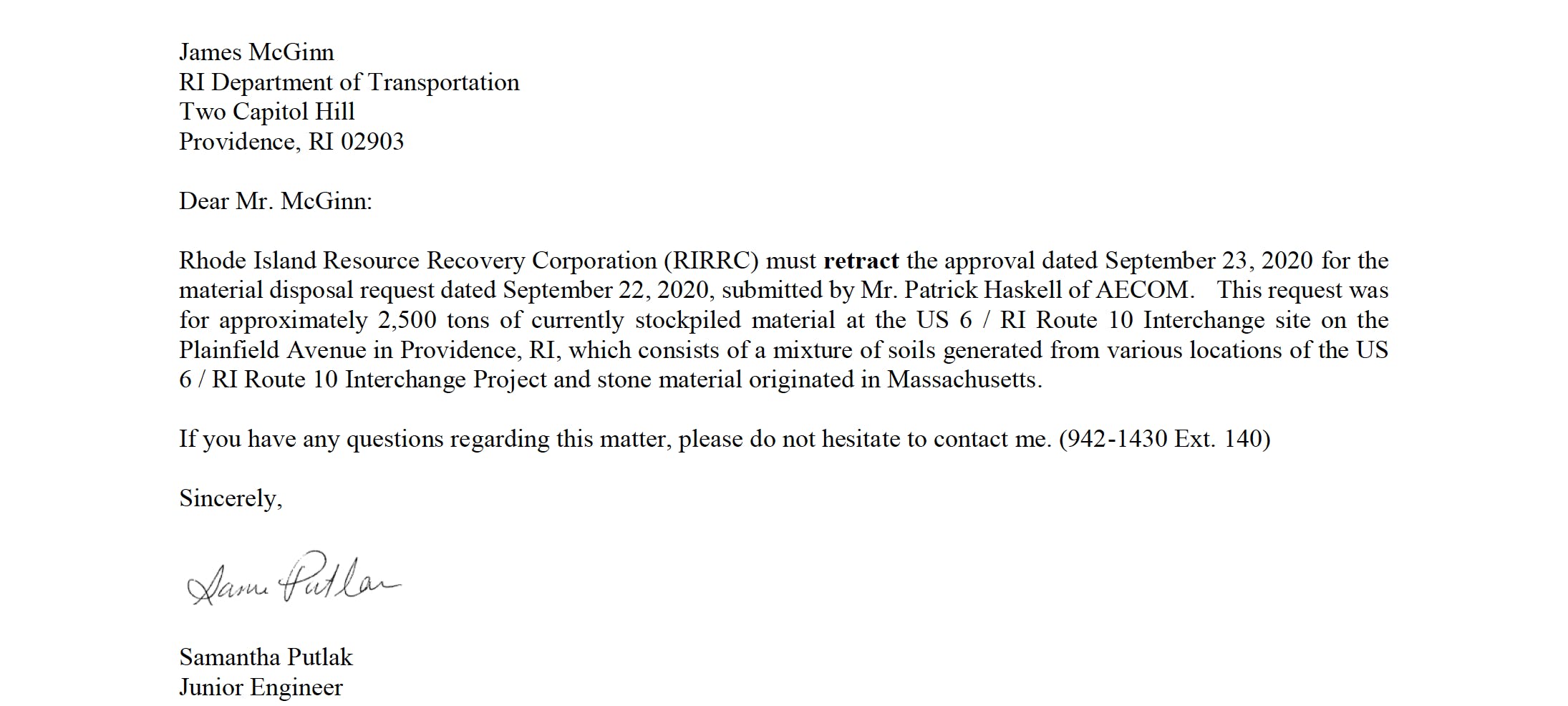 Communications show that RIDOT knew that material had been improperly moved to the Providence neighborhood, according to documents secured by GoLocal, and RIDOT had in fact instructed Barletta to remove the soil material more than five weeks earlier.
