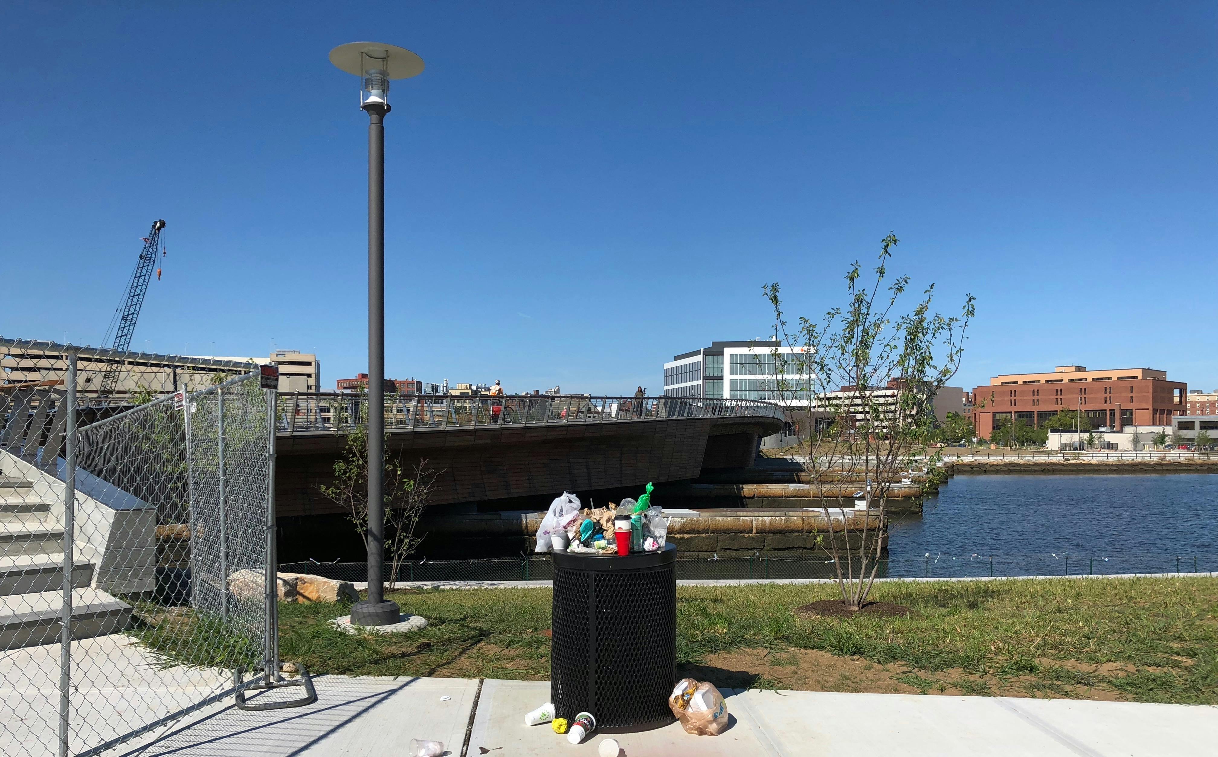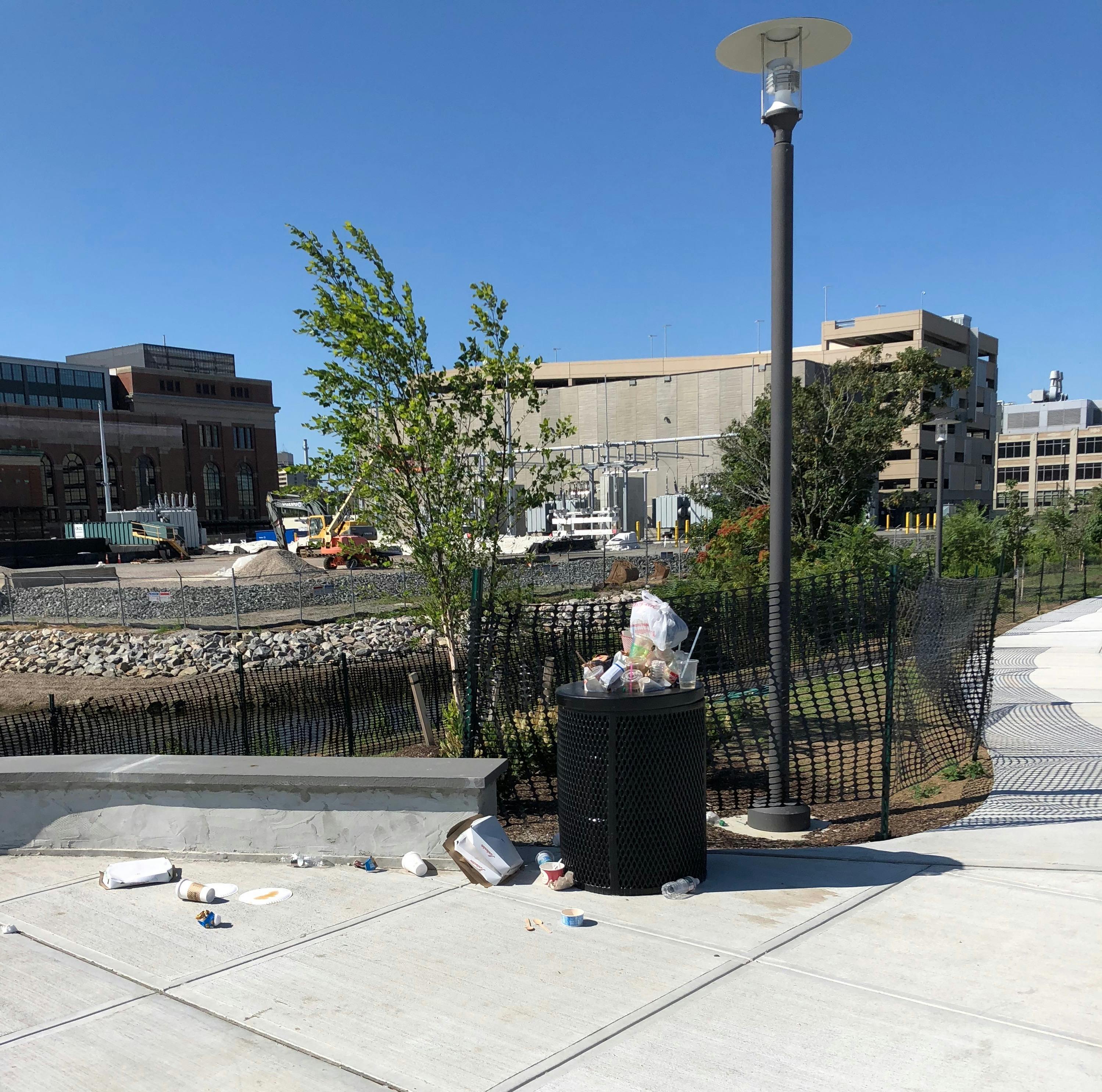 Who is responsible for trash removal?Before noon on Monday -- a state holiday which saw dozens of people flocking to the new attraction -- trash overflowed at the garbage cans at the park.