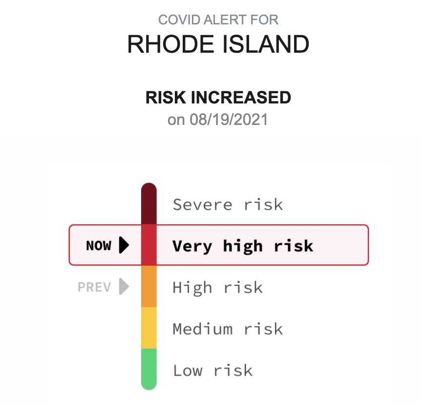 Now, Rhode Island's risk level is the highest in the northeast and is ranked by Covid ActNow as "very high."
