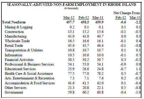 The state’s unemployment rate increased to 11.1 percent in March—up one-tenth of a point from February— and only 496,100 residents were working, the report says. The national unemployment rate was 8.2 percent for March.