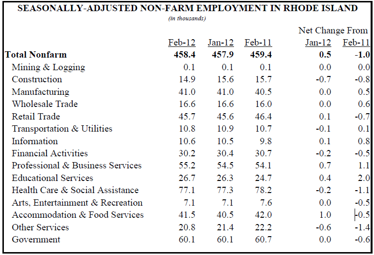 According to the report, 1,500 fewer Rhode Islanders were employed last month than in January and the number of unemployed residents (classified as available for and actively seeking employment) increased to 61,700 during the month.