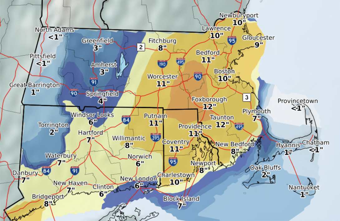 According to NWS, Rhode Island could see snow totals from seven inches on Block Island, to a foot in the northern parts of the state.