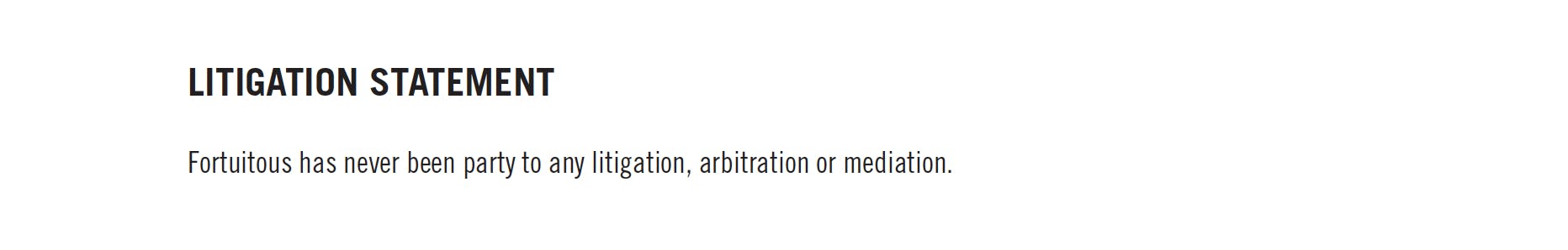 In that submission to state officials, Johnson and Fortuitous represented in the litigation statement, “Fortuitous has never been party to any litigation, arbitration or mediation.”