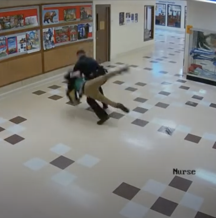 "The incident arose when Rooney confronted Michael about whether he was allowed to be walking in the school hallway at the time, to which Michael said he had permission. After a brief argument about it, Michael gave Rooney the finger and began to walk away, but the officer immediately grabbed Michael and violently threw him on the floor."