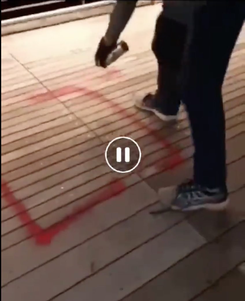 GET THE LATEST BREAKING NEWS HERE -- SIGN UP FOR GOLOCAL FREE DAILY EBLASTA woman can be heard on the video saying, ‘I like that,’ as a man uses red spray paint on the bridge, adding “a white man’s putting this s—t out, just know that.”