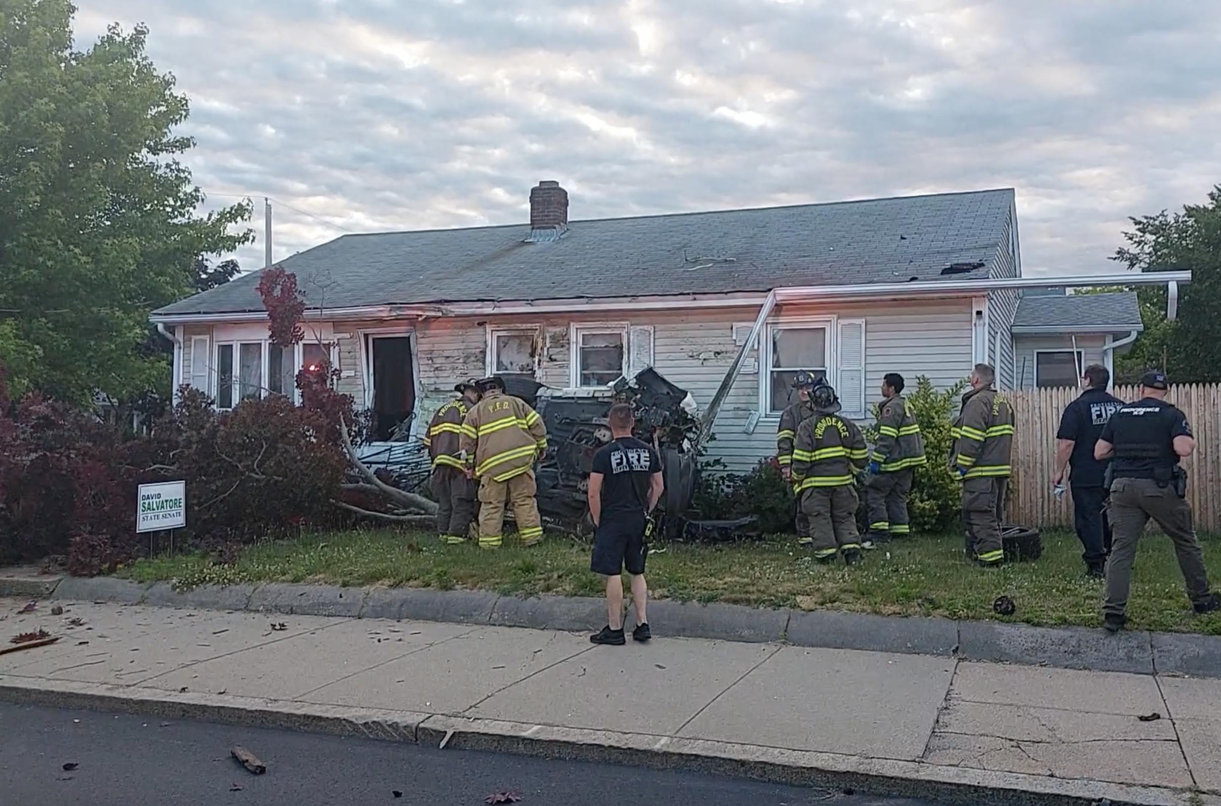 According to video taken by Reynaldo Almonte of Latino Public Radio, the car appeared to have hit a utility pole before crashing into a house.