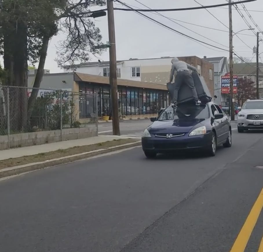 VIDEO: Man Caught in Providence Holding Couch -- On Top of Moving Car