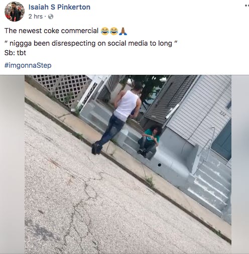 Isaiah S Pinkerton posted the video to his page and wrote “The newest coke commercial. Nigga been disrespecting on social media to long.”