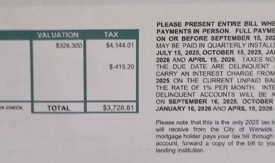 Warwick Homeowner “Shocked” to See Property Tax Bill Go Up 58%