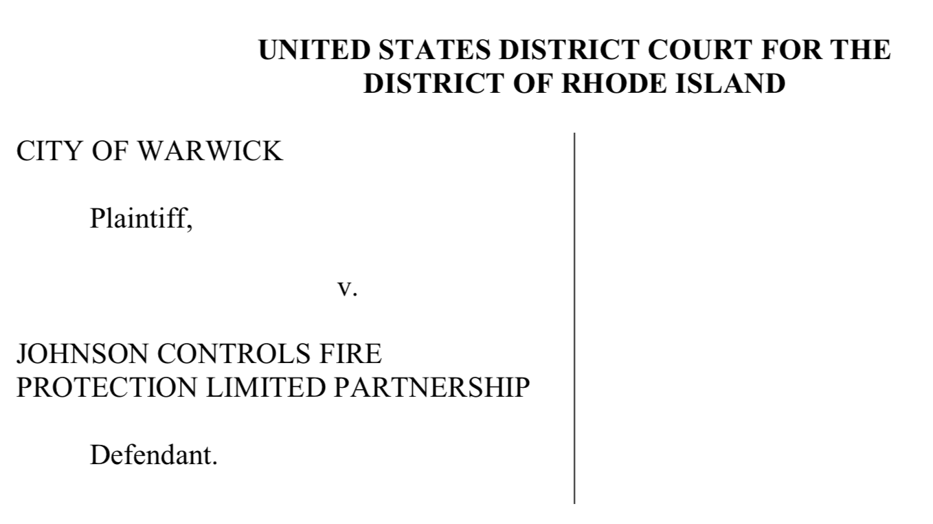 The case filed in the U.S. District Court for the District of Rhode Island on August 25 alleges Johnson Controls Fire Protection (JCFP) Limited Partnership - which is headquartered in Wisconsin, with offices nationally including in Rhode Island — is responsible for the financial damages in part due to its responsibility to inspect and maintain sprinkler systems in the city.