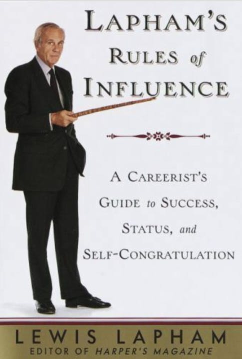 For a sometimes hilarious look at how to climb the greasy pole to wealth and power, especially as practiced in the Second American Gilded Age, which started back in the ‘80s, I recommend Lapham’s Rules of Influence: A Careerist’s Guide to Success, Status, and Self-Congratulation. Mr. Lapham is a former and long-time editor of Harper’s Magazine and the founding editor of Lapham’s Quarterly, an historical journal.