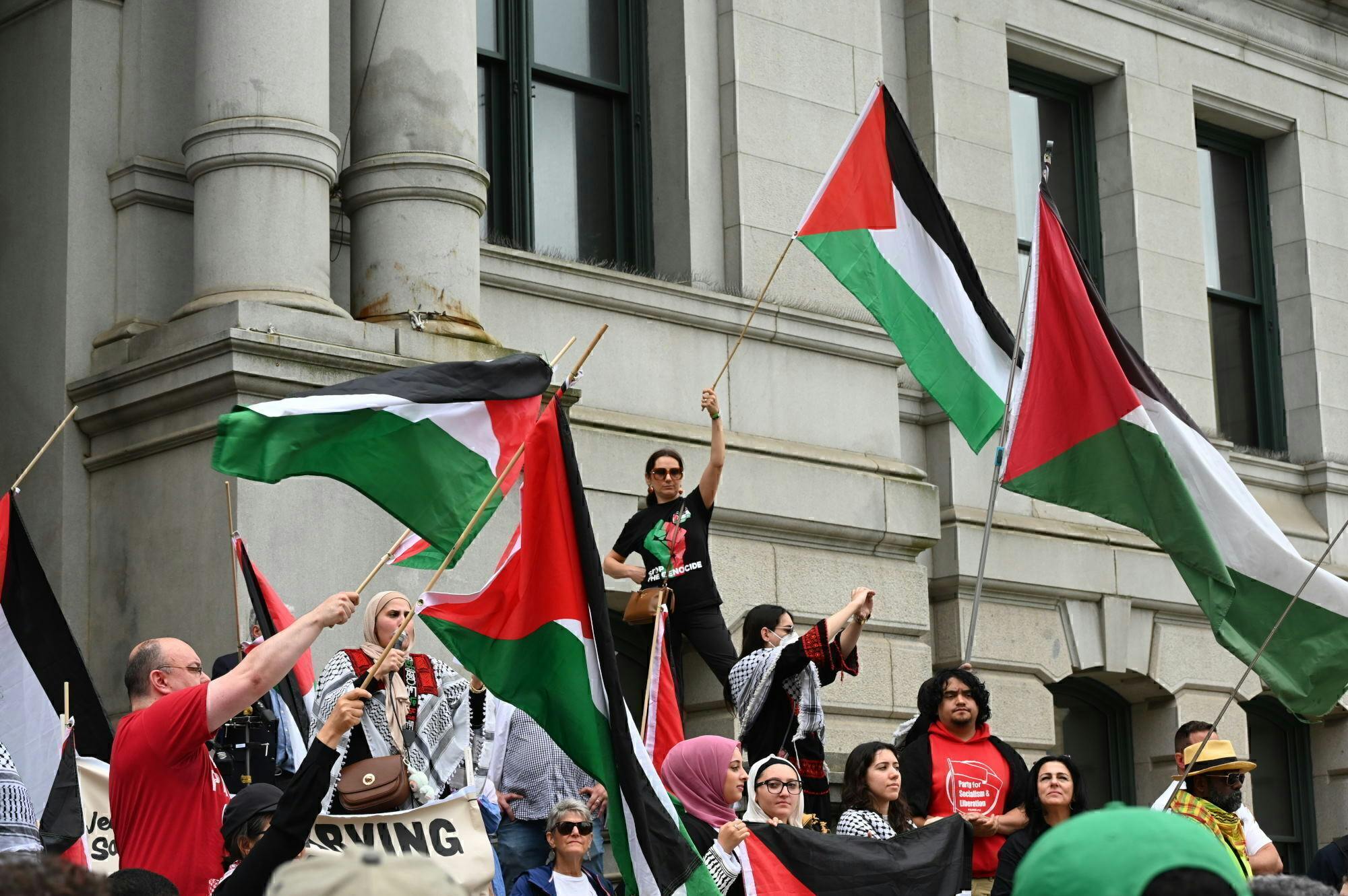 The Palestinian flag was particularly inappropriate given that the U.S. doesn’t recognize the existence of a country called Palestine. Flying the flag was a political statement, apparently led by City Council President Rachel Miller. Issue flags are also inappropriate.