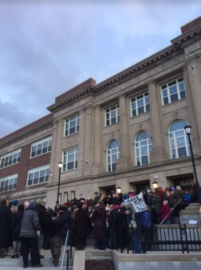 A large crowd was turned away from the auditorium at Nathan Bishop Sunday evening; Whitehouse came out to speak following his remarks inside.Whitehouse was pushed repeatedly on his vote for Pompeo, which had drawn the rebuke from Rhode Island progressives.