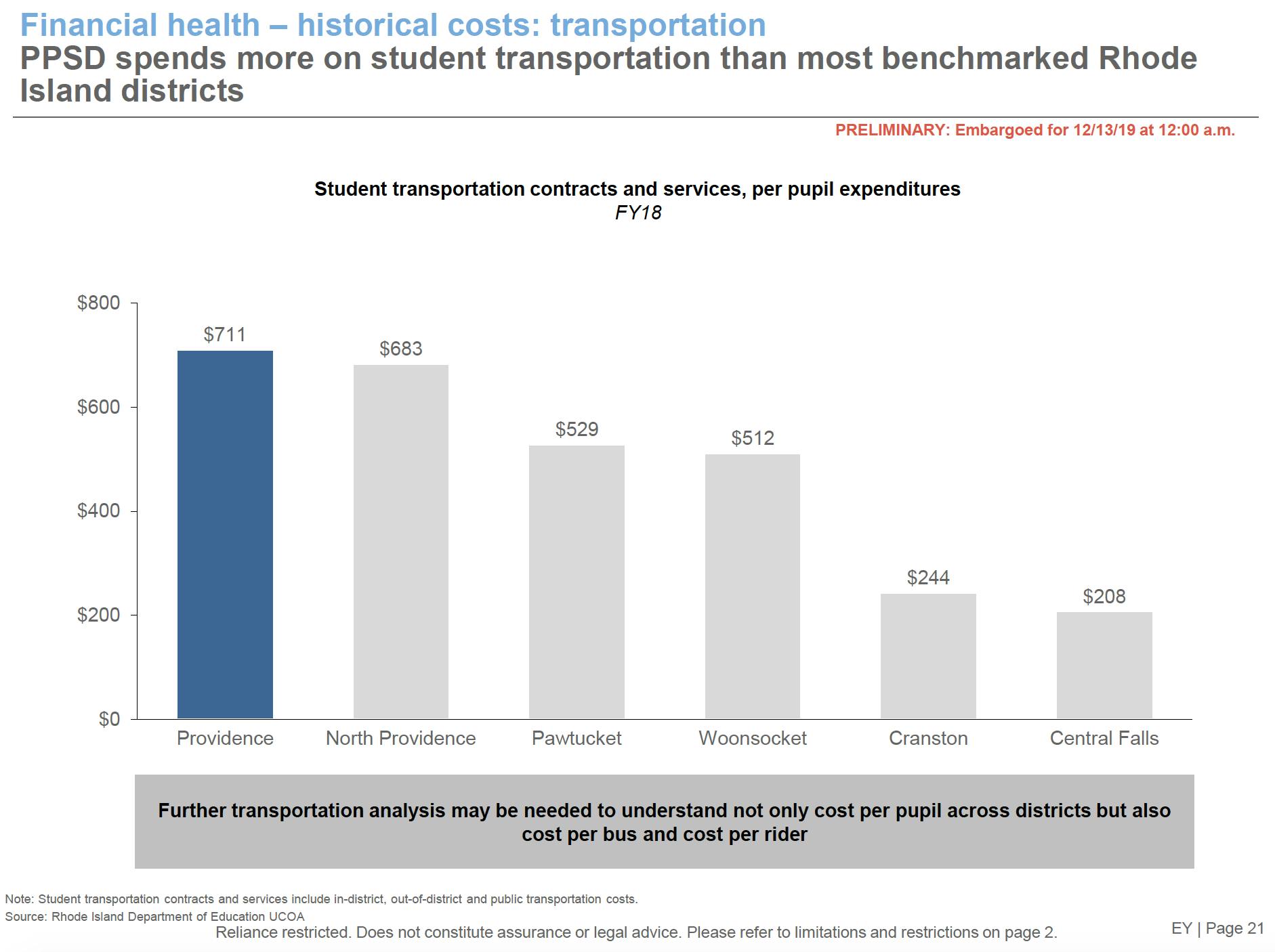 In Cranston, the average per-pupil cost for bus transportation is $244, but in Providence, the cost is $711.