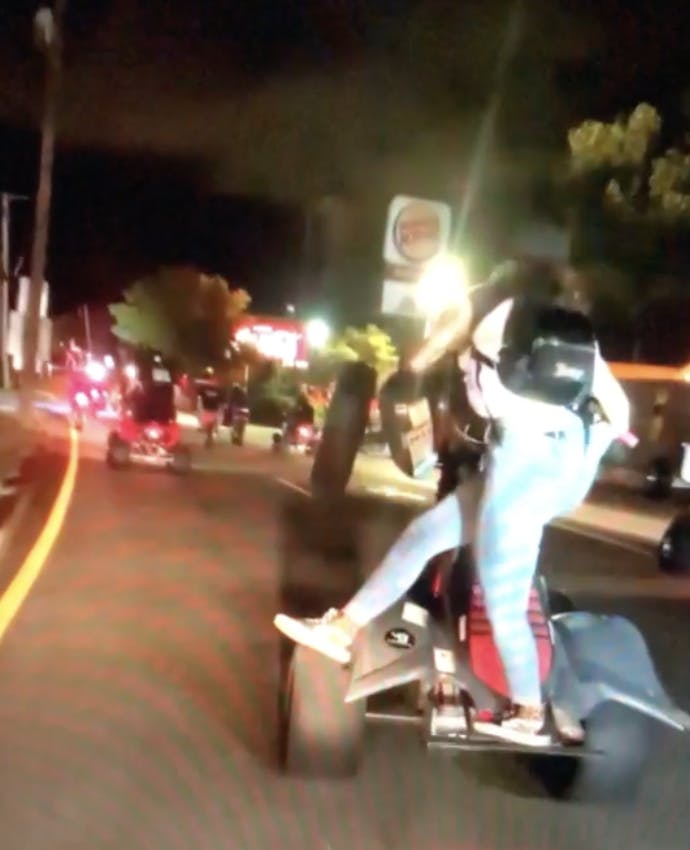 This video above posted to her social media features her and a gang of other riders doing tricks one evening.