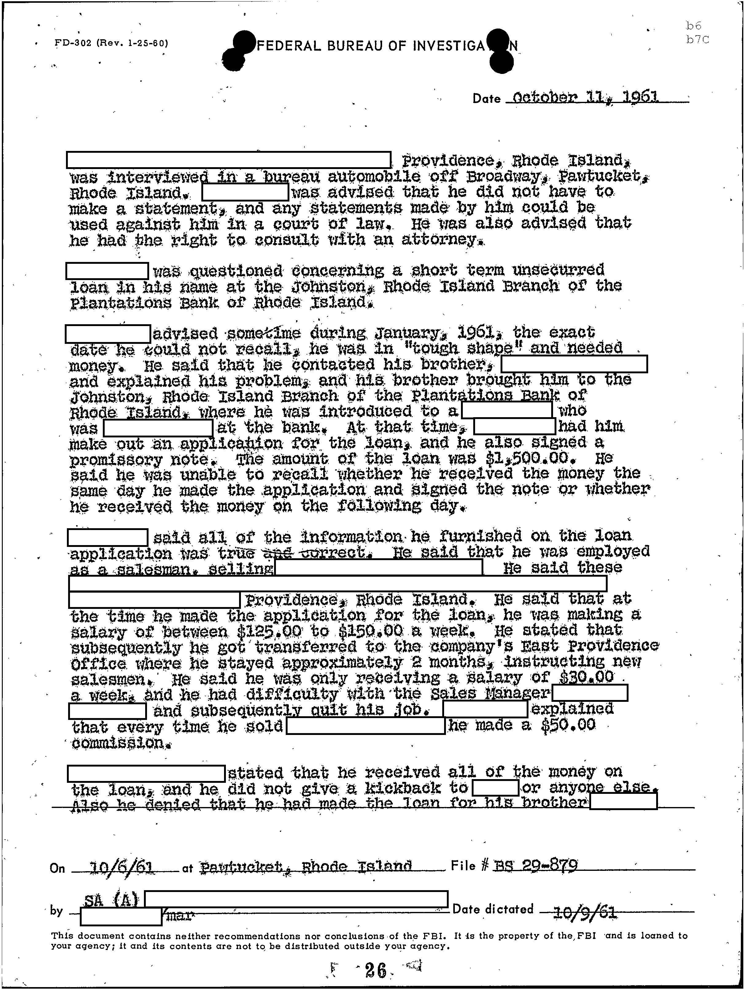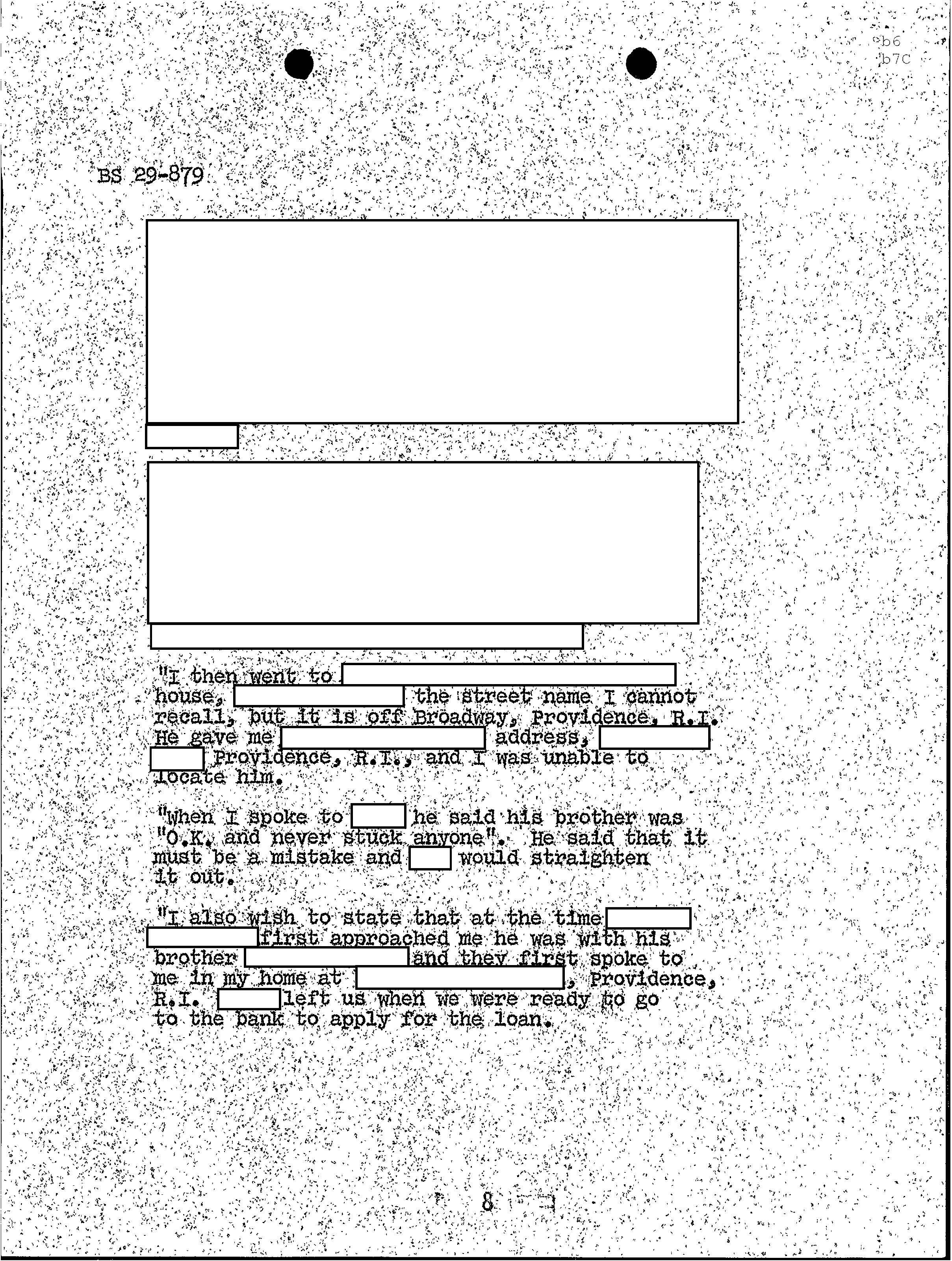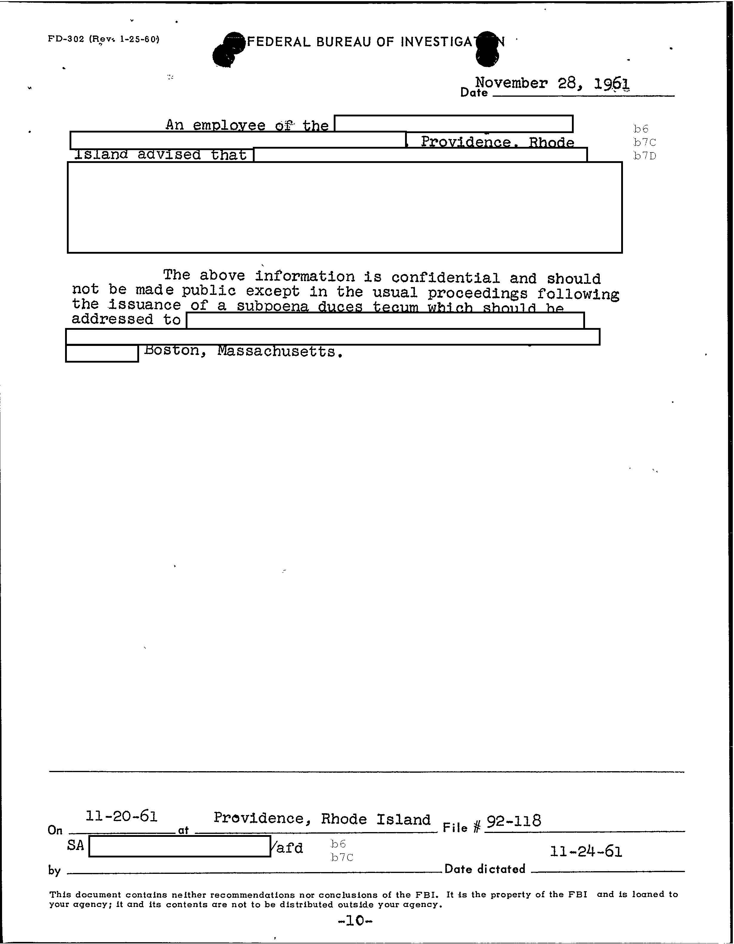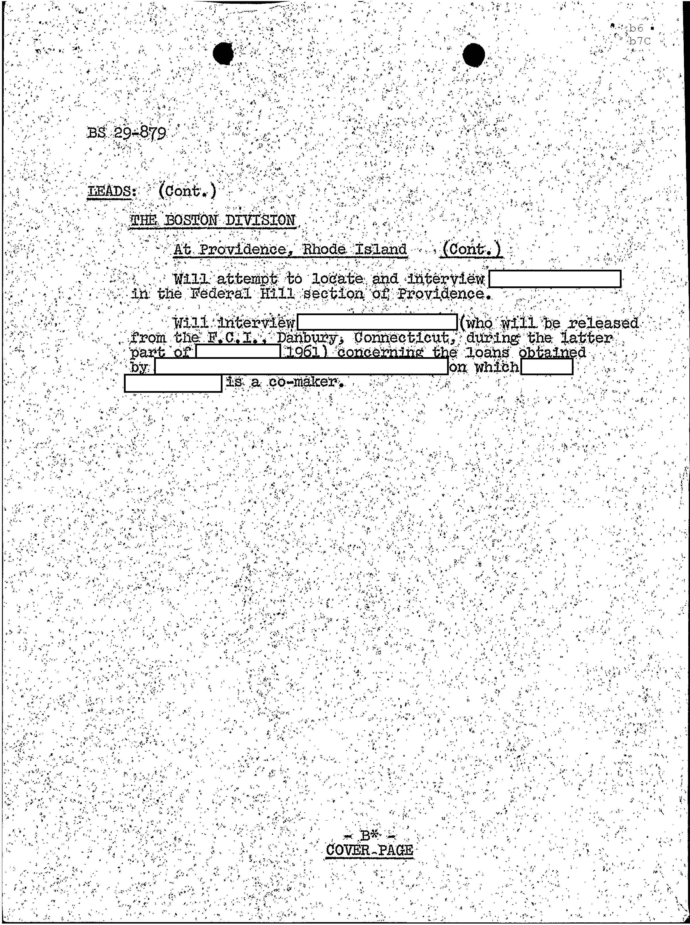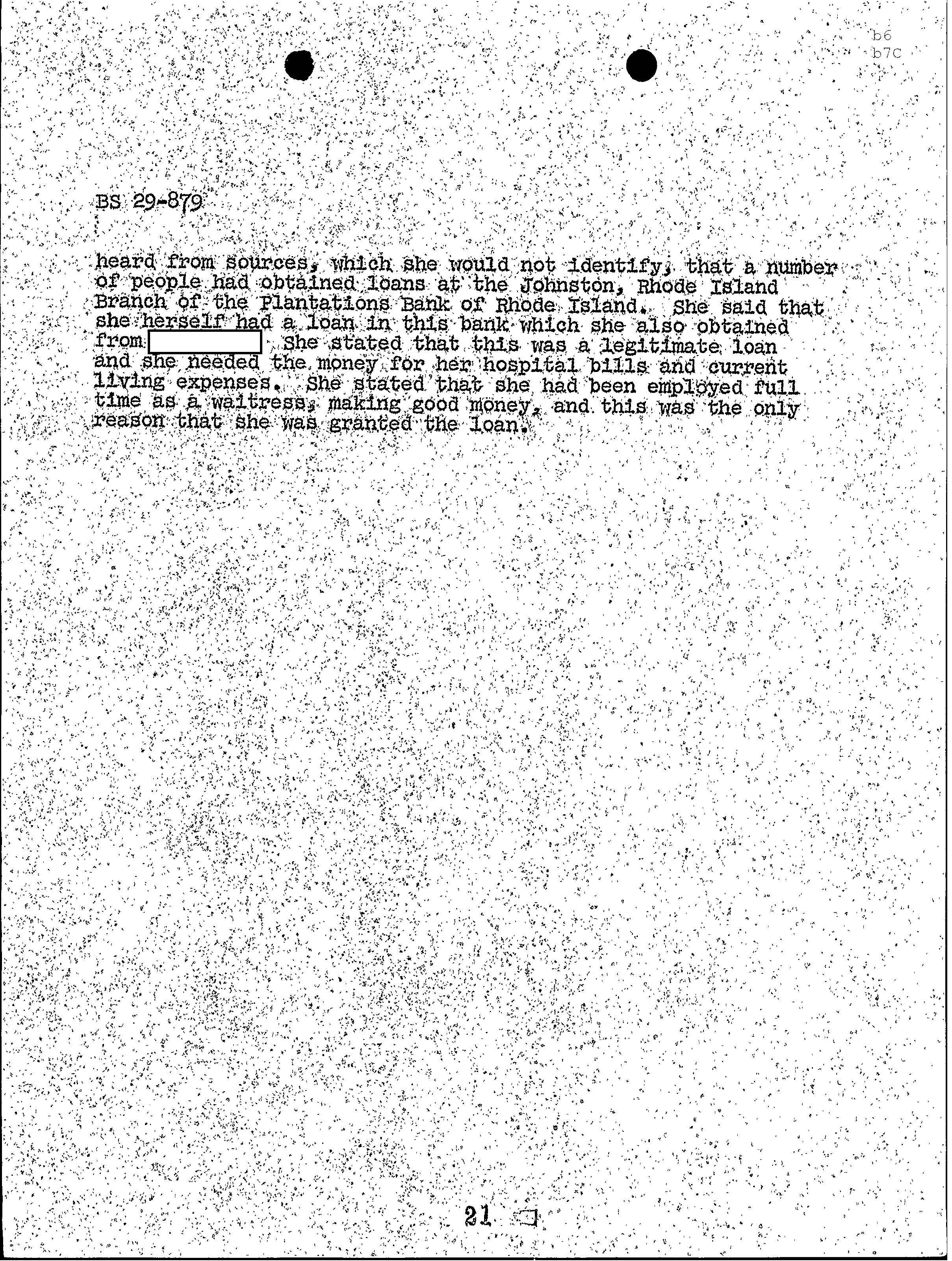 An FBI Teletype outlines that Patriarca’s girlfriend is separated from her husband and she is living in Johnston, RI.