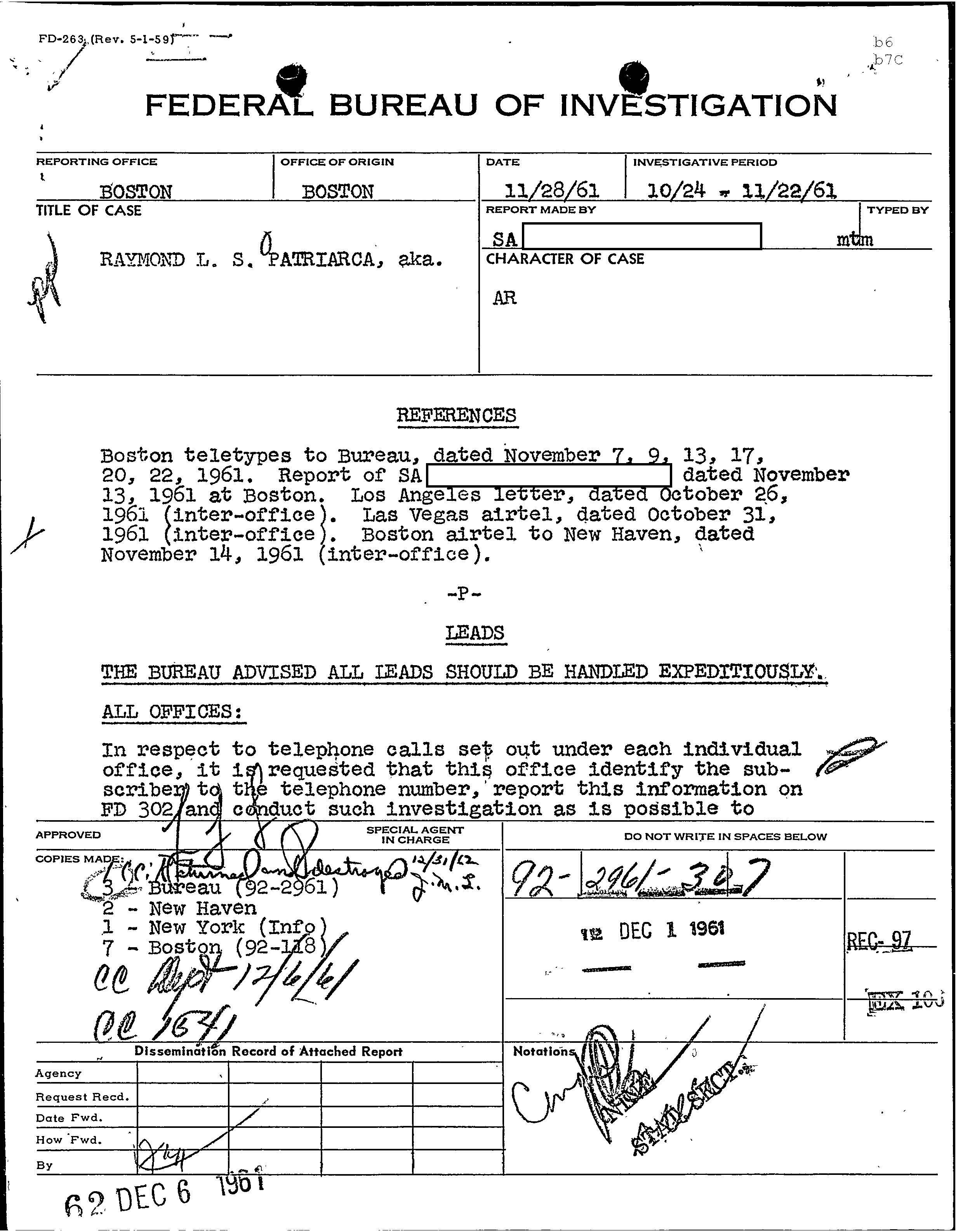 Make no mistake about it, the files are layered with information about a time where the scope and reach of the Patriarca crime family permeated nearly every aspect of life in New England.