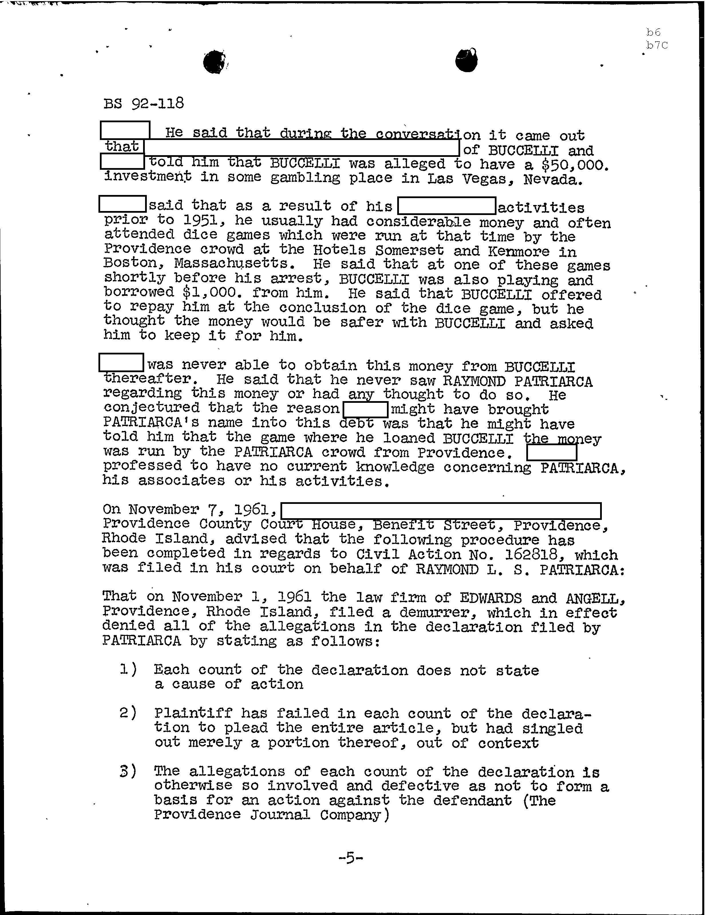 The venerable Providence law firm (now Locke Lord) “filed a demurrer (on behalf of the Providence Journal) which in effect denied all of the allegations…”