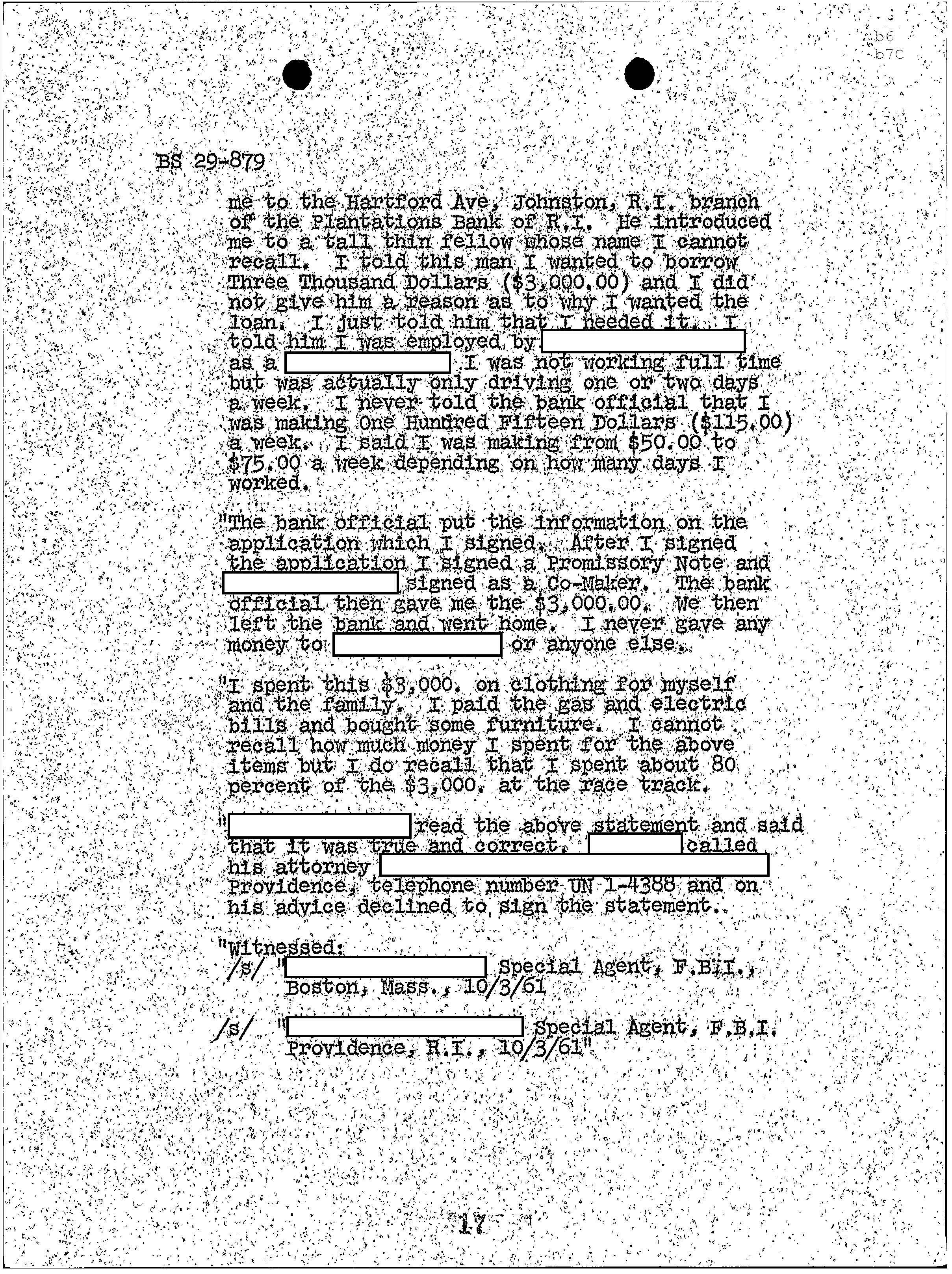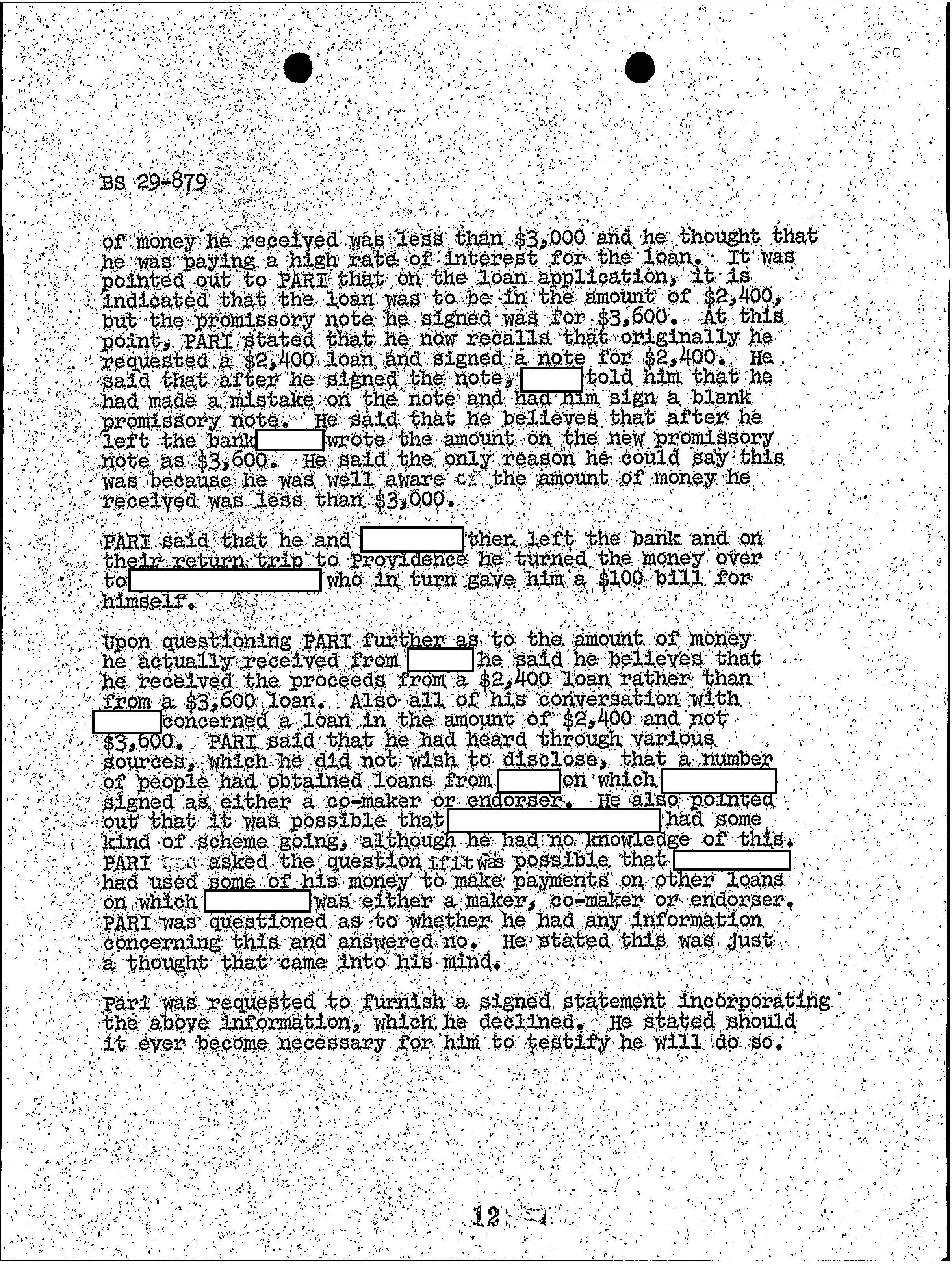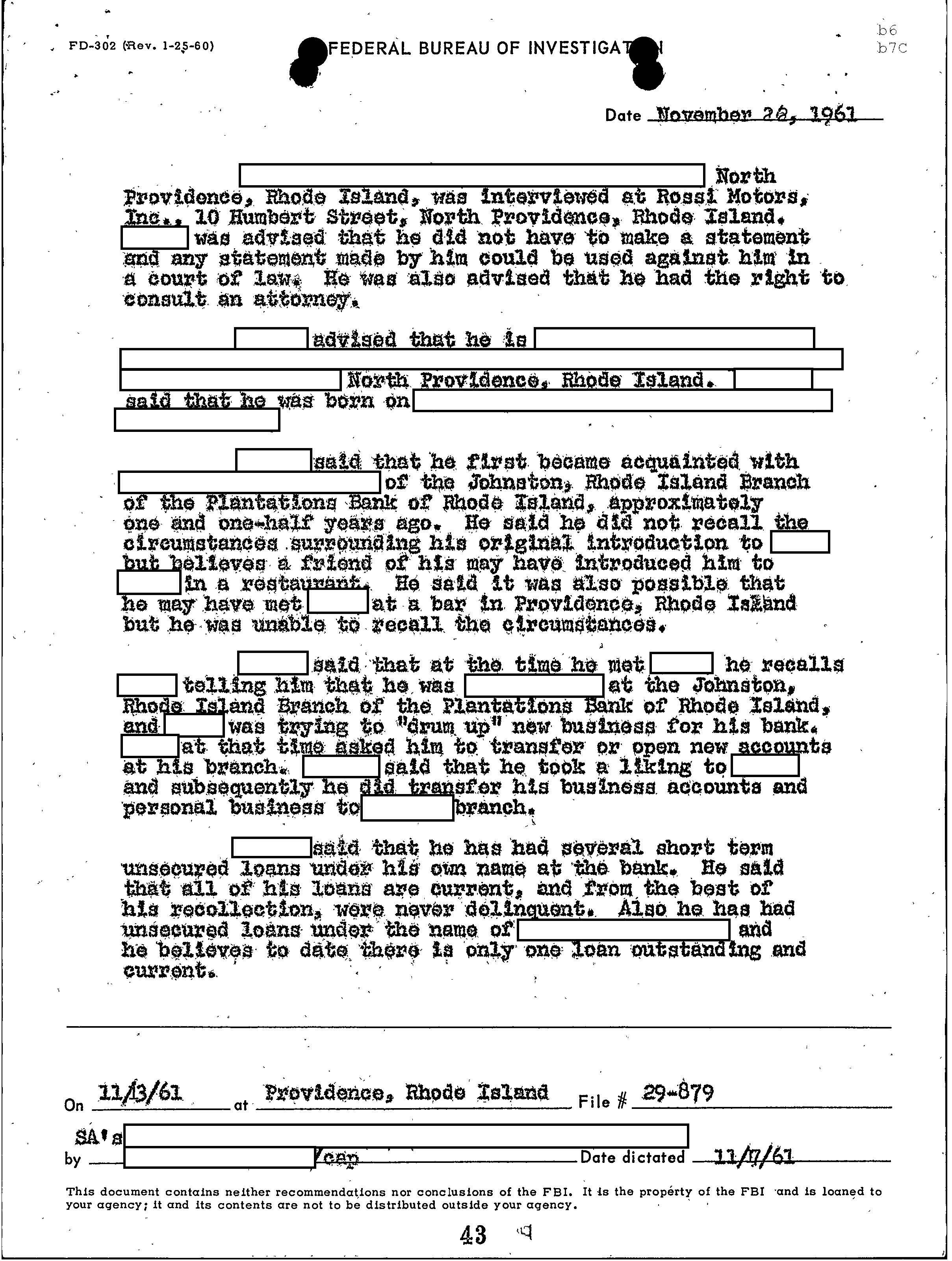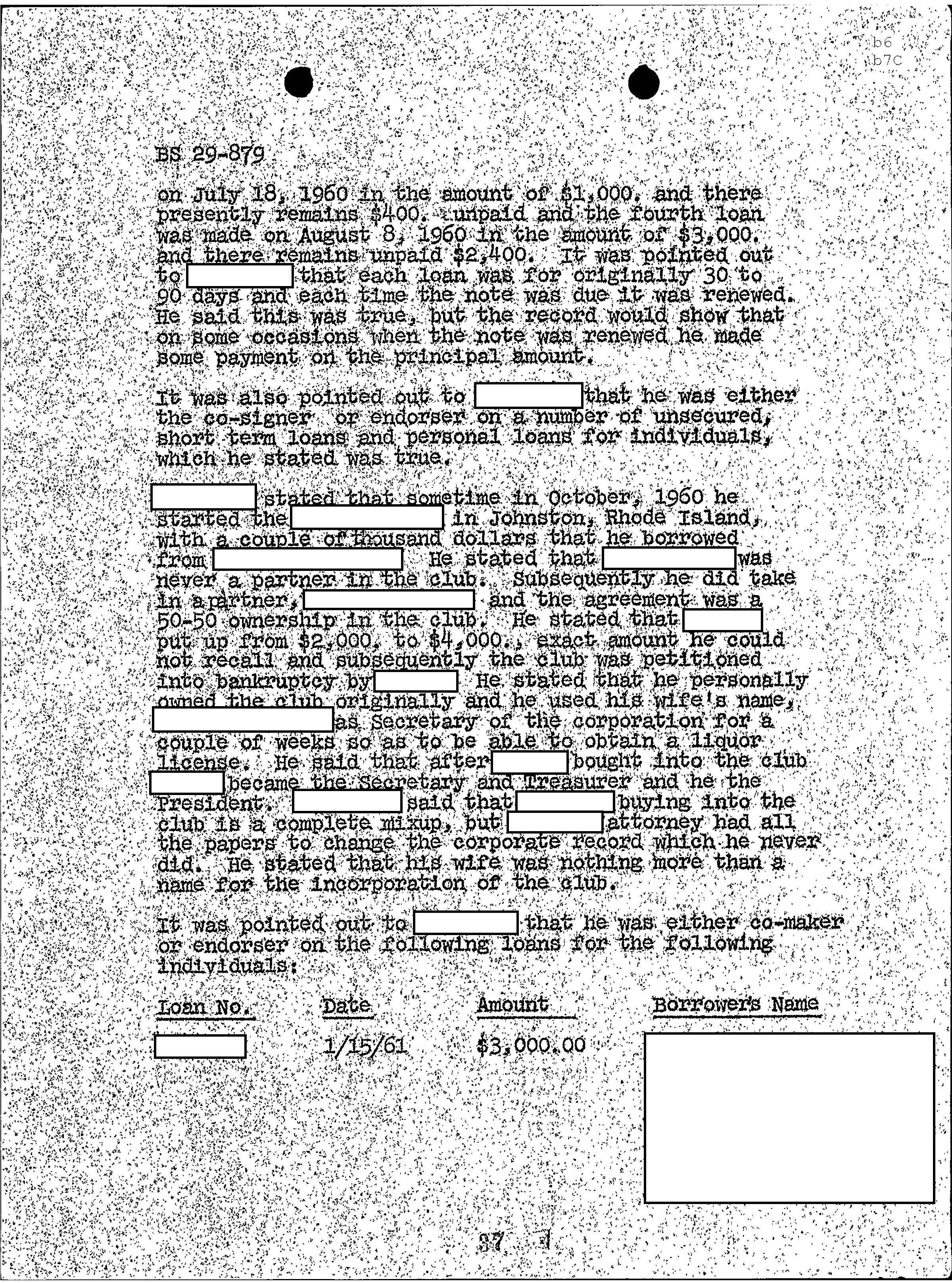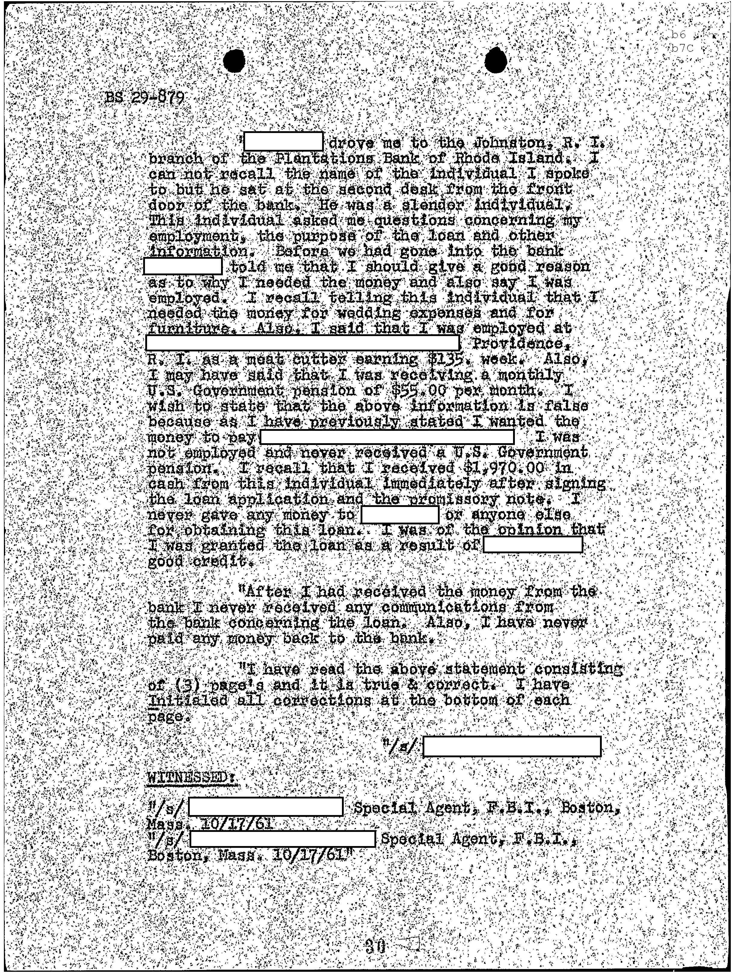As the FBI investigated Raimondi regarding questionable loans. Raimondi said “he is very fond of Raymond Patriarca and even if he know anything concerning him, he would never furnish the information. He said he would rather go to jail and even cut off his right arm before he would give information concerning with Patriarca.”
