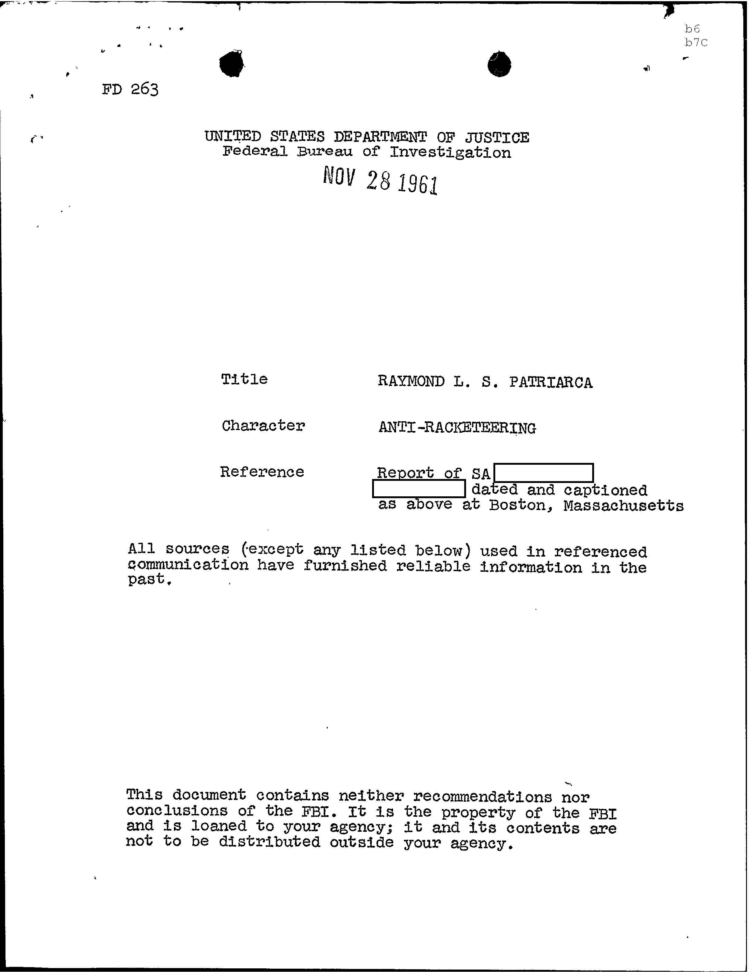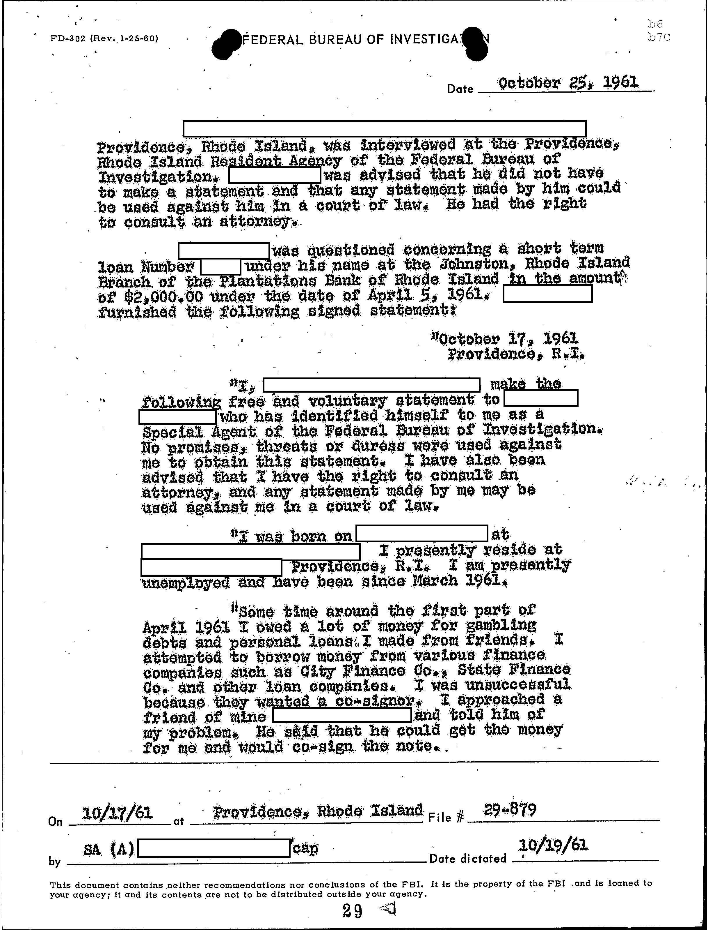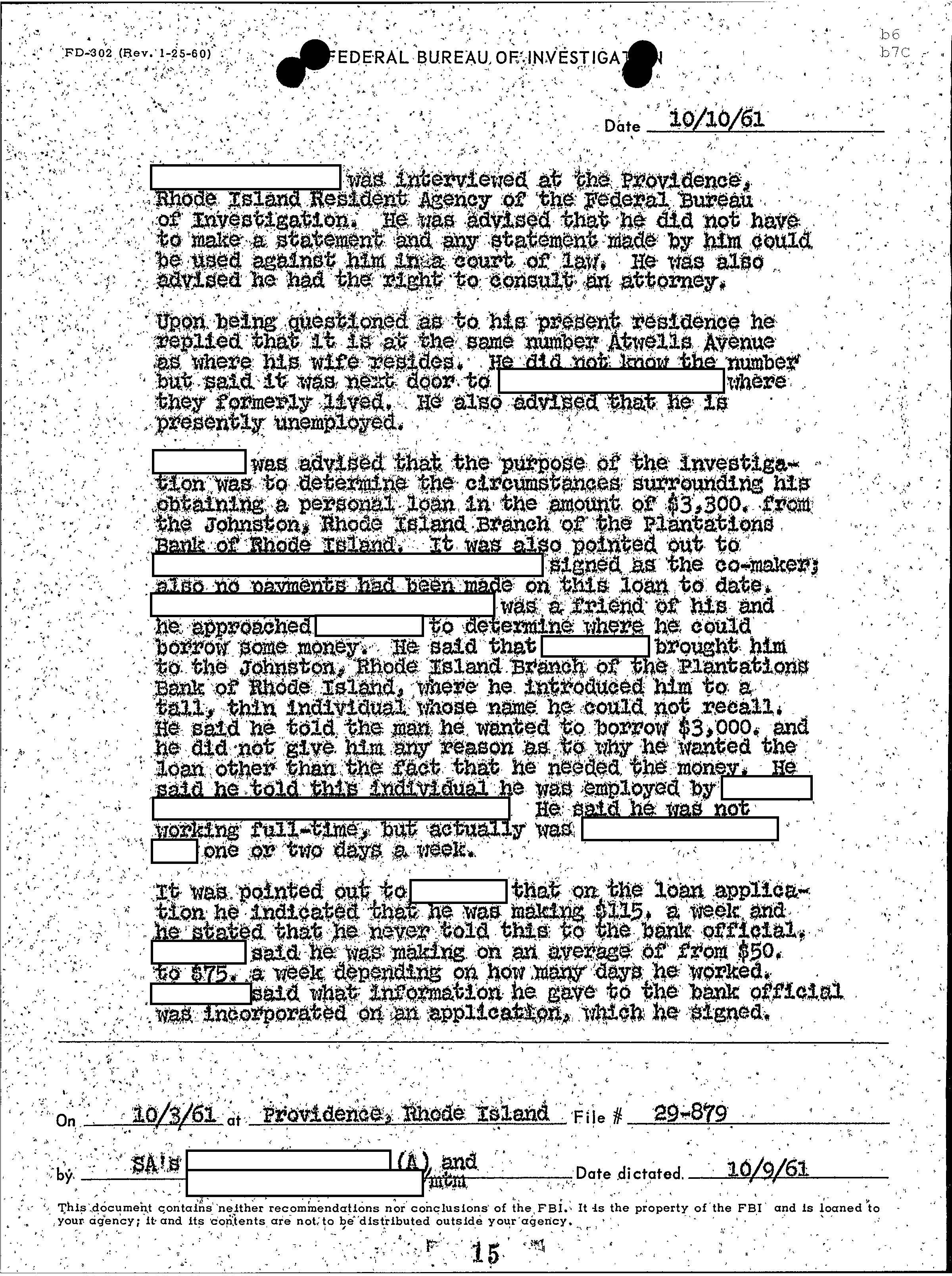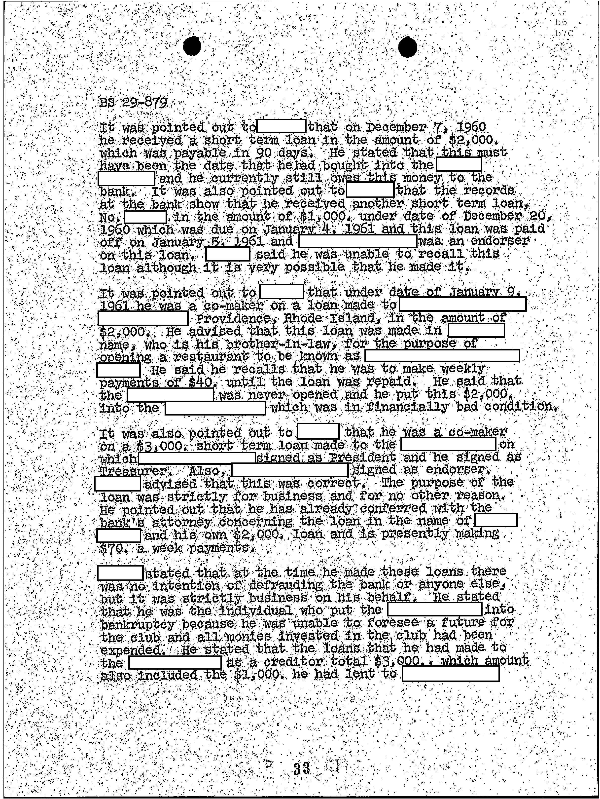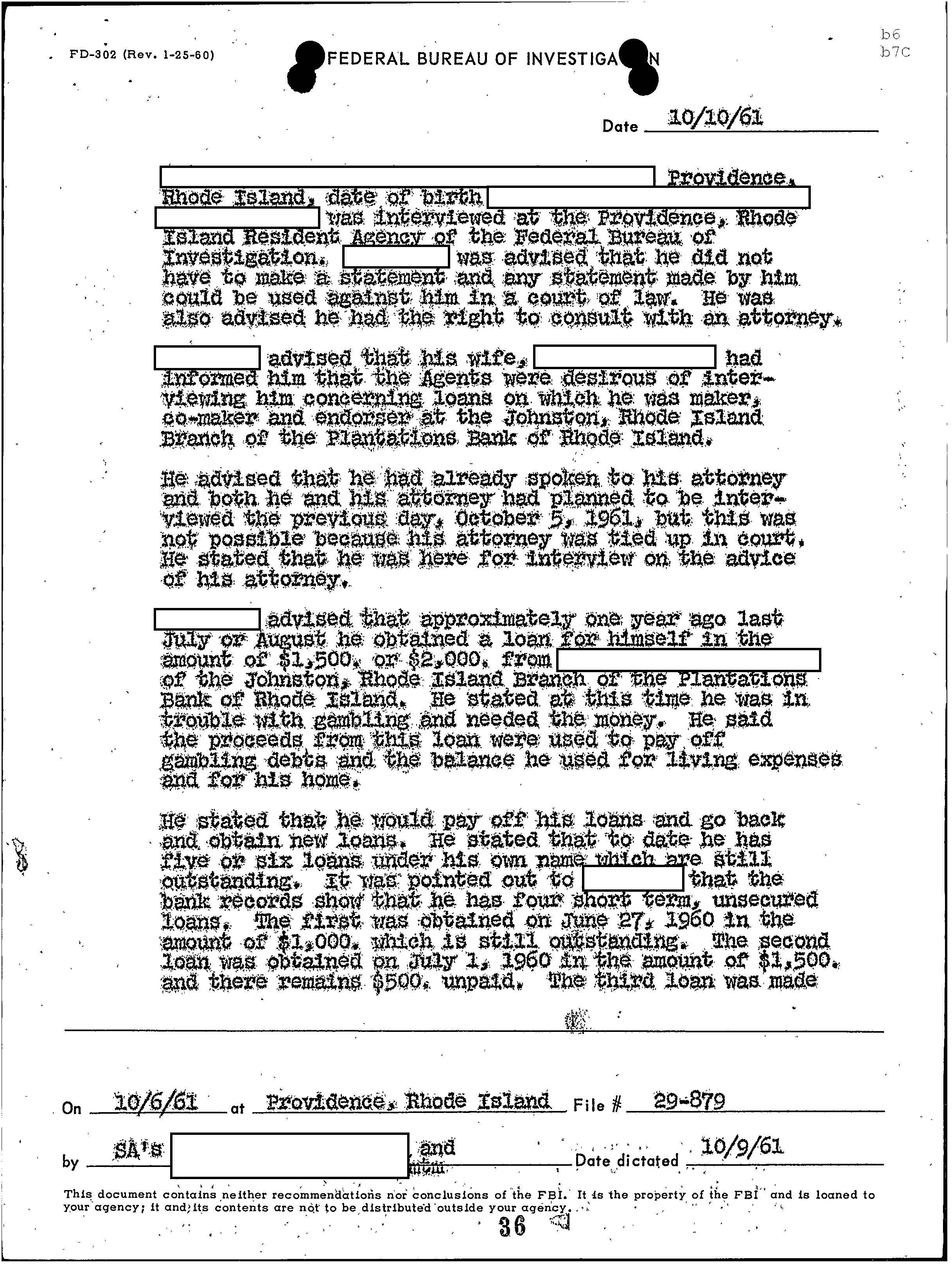As the FBI investigated Raimondi regarding questionable loans. Raimondi said “he is very fond of Raymond Patriarca and even if he know anything concerning him, he would never furnish the information. He said he would rather go to jail and even cut off his right arm before he would give information concerning with Patriarca.”