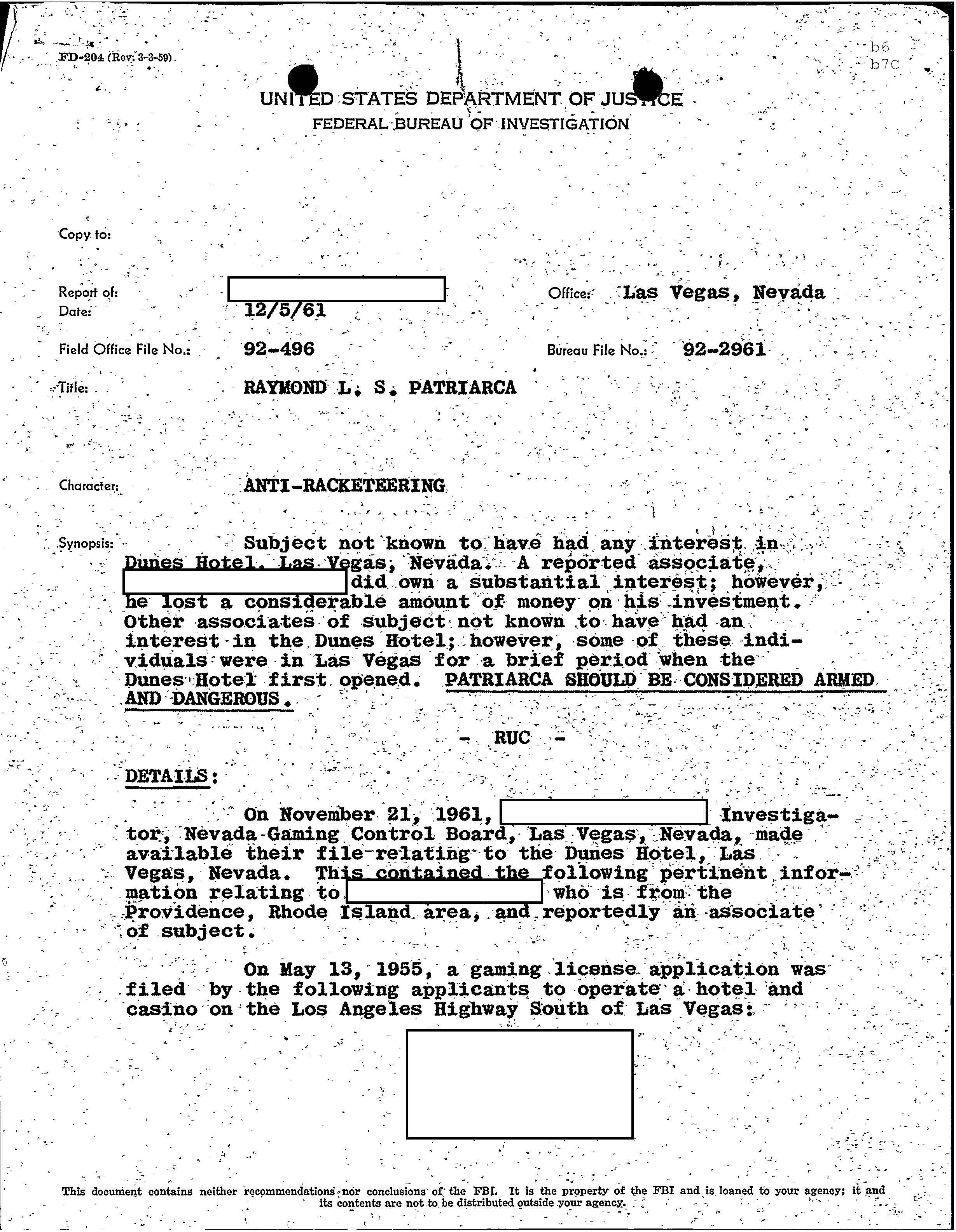 Cheat Sheet 16, FBI Files: Did Patriarca Have Anything to do with Bugsy Siegel's Murder?