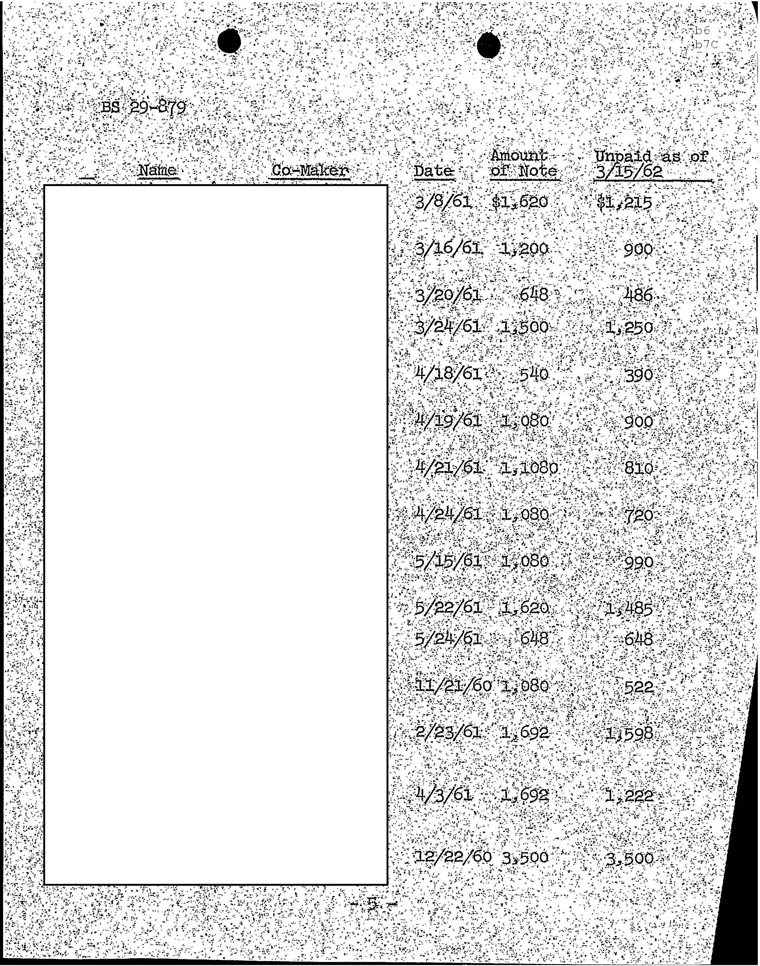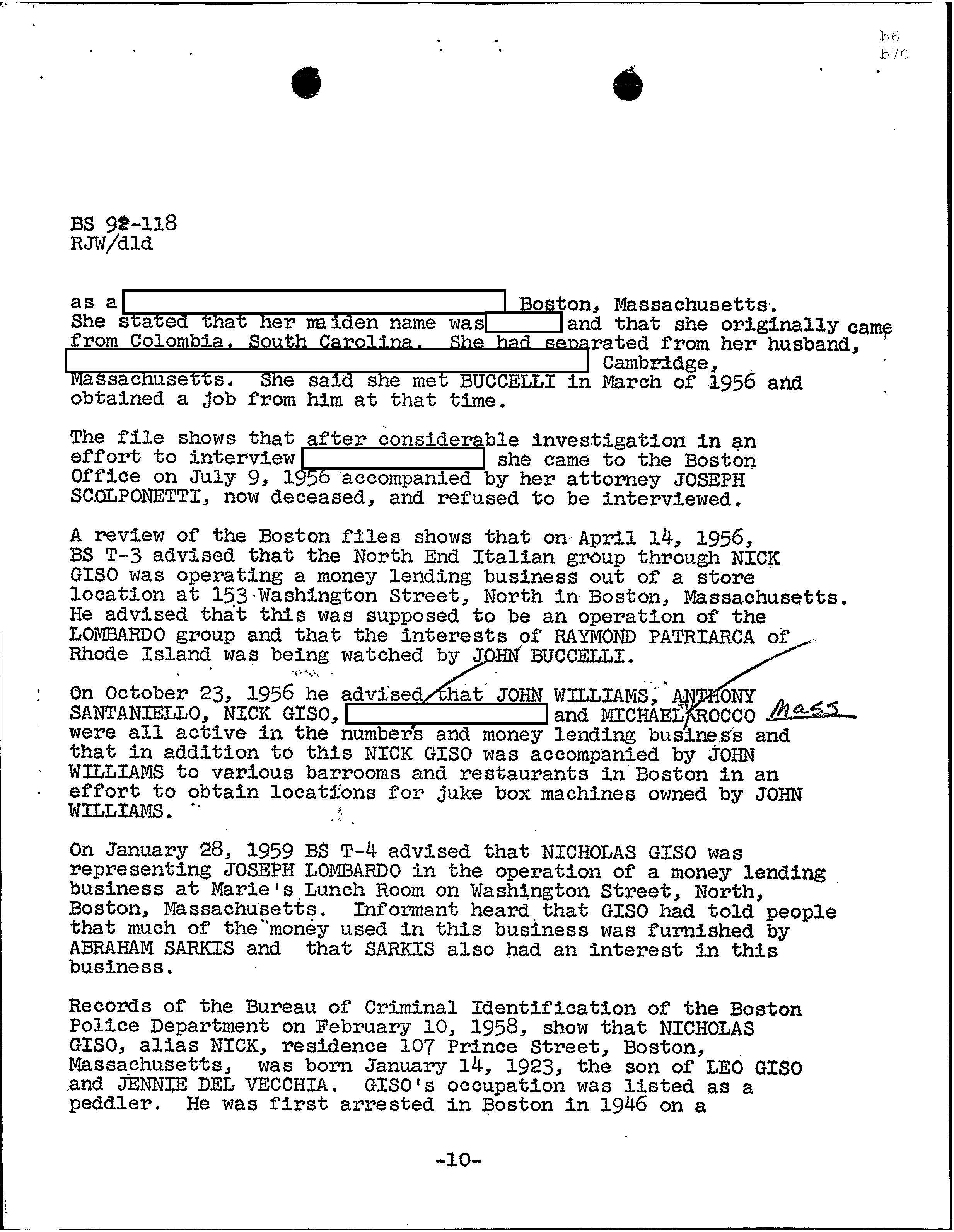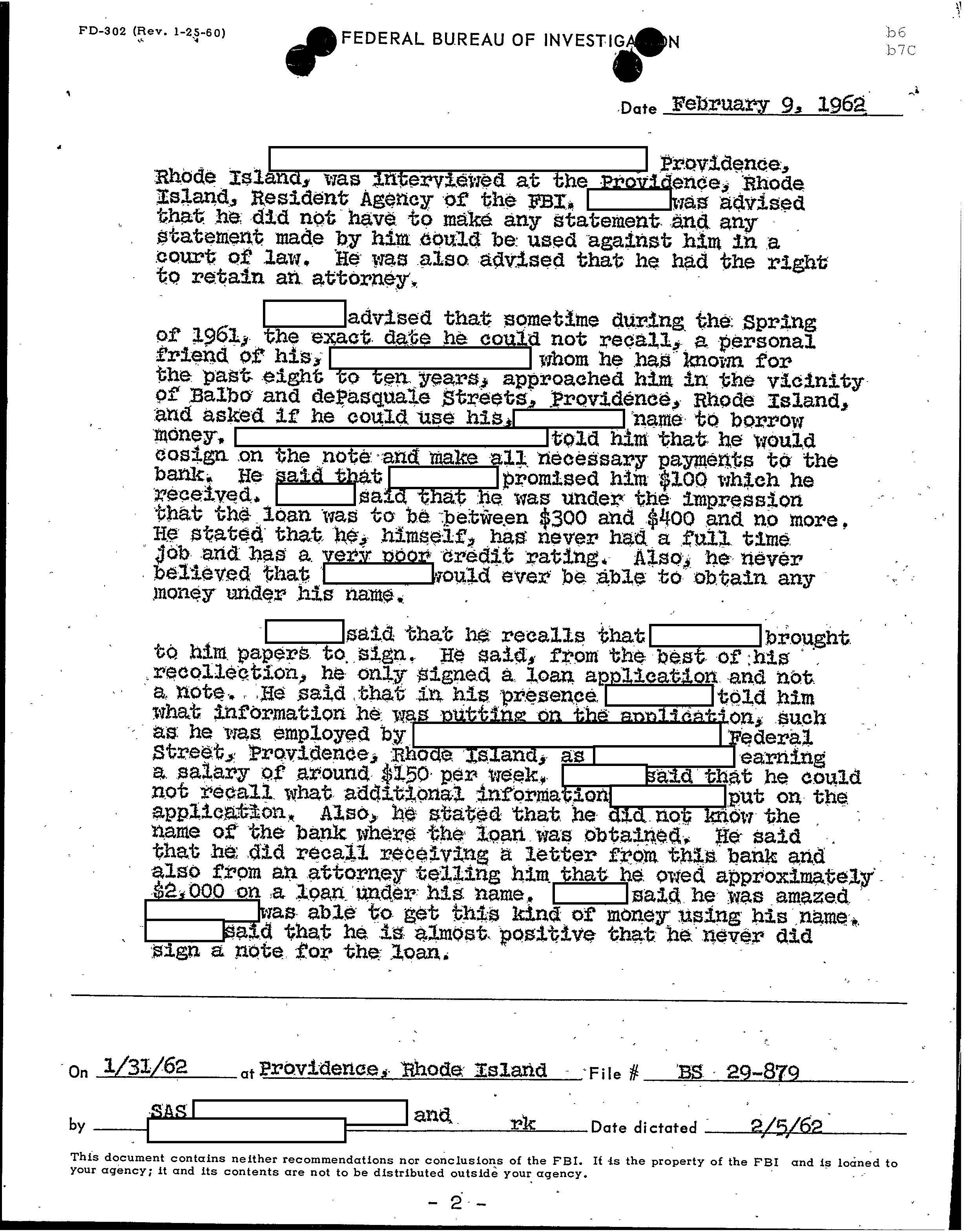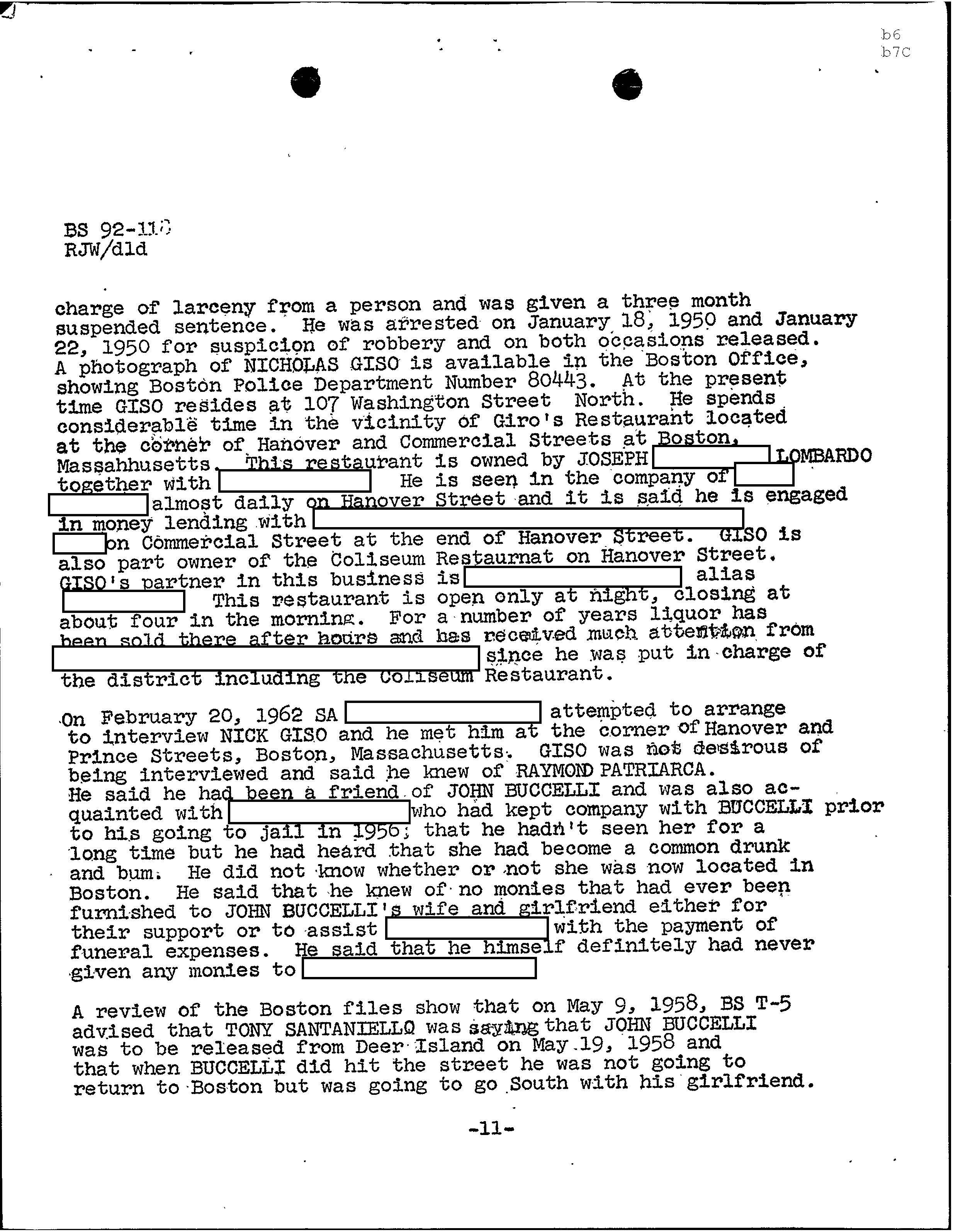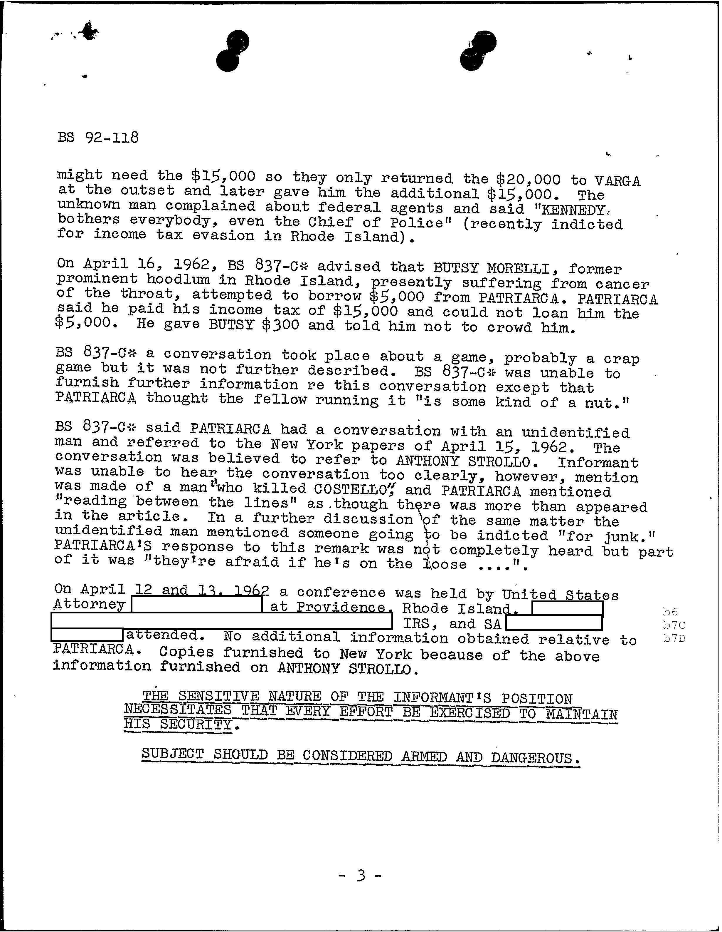 The FBI learned from a ounce that, “BUTSY MORELLI, former prominent hoodlum in Rhode Island, presently suffering from cancer of the throat, attempted to borrow $5,000 from Patriarca. Patriarca said he paid his income tax of $15,000 and could not loan him the $5,000. He gave BUTSY $300 and told him not to crowd him.”