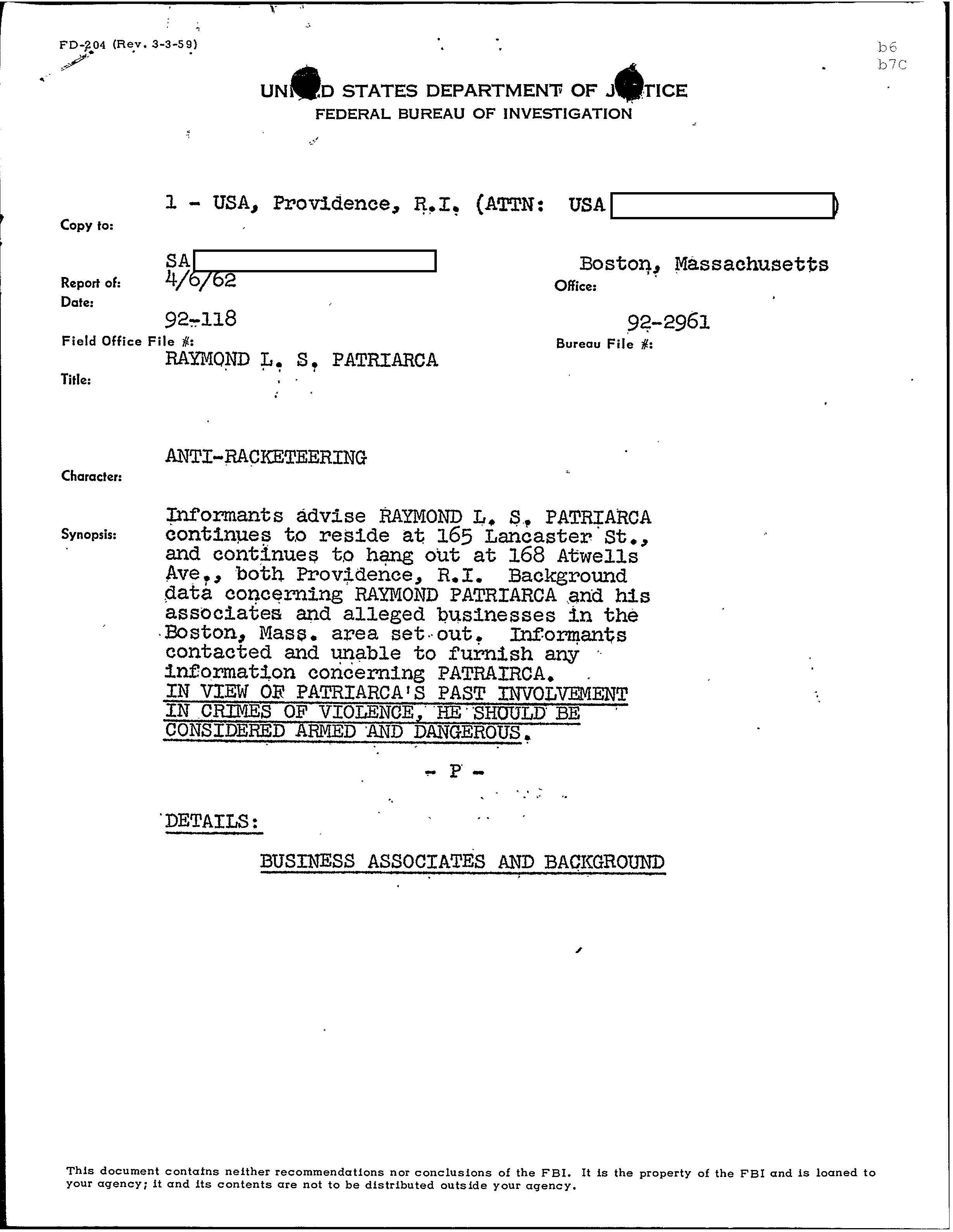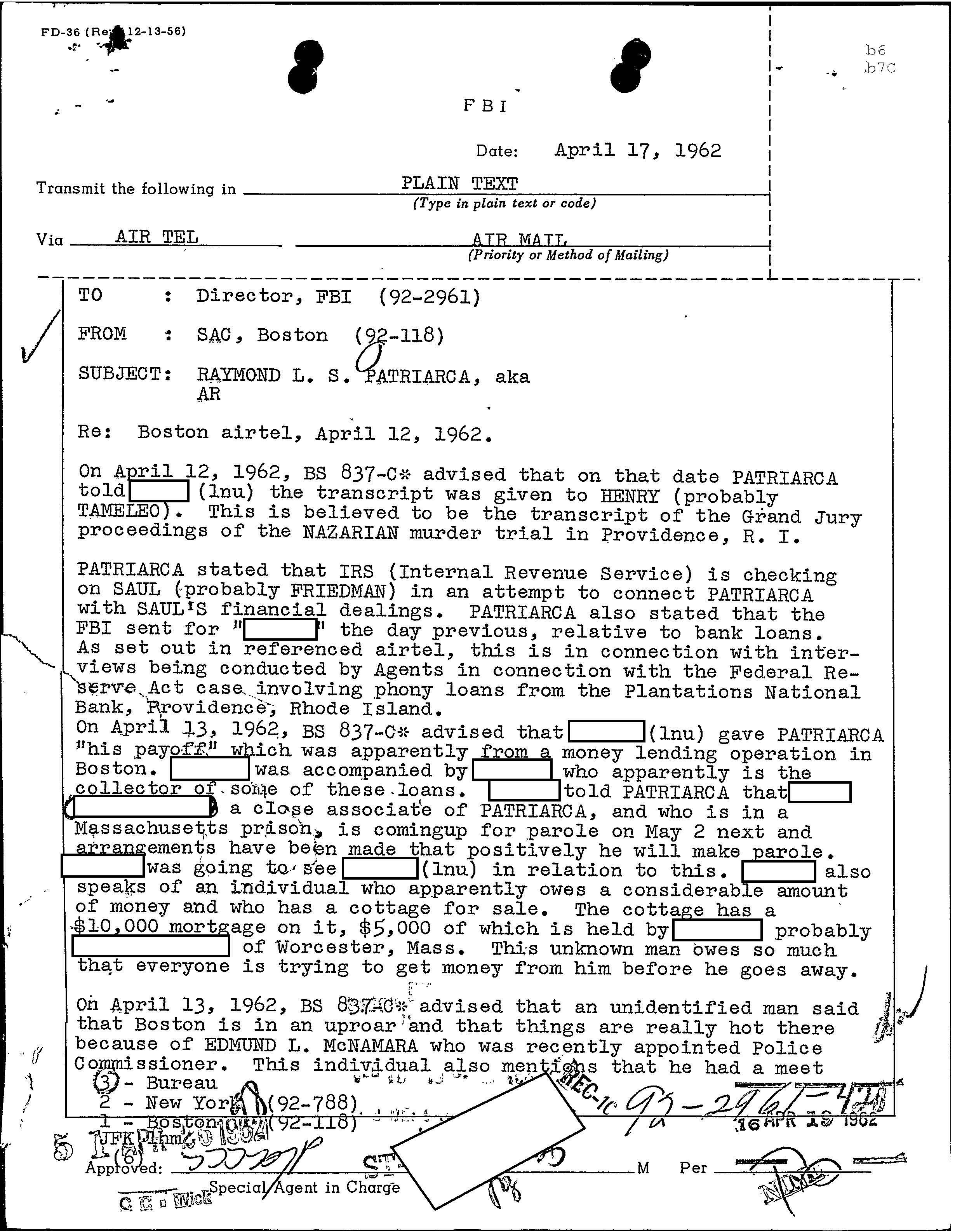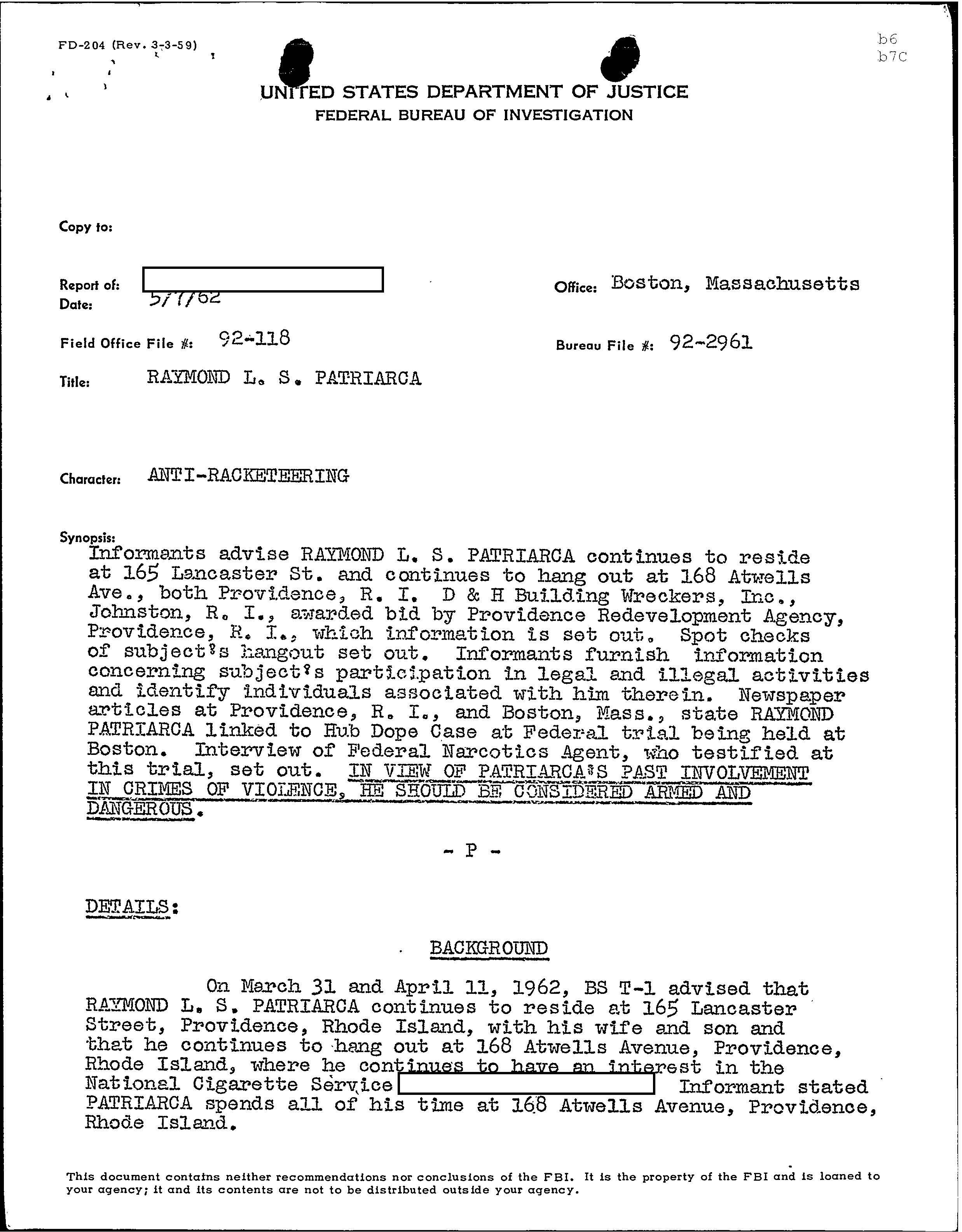 Make no mistake about it, the files are layered with information about a time where the scope and reach of the Patriarca crime family permeated nearly every aspect of life in New England.