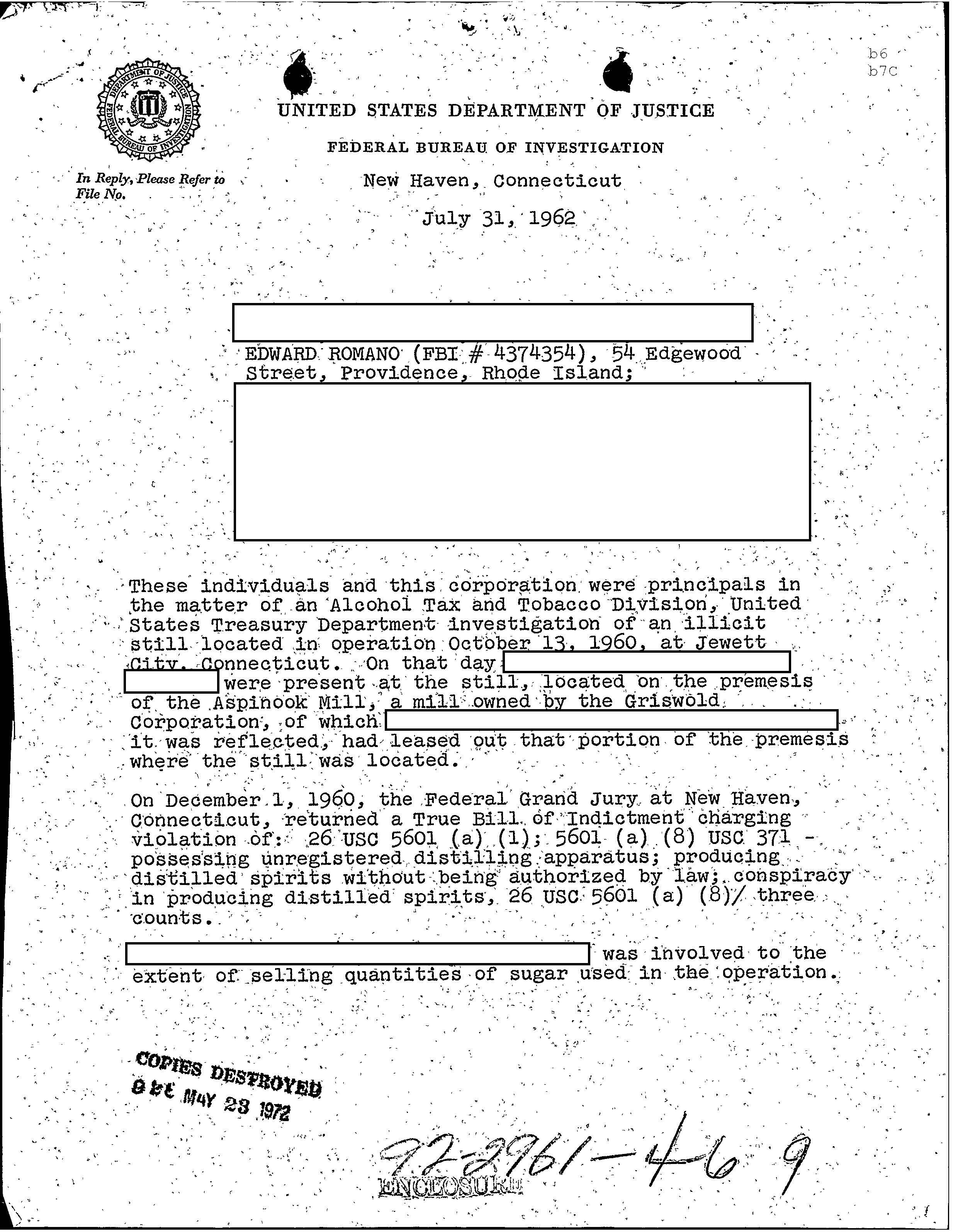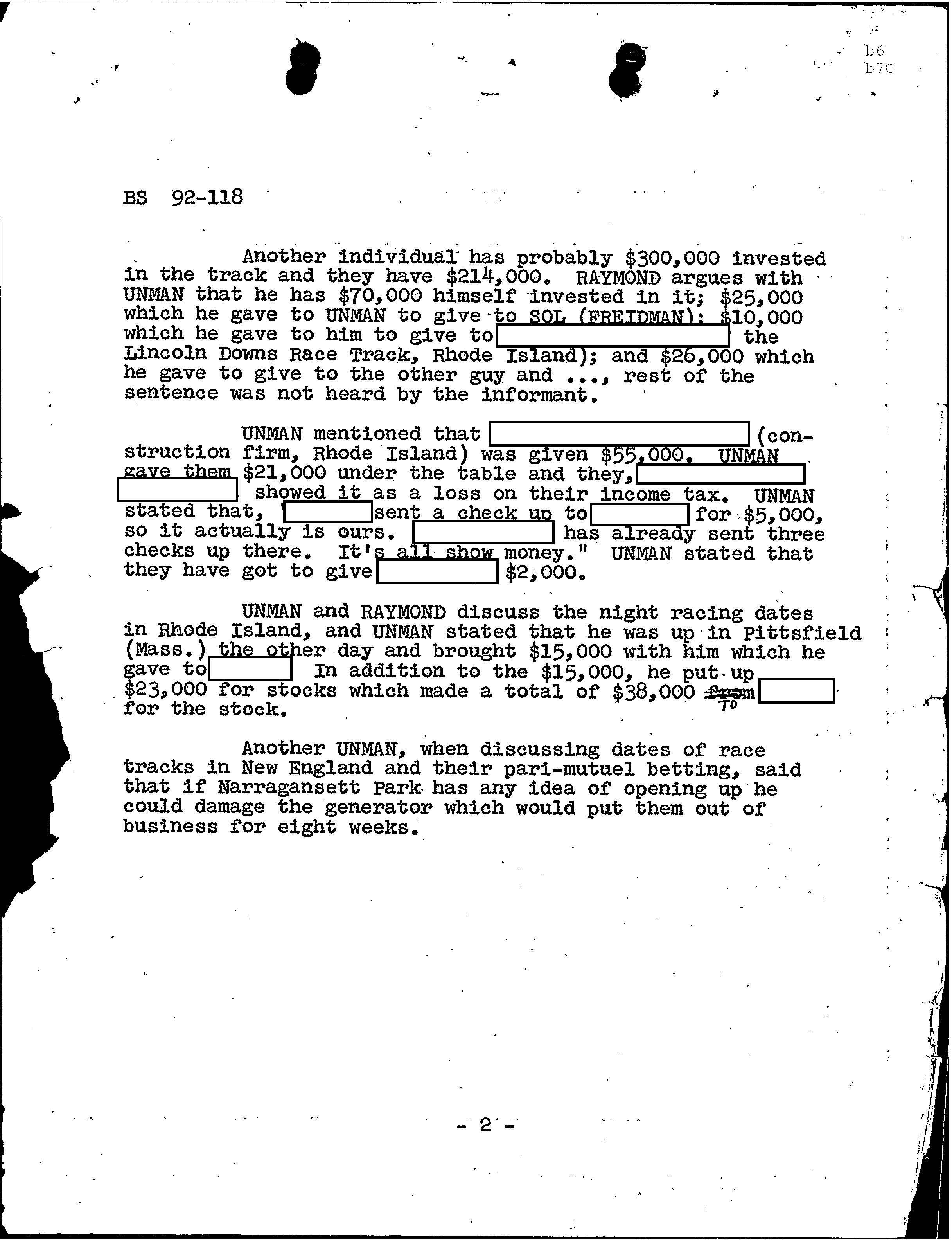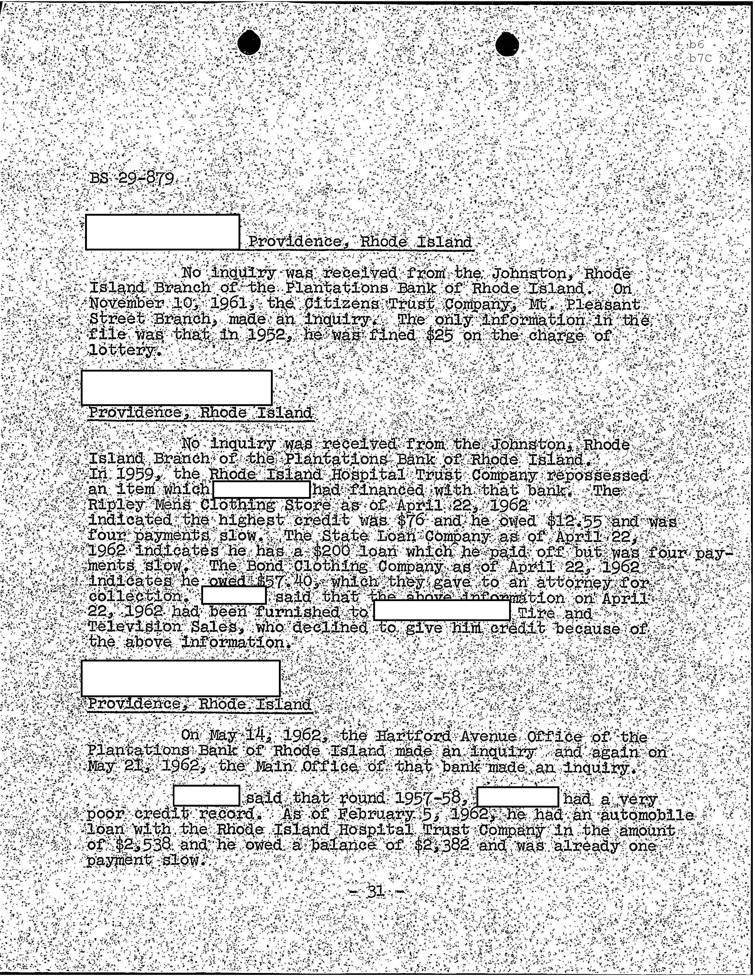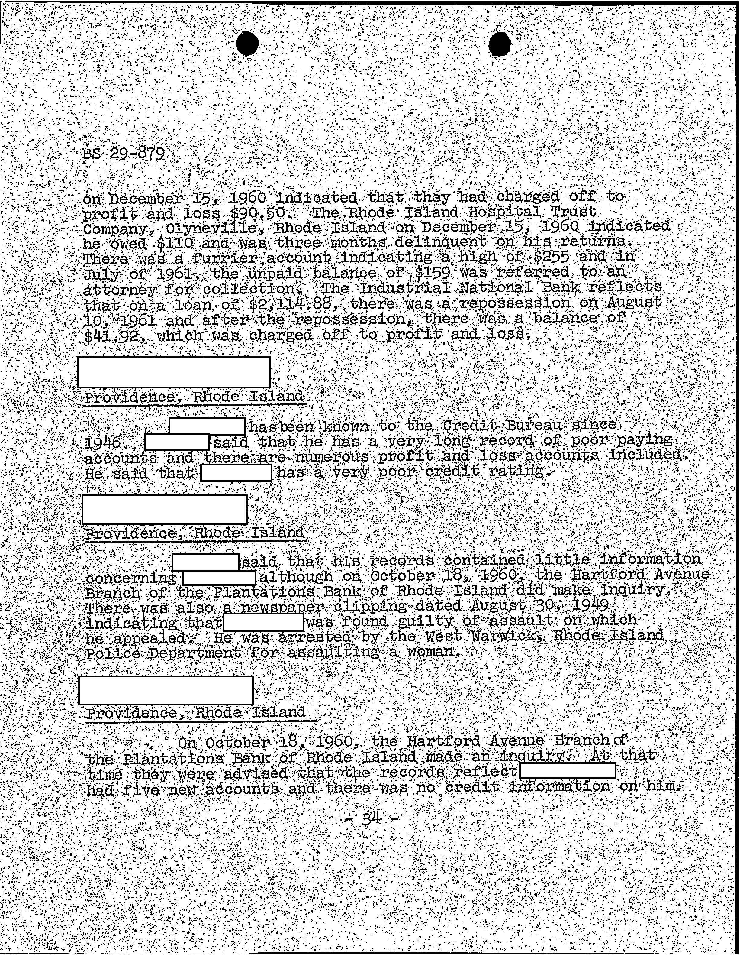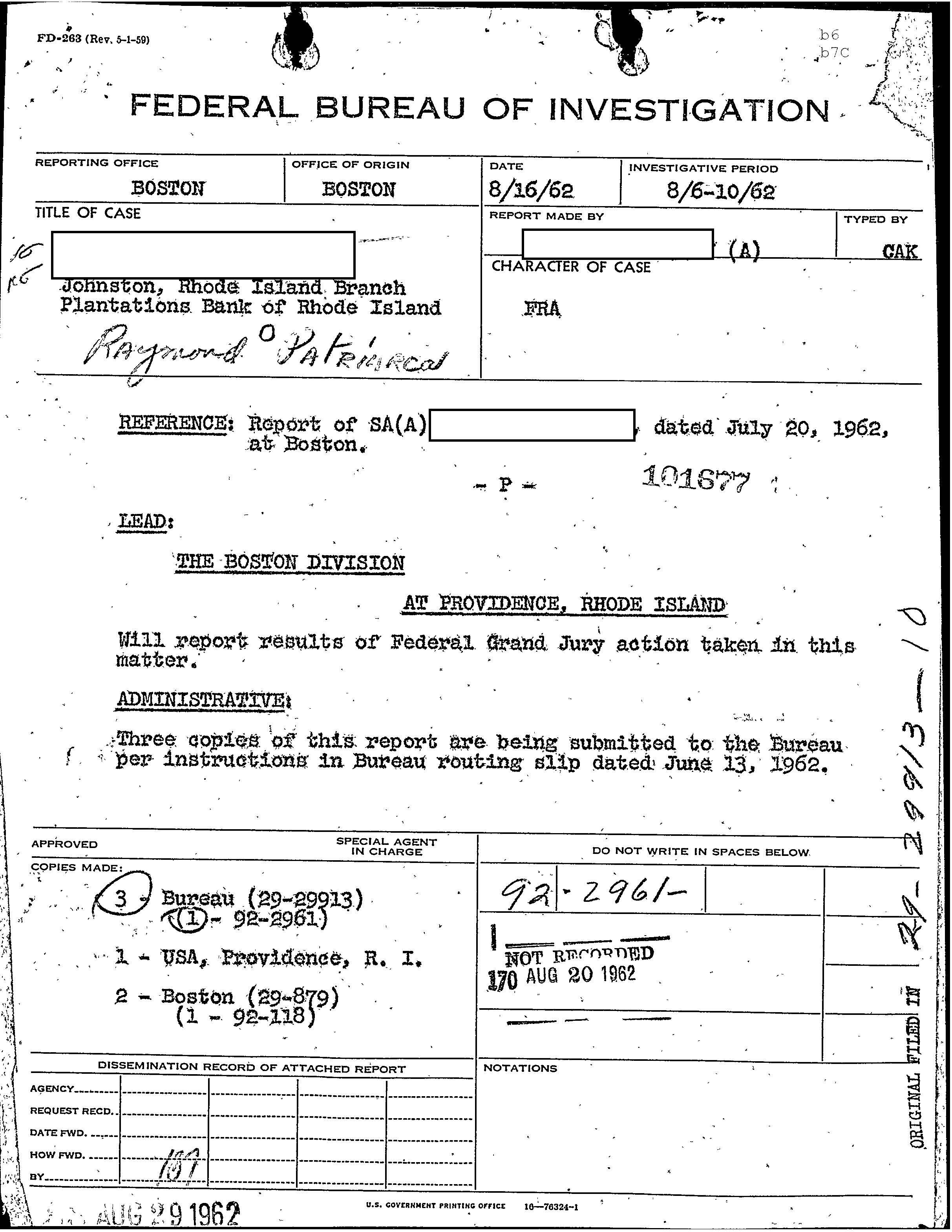 On Page 54, the documents unveil, “In this connection, on July 27, 1962, the Federal Grant Jury at Boston returned indictments against seven individuals on charges of conspiracy to defraud the government and evading gambling excise taxes.”