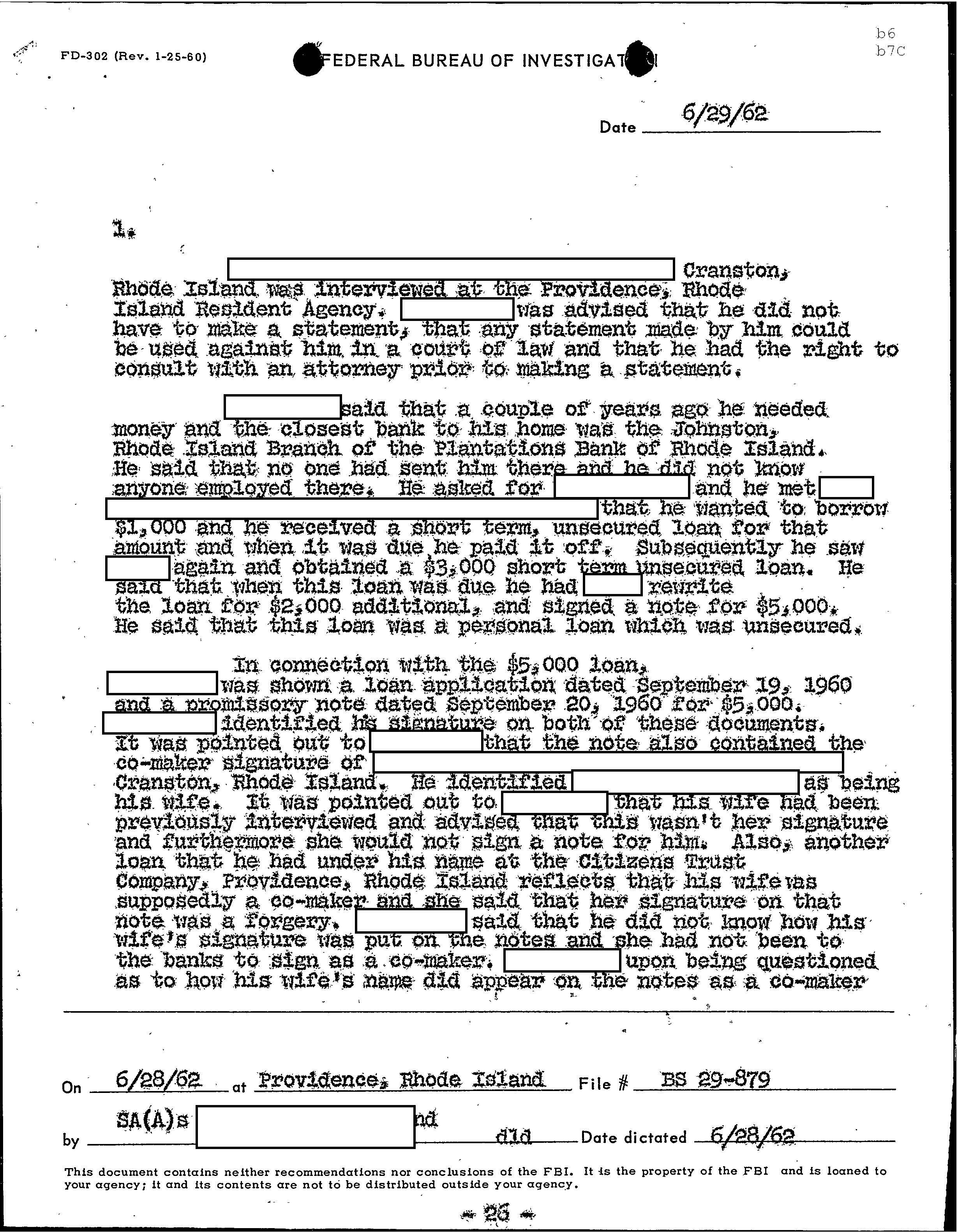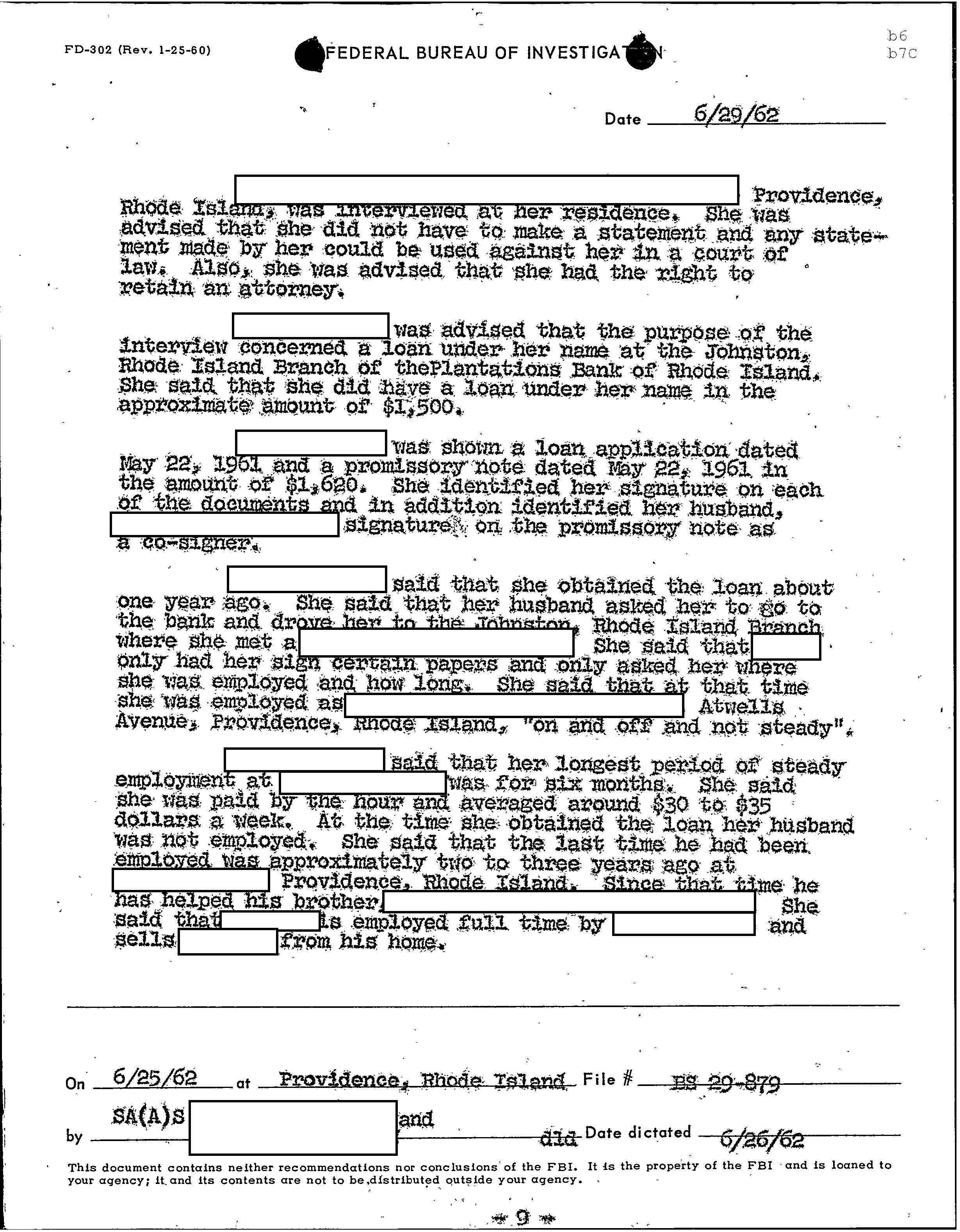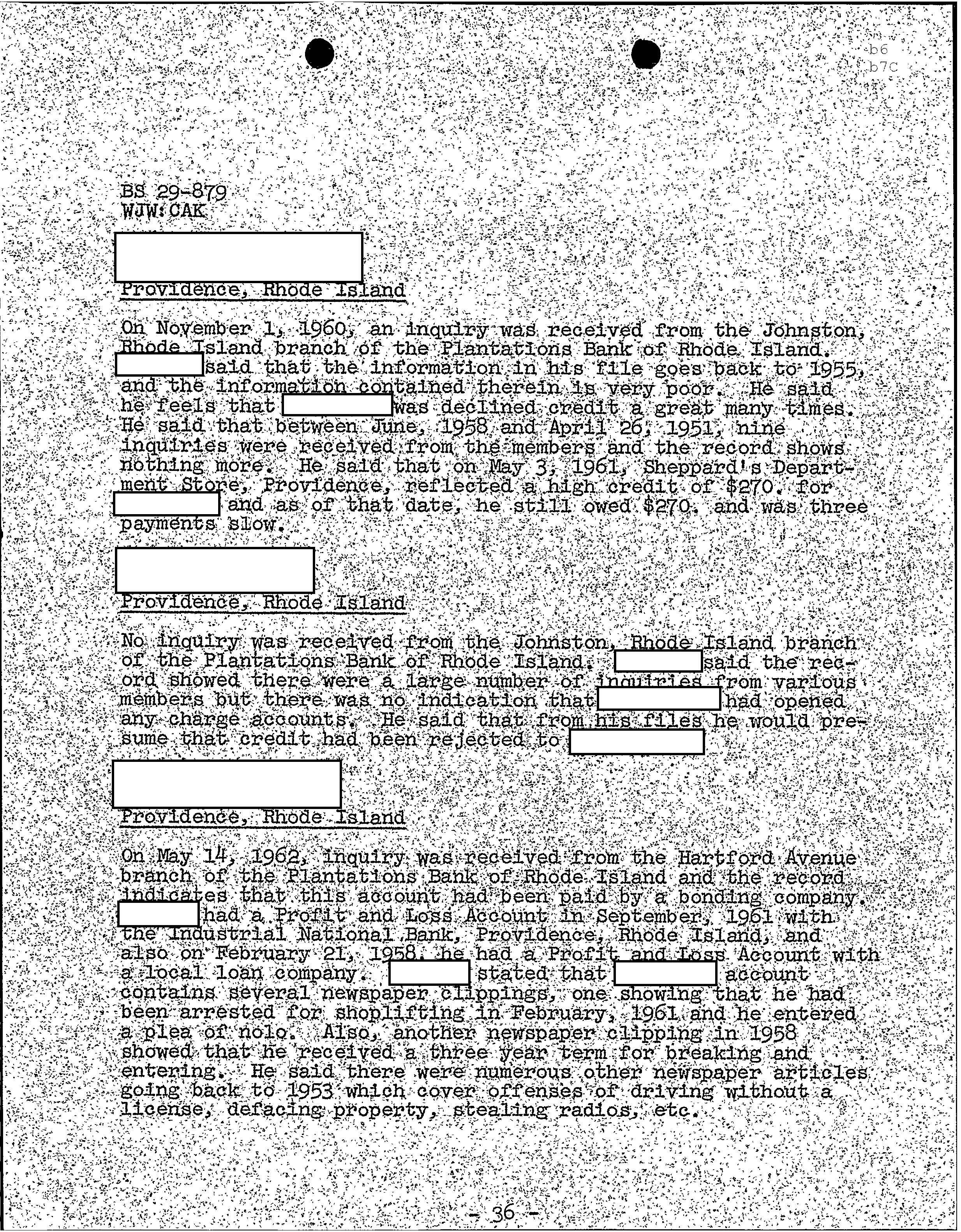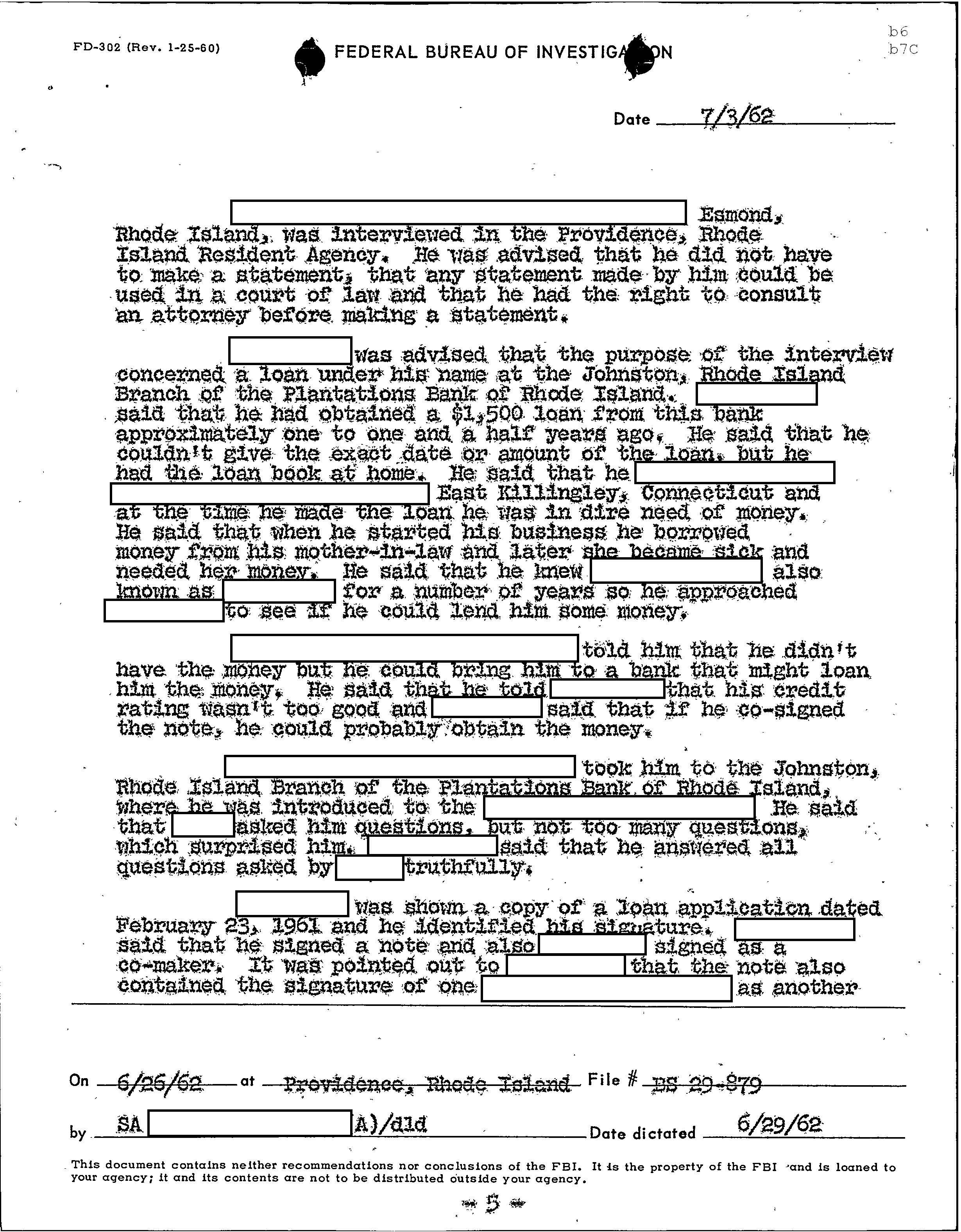 On Page 54, the documents unveil, “In this connection, on July 27, 1962, the Federal Grant Jury at Boston returned indictments against seven individuals on charges of conspiracy to defraud the government and evading gambling excise taxes.”