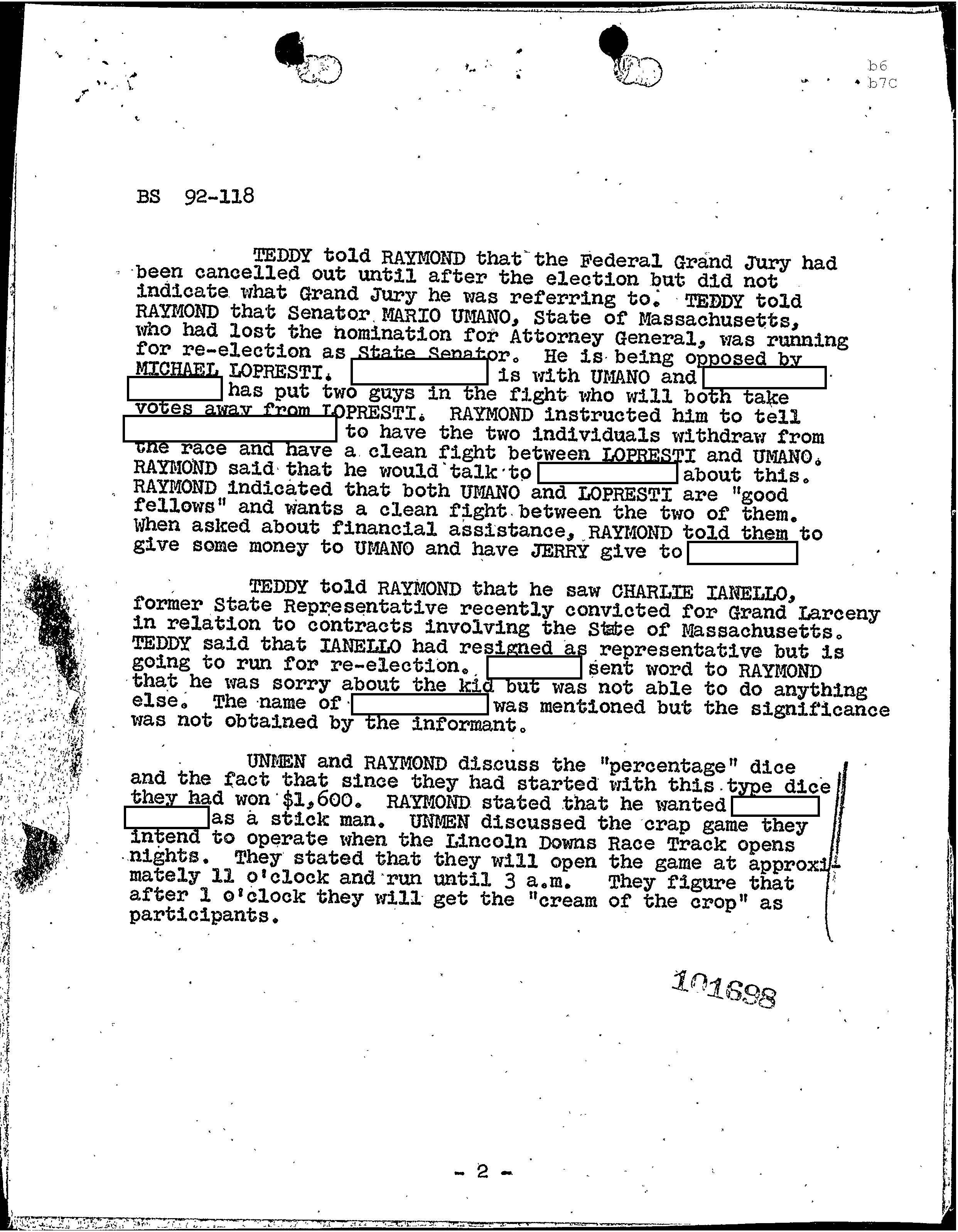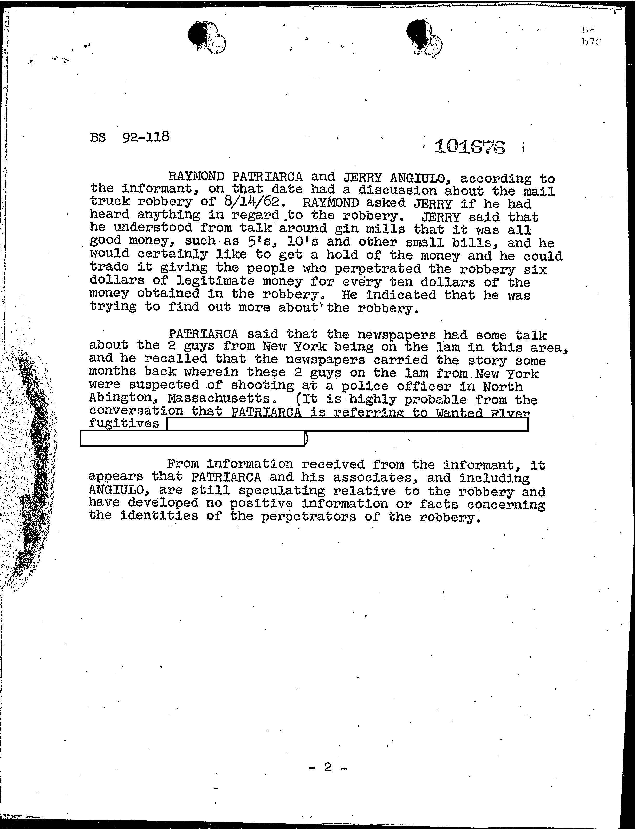 According to FBI documents, it is alleged that the Lt. Governor of Massachusetts’ driver - a MA State Trooper was being bribed by Patriarca’s organization.