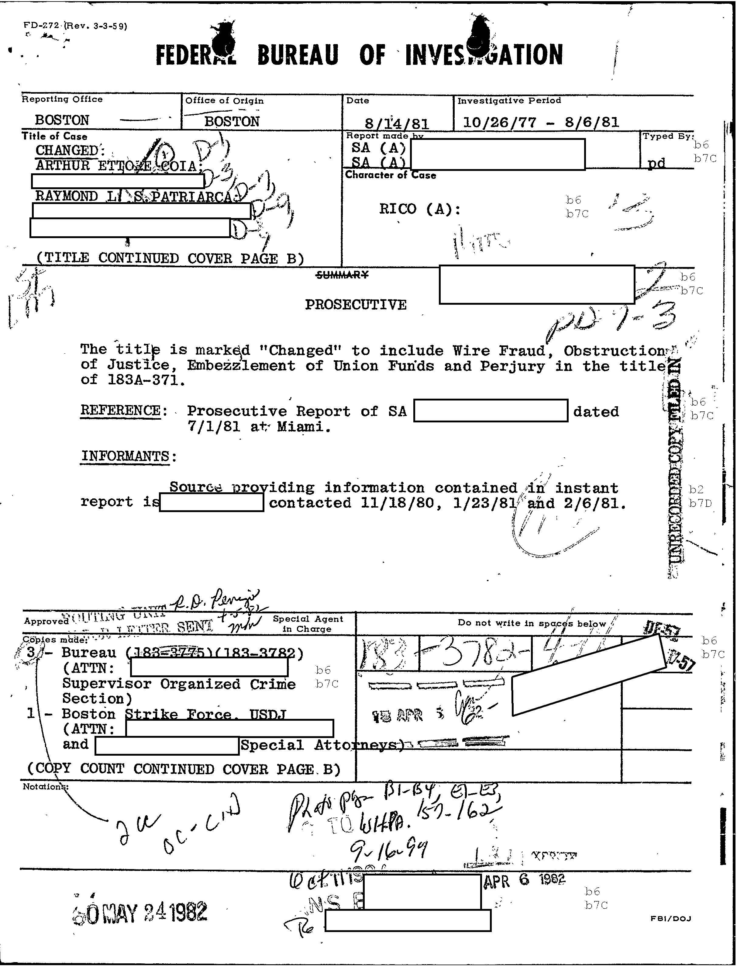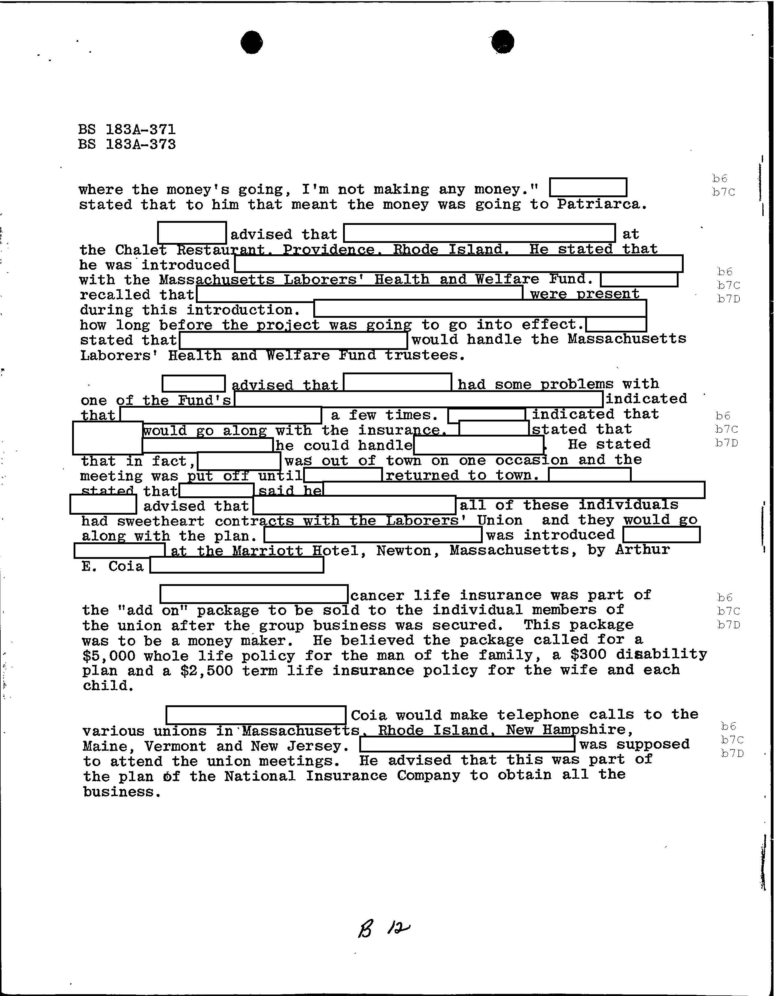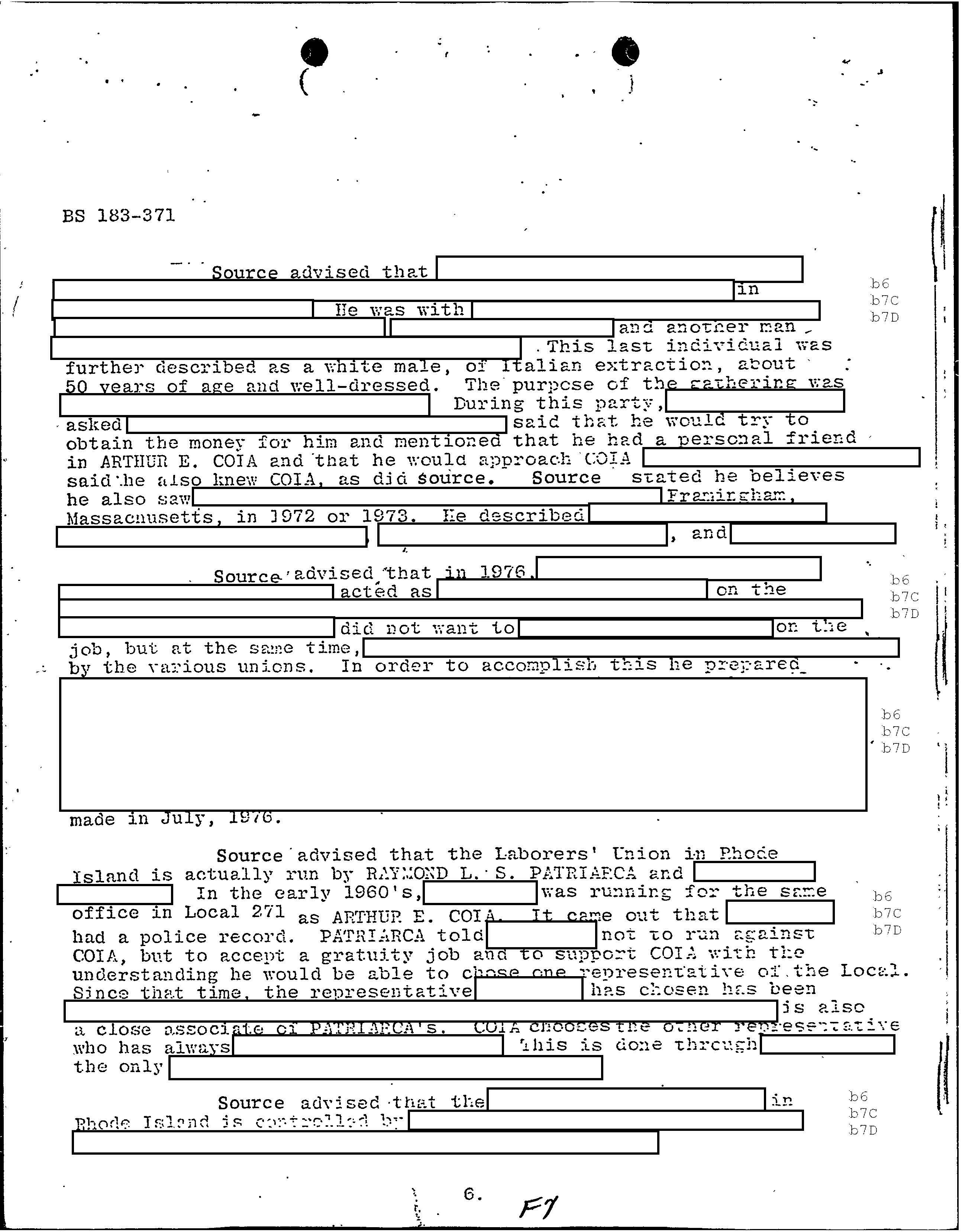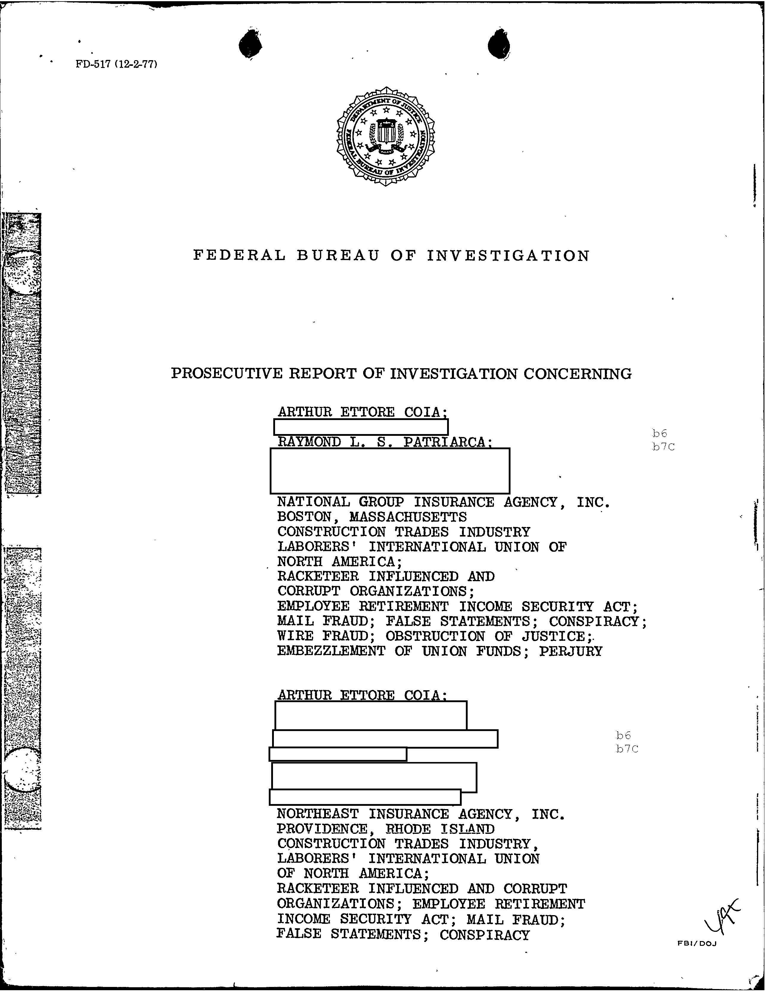 Page 6 Complete Prosecutive Report of Investigation by the FBI concerning Coia, Patriarca and multiple organizations.