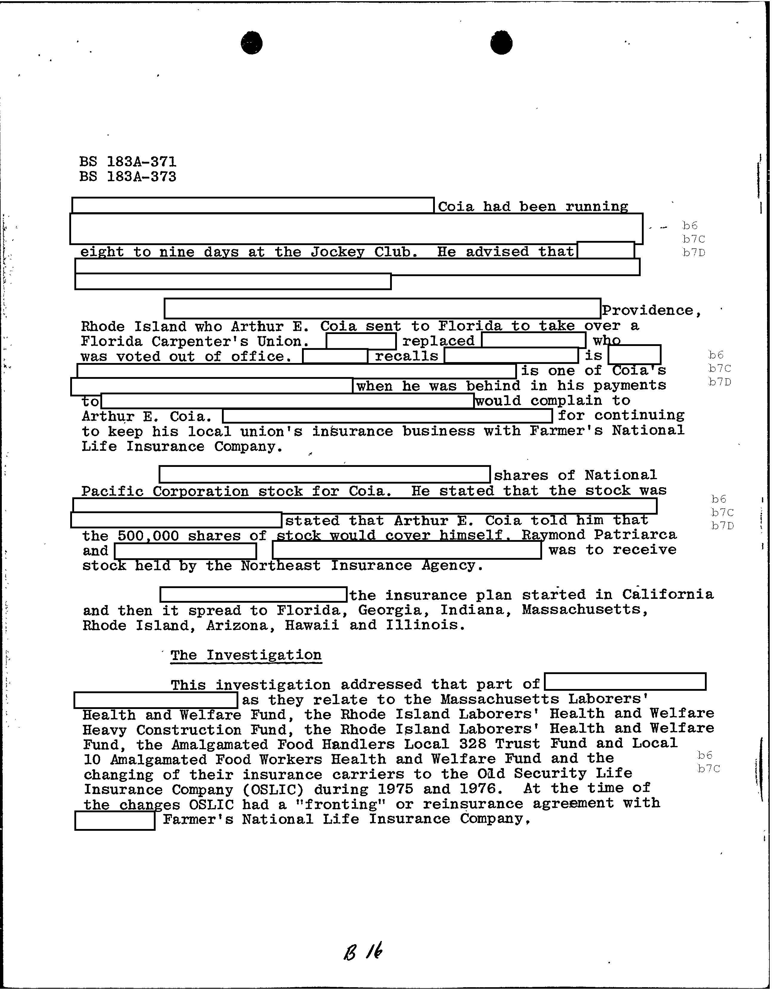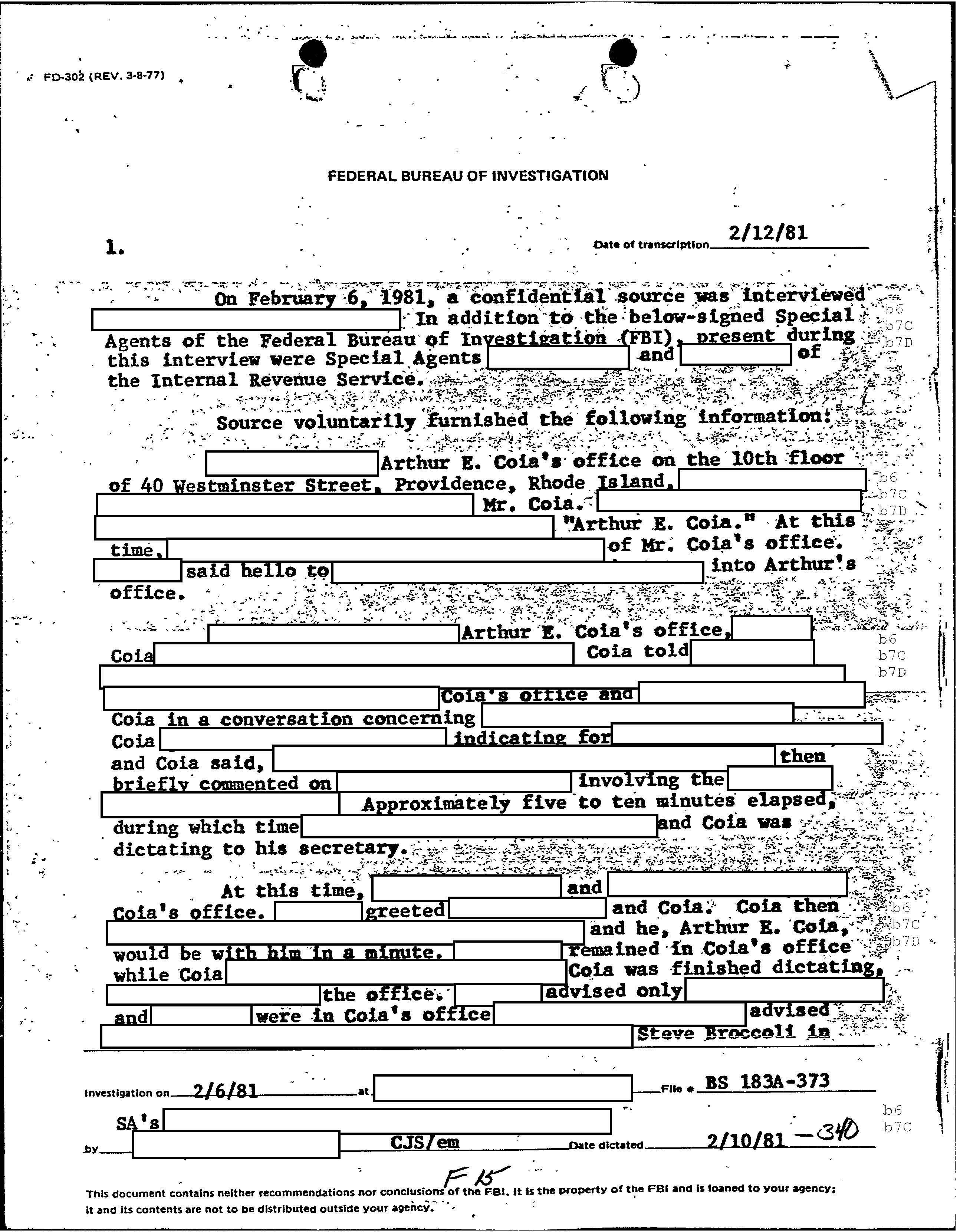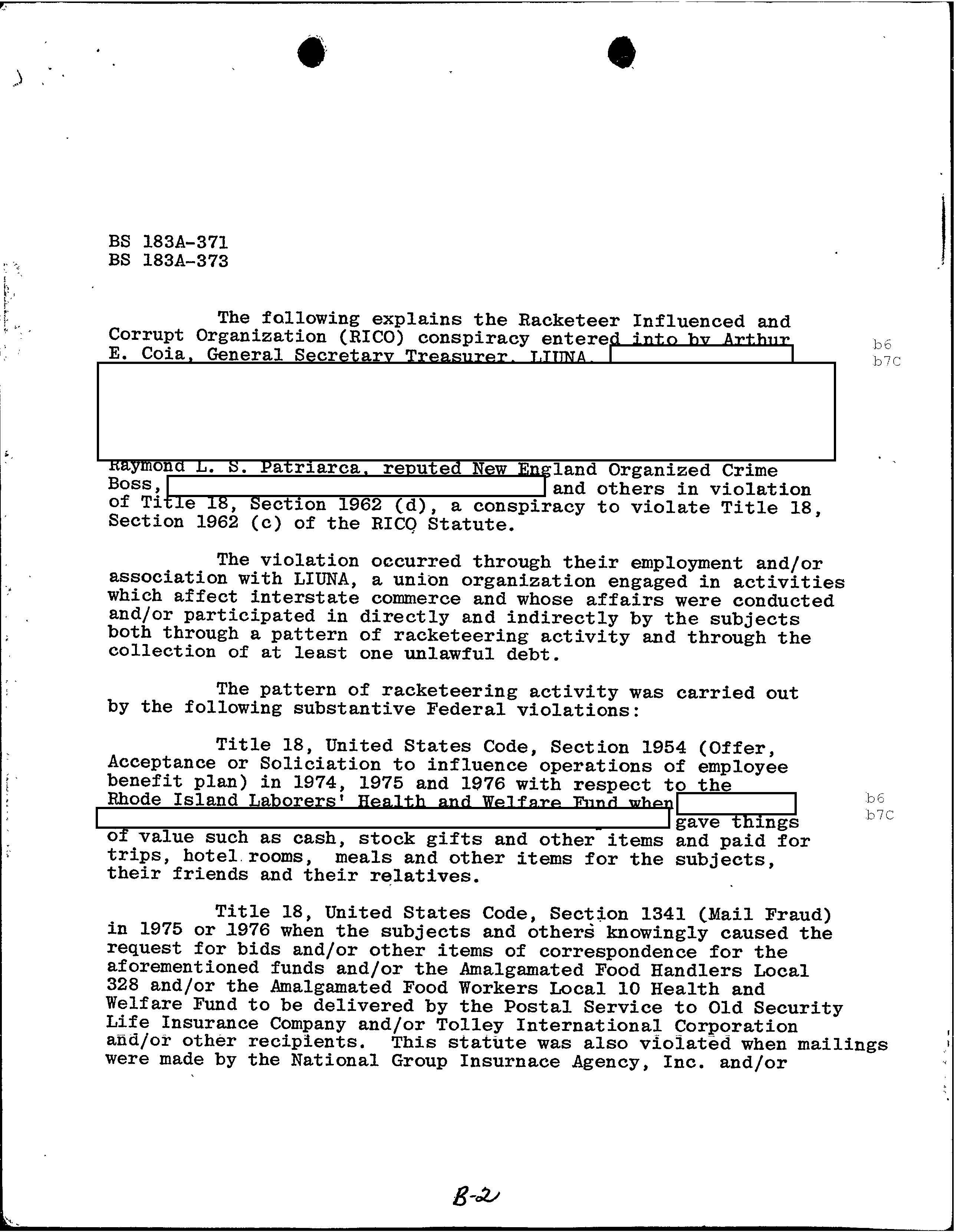 Page 6 Complete Prosecutive Report of Investigation by the FBI concerning Coia, Patriarca and multiple organizations.
