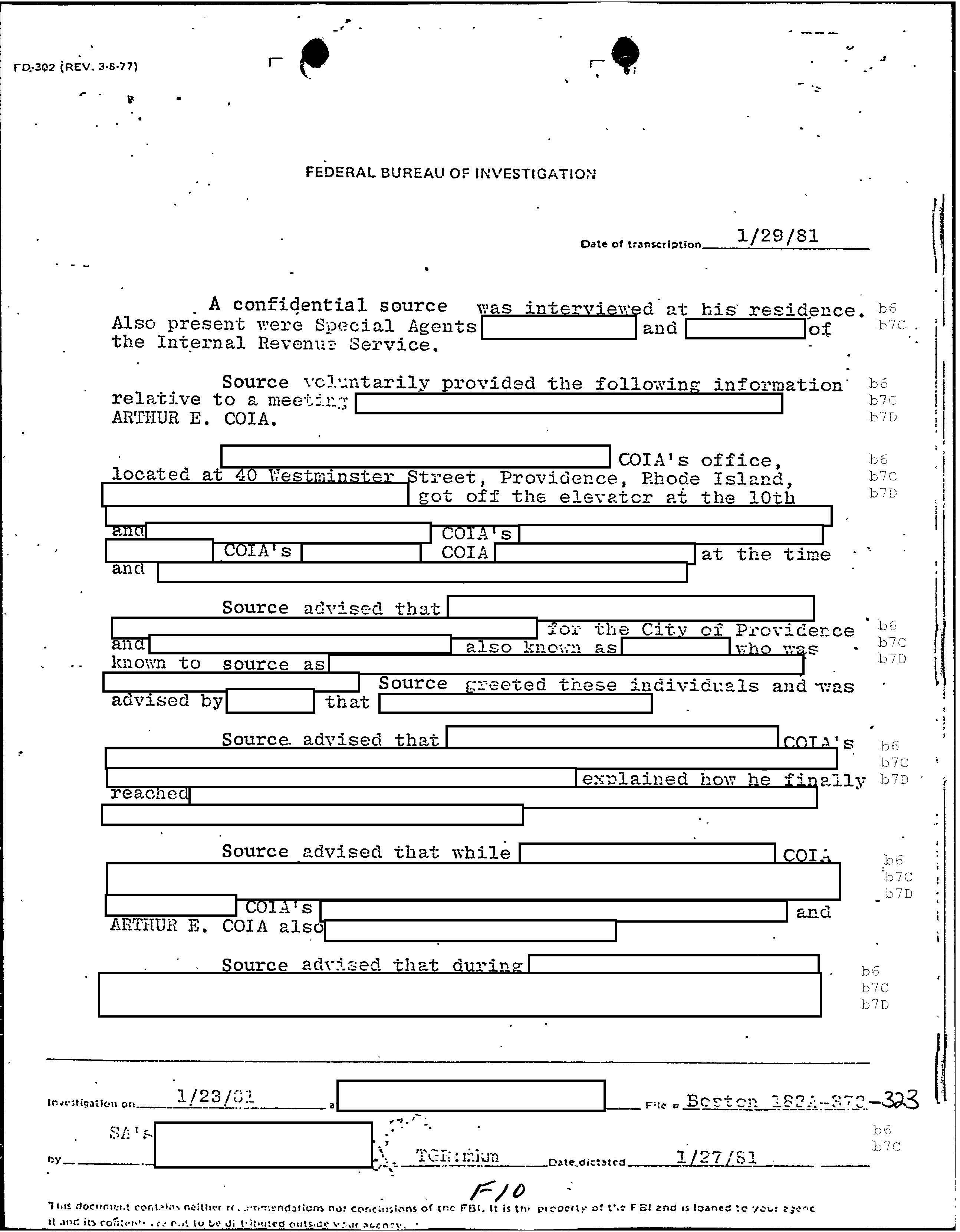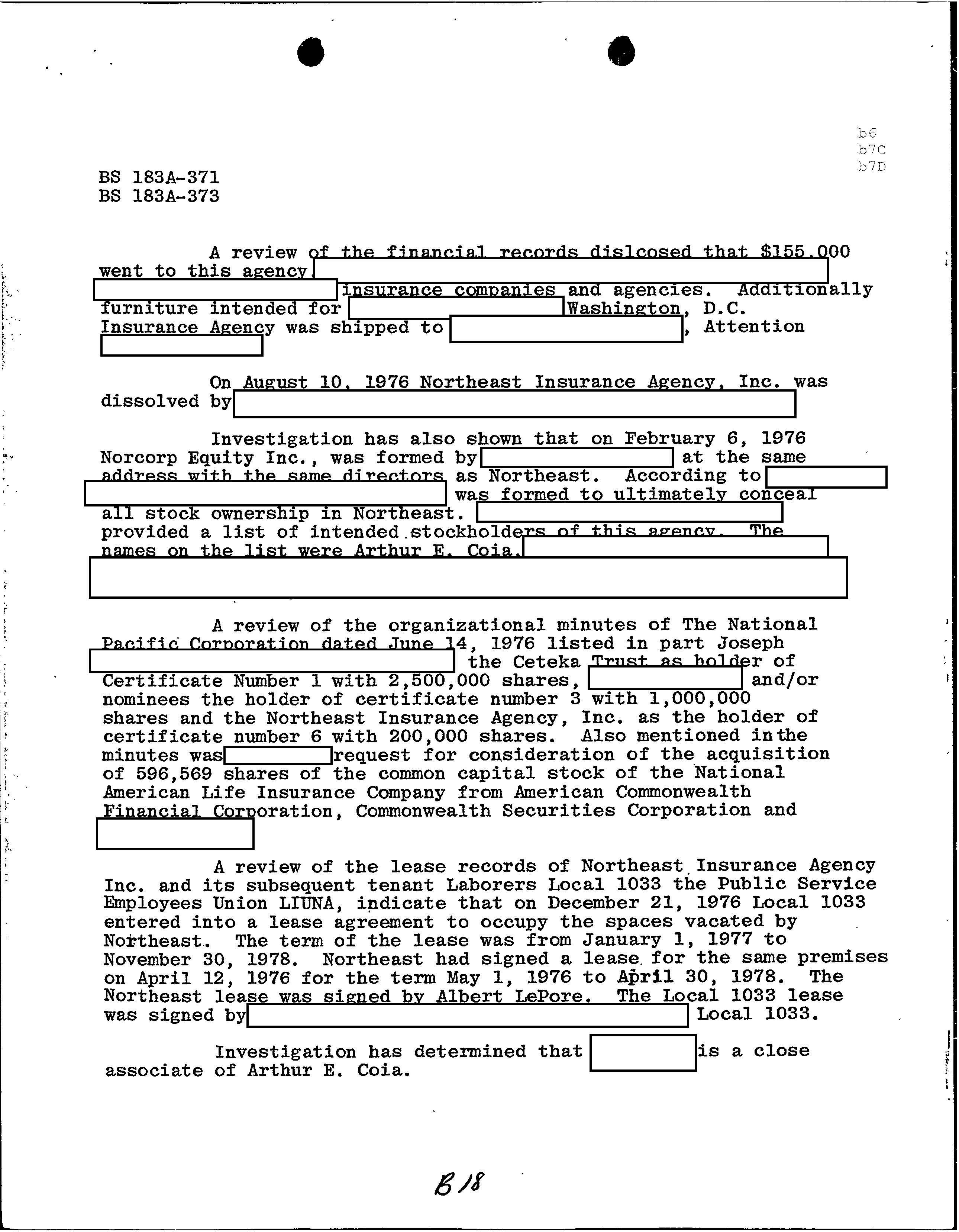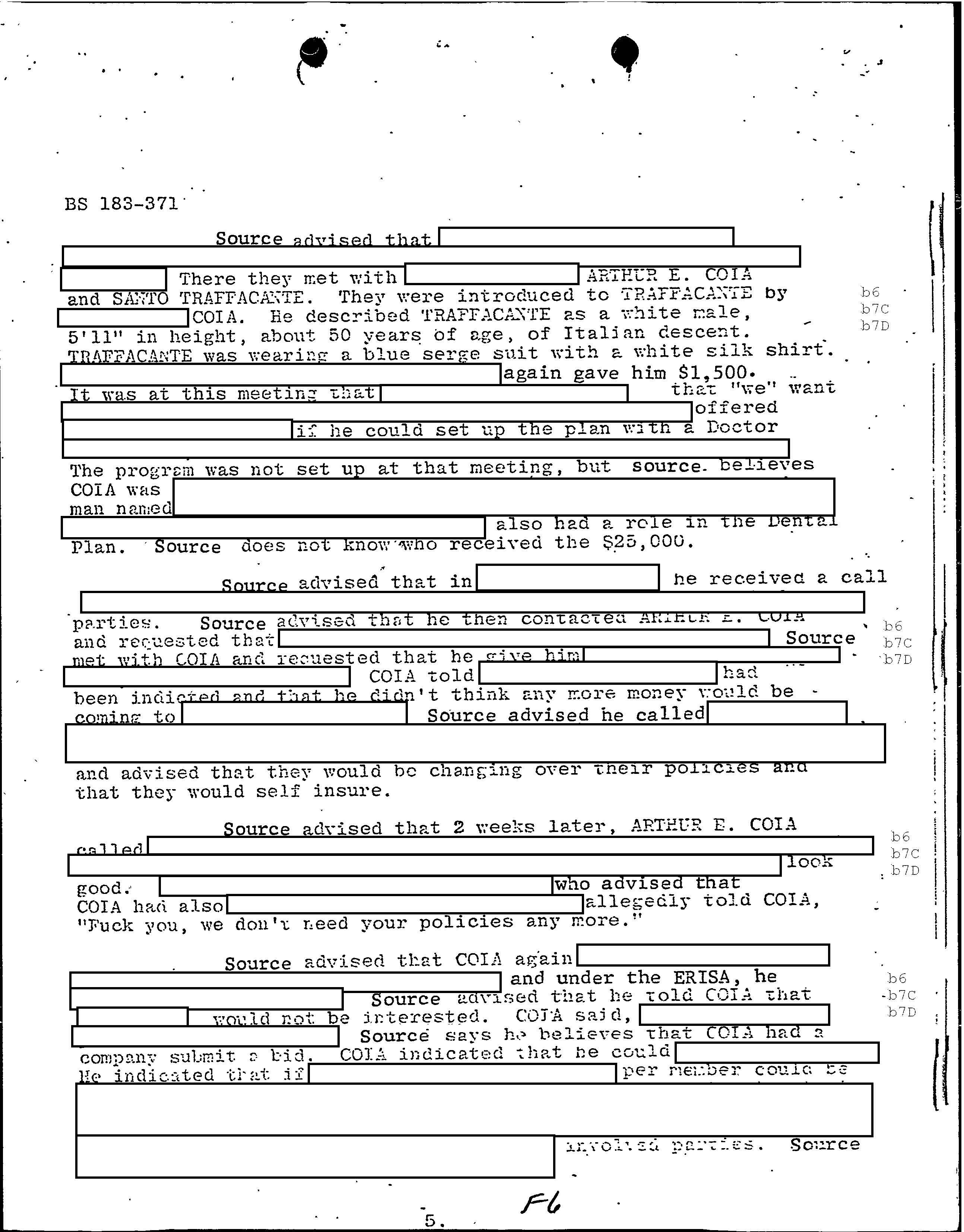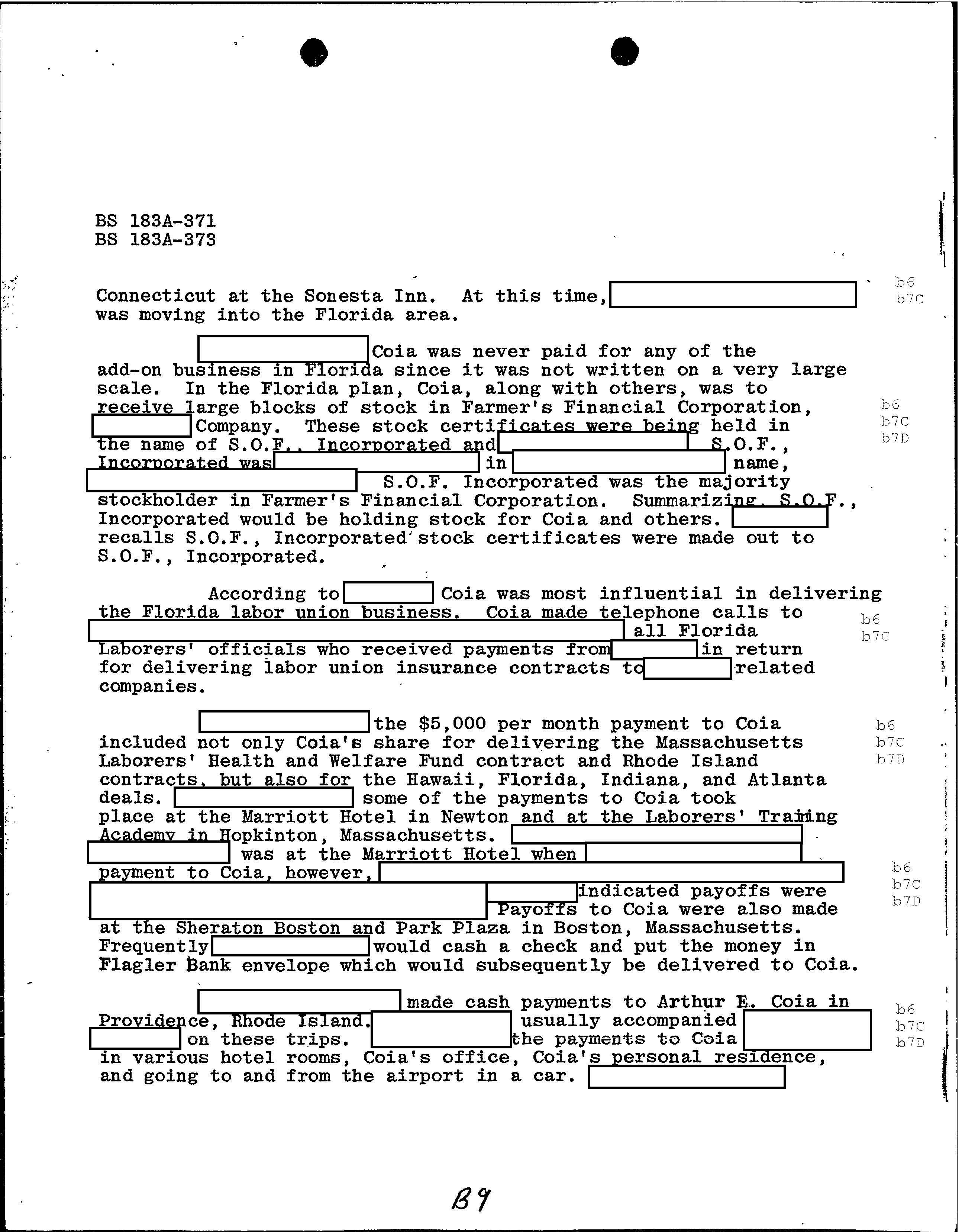 Page 6 Complete Prosecutive Report of Investigation by the FBI concerning Coia, Patriarca and multiple organizations.