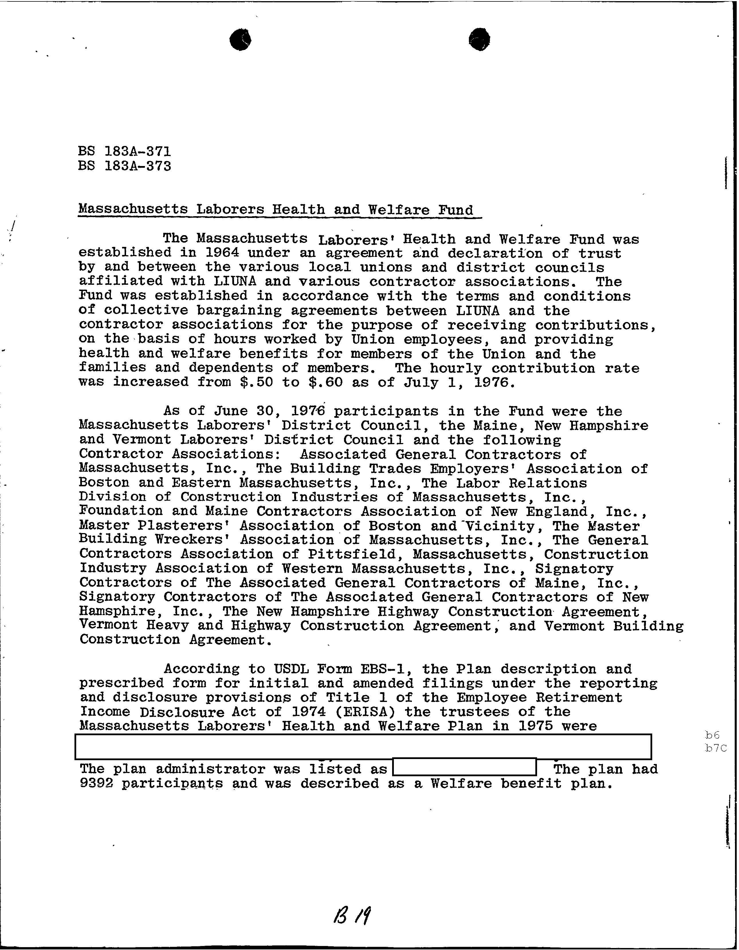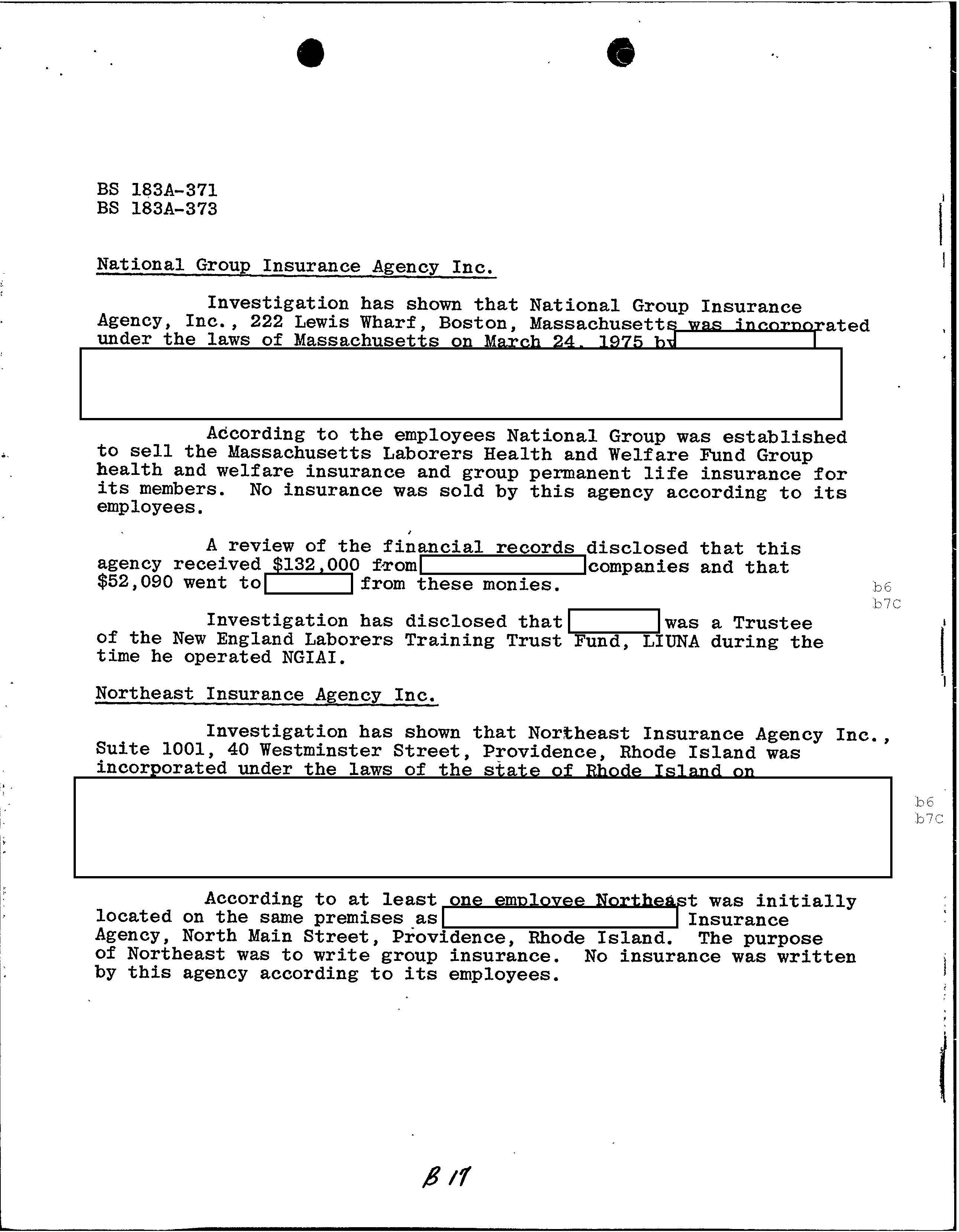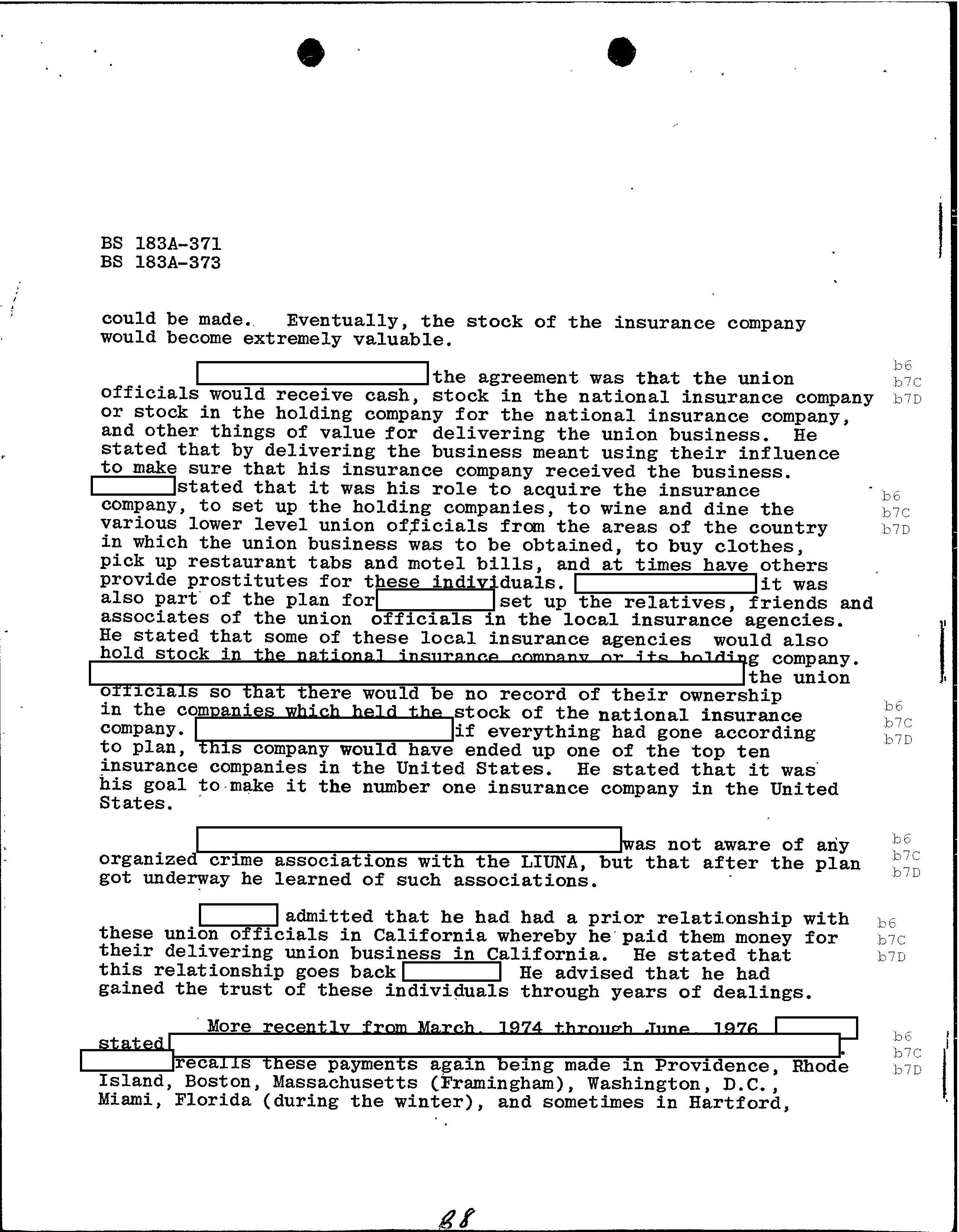 Page 46 “Sources advised that the Laborers’ Union in Rhode Island is actually run by RAYMOND L.S. PATRIARCA and REDACTED.”