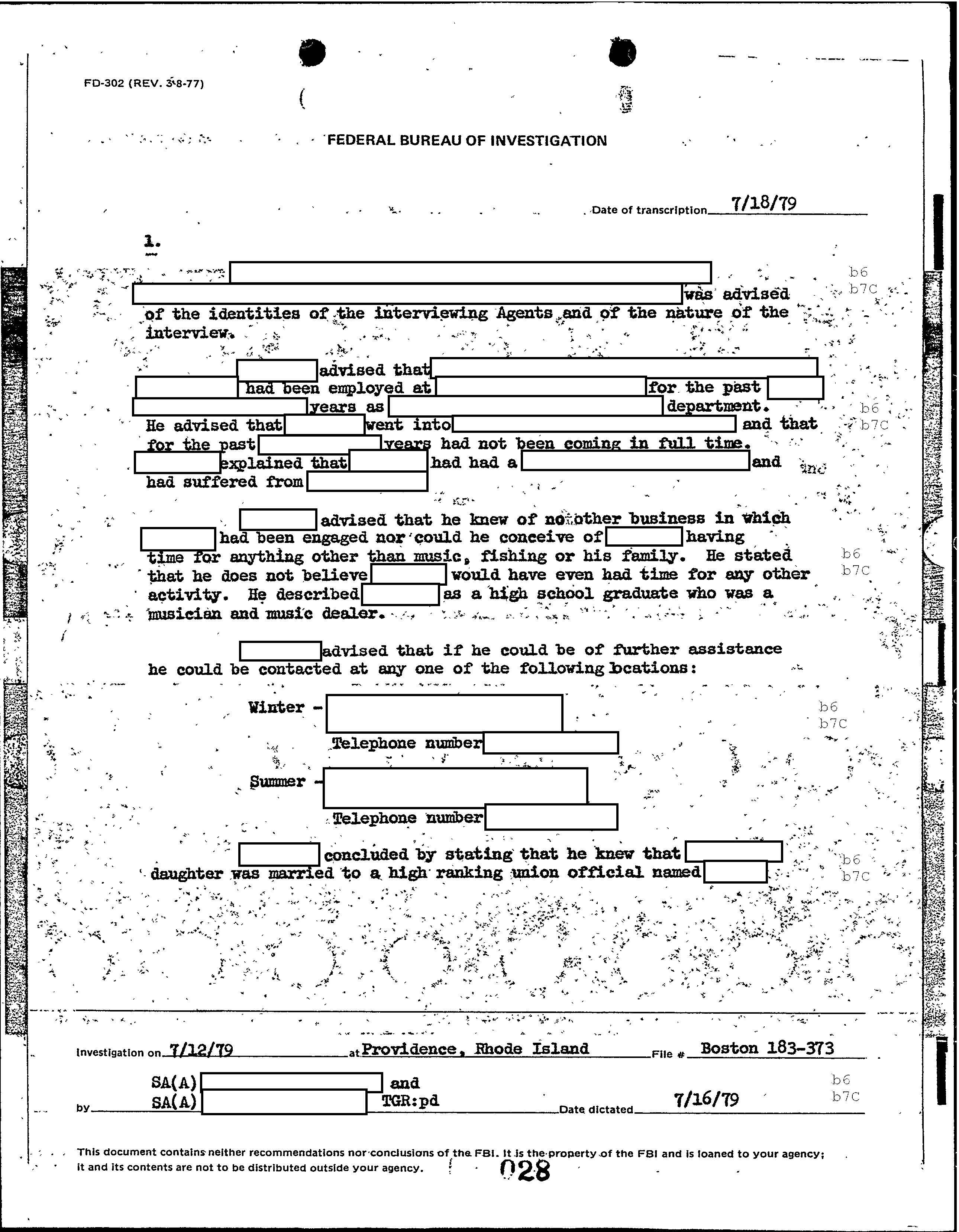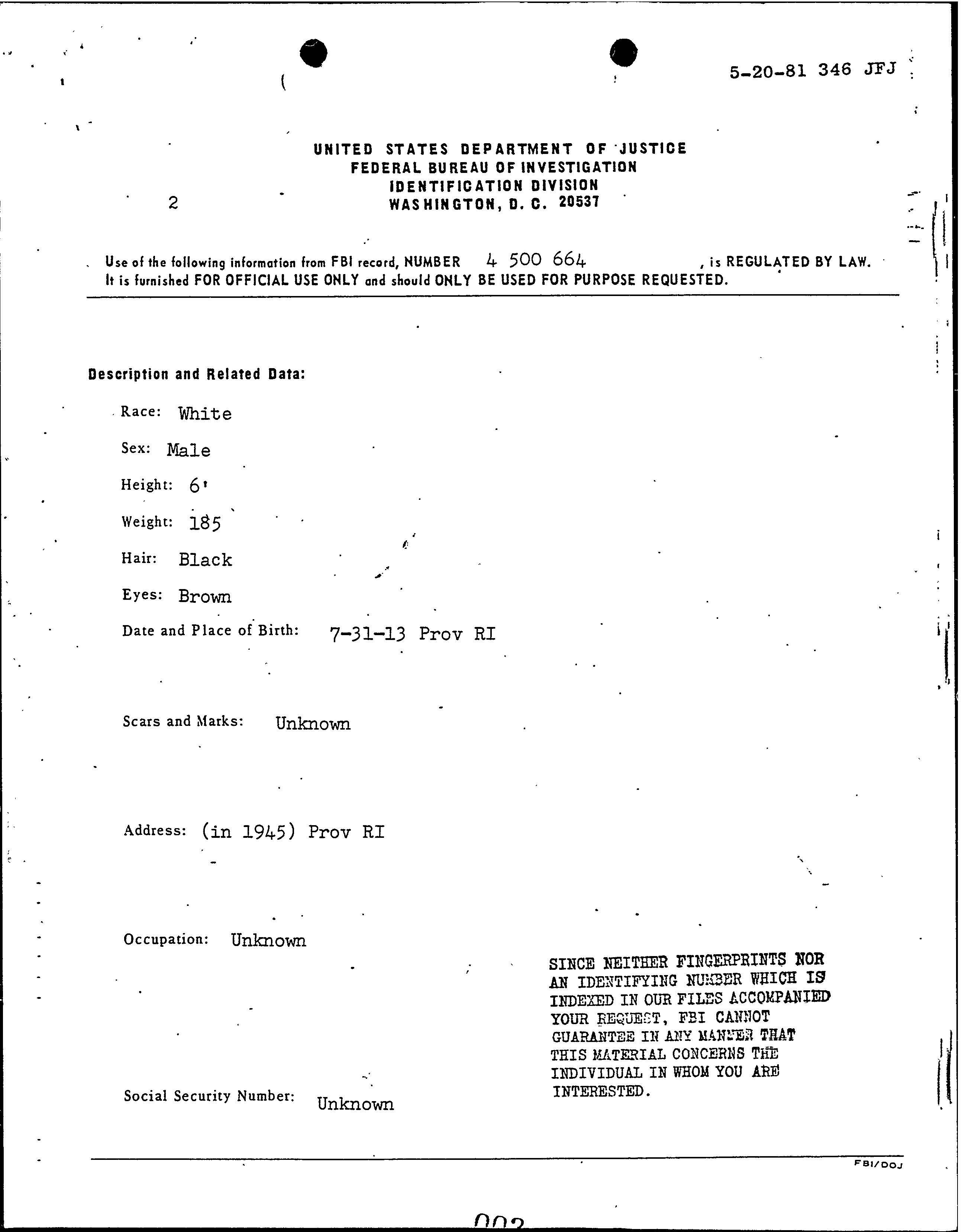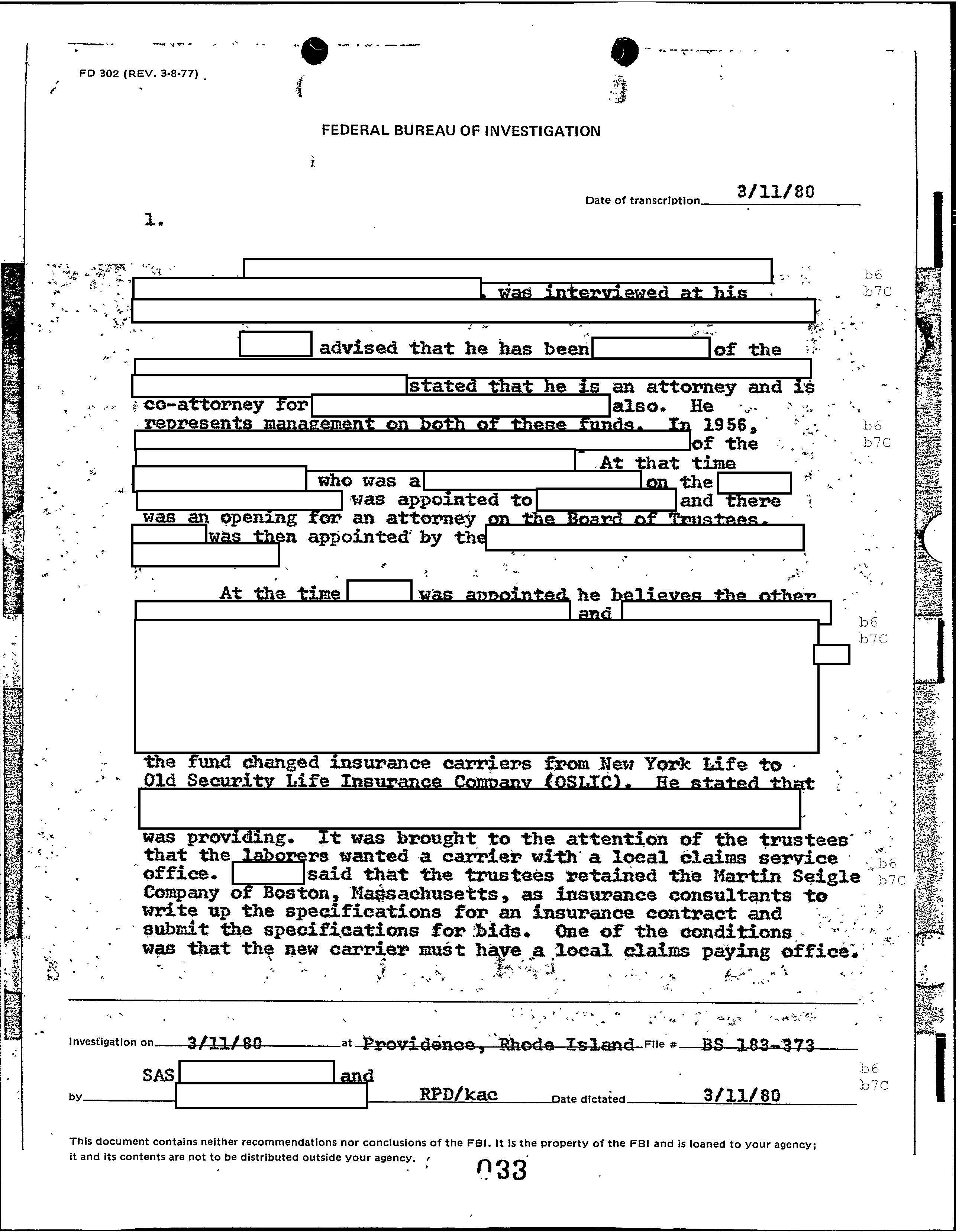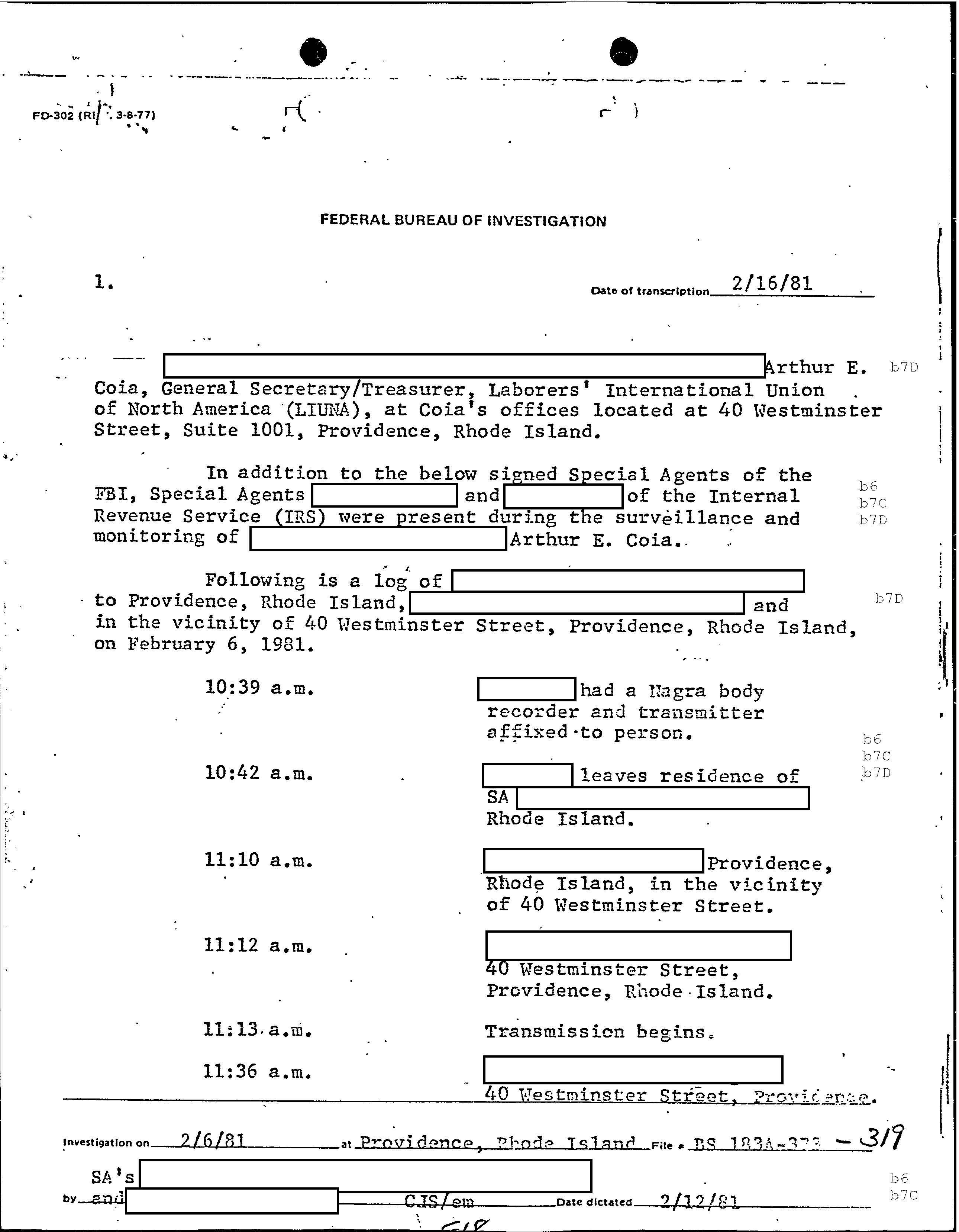 Cheat Sheet 57, FBI Files: Did Patriarca Run Laborers' International