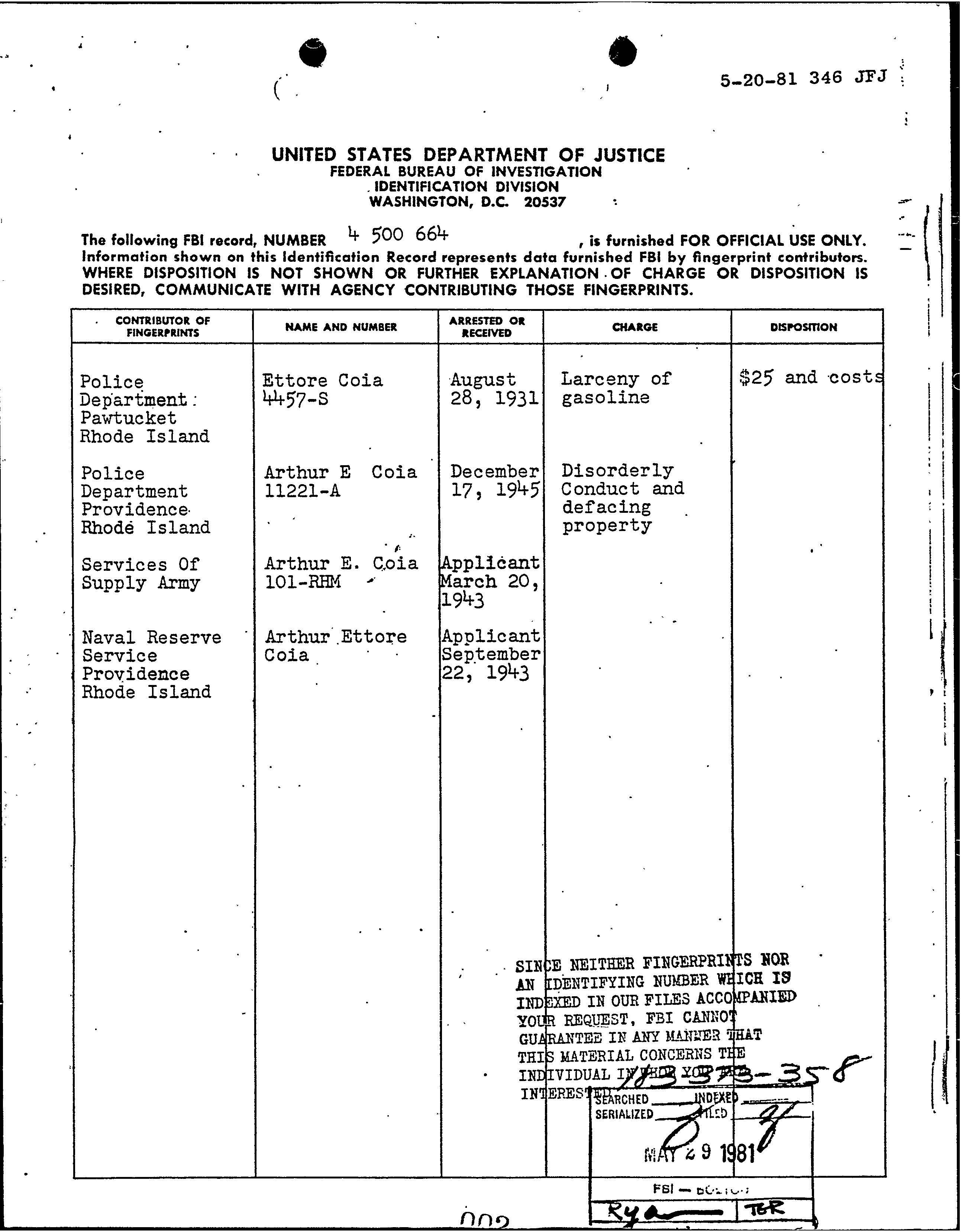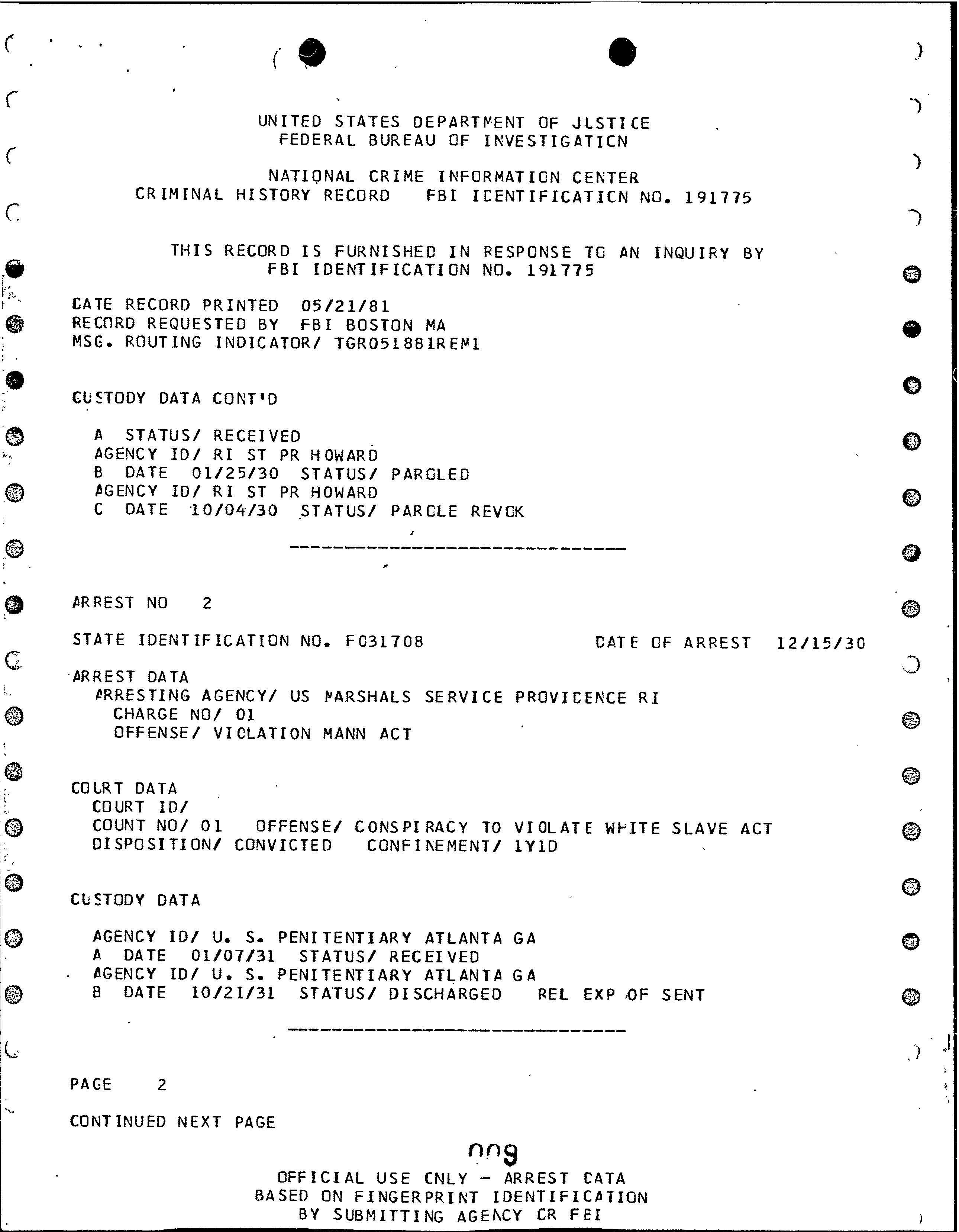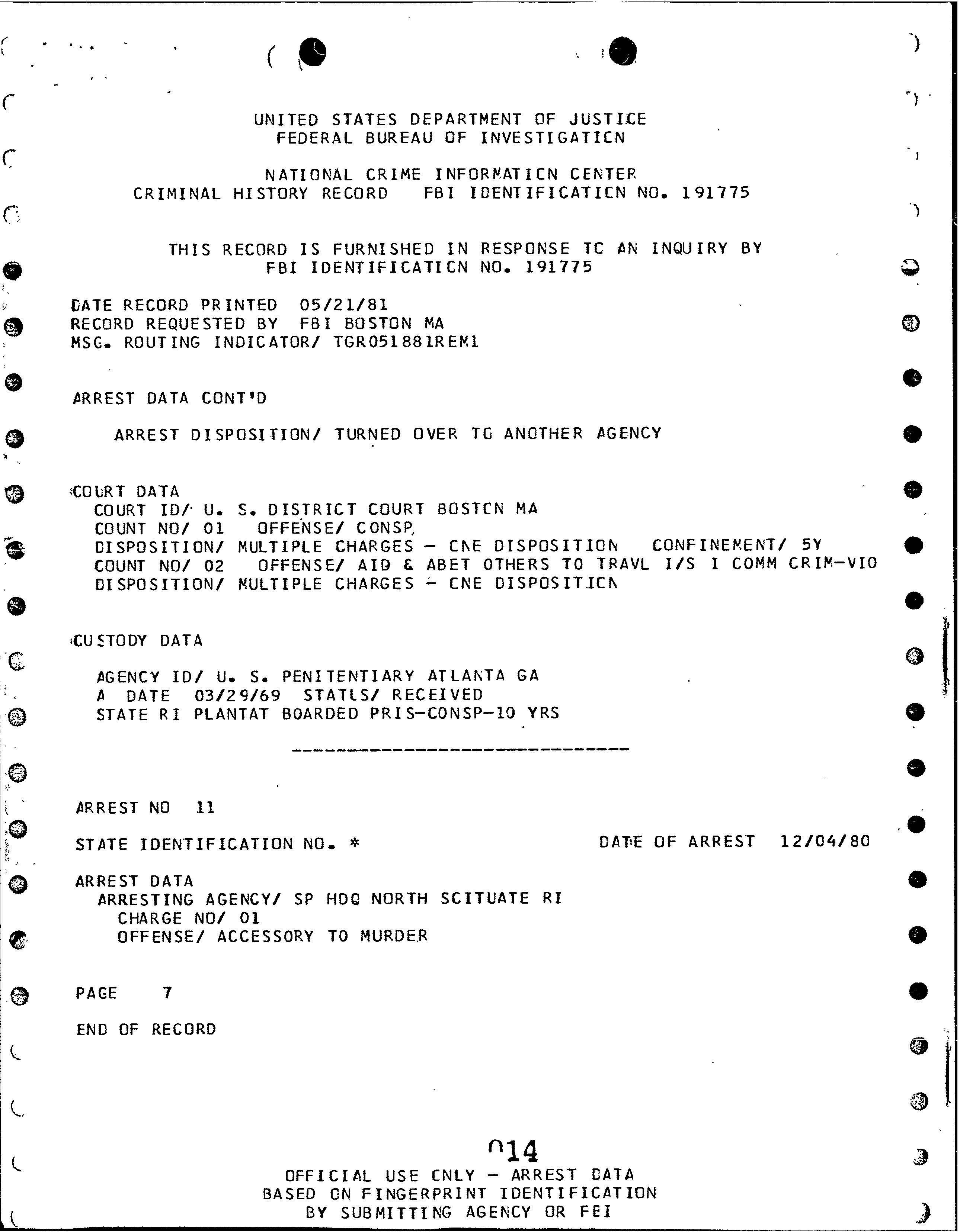 PAGE 78 to 84 Raymond Patriarca’s Criminal Record